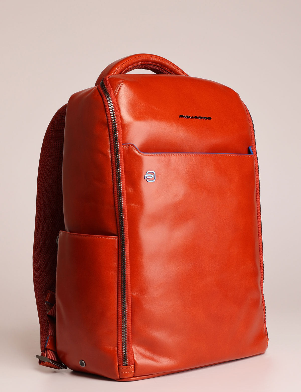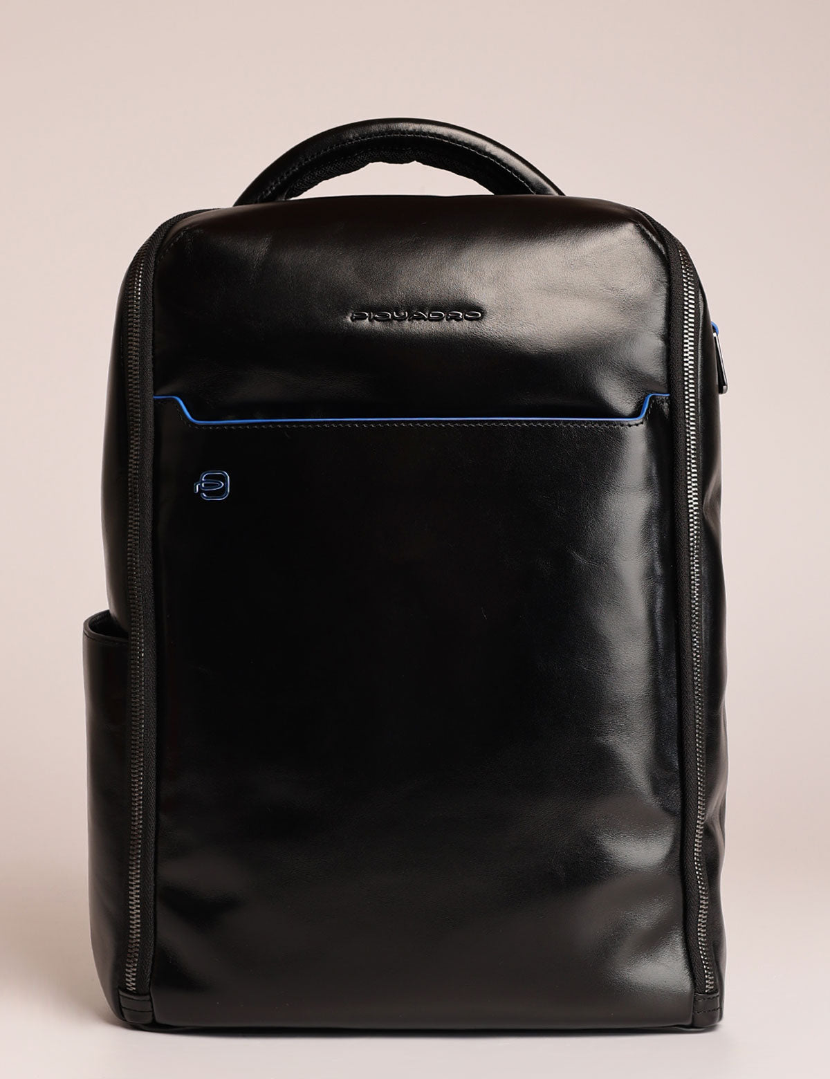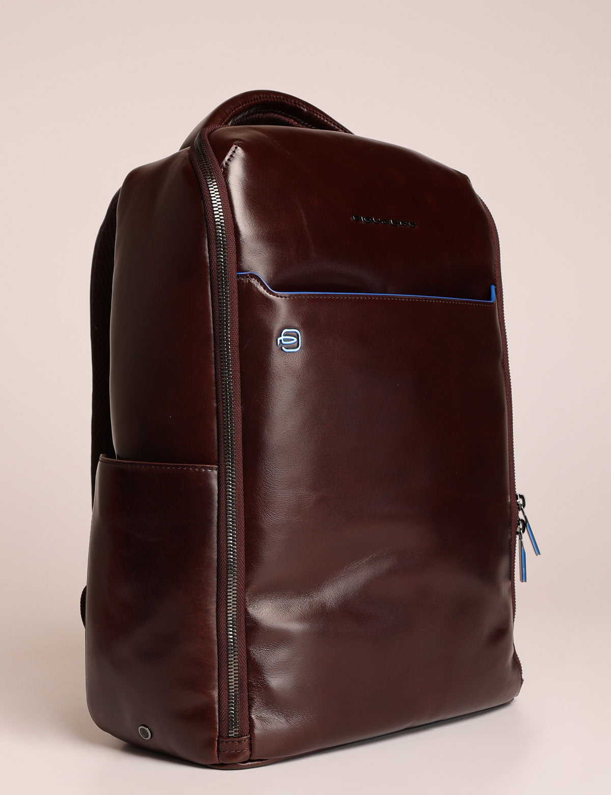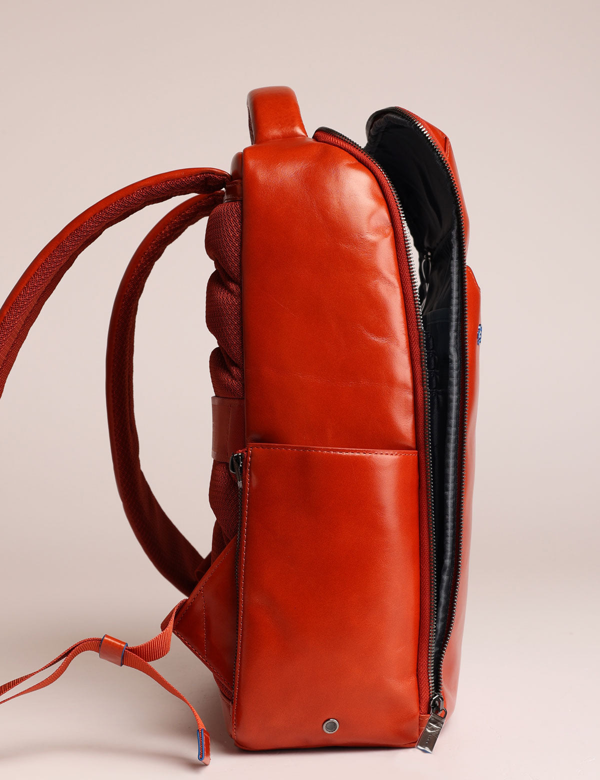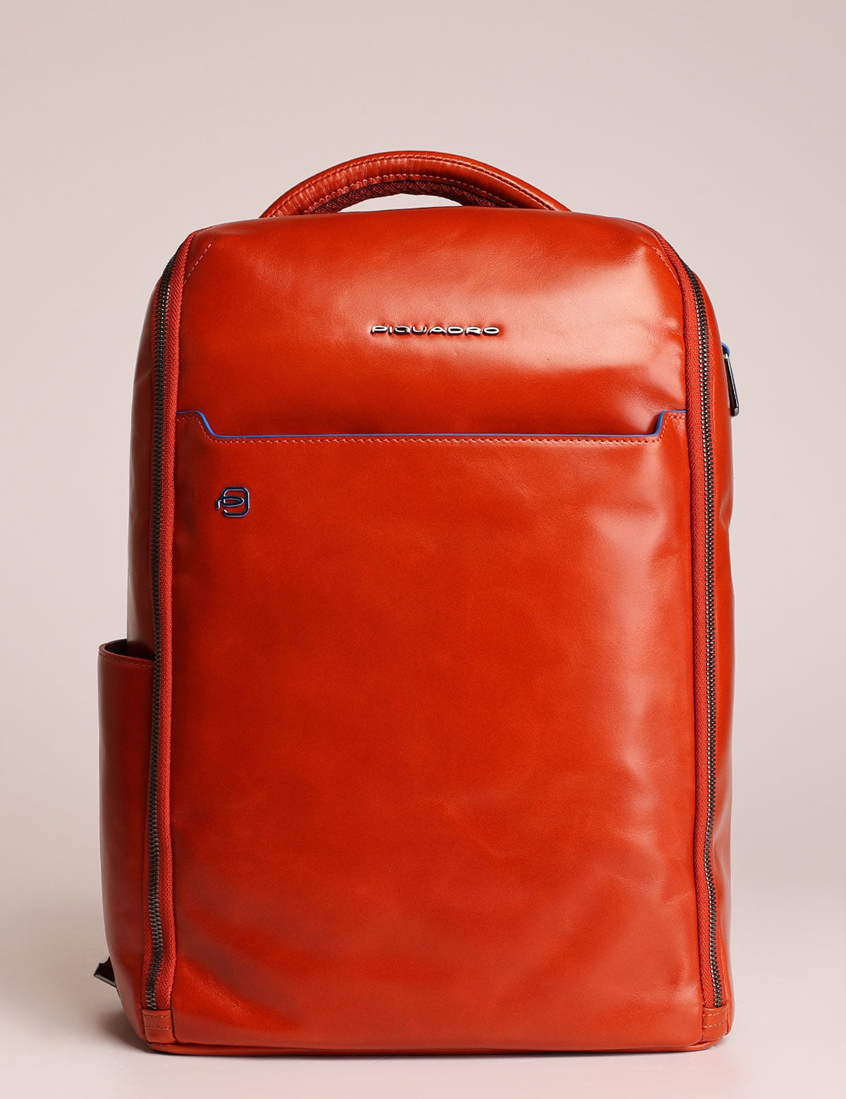 Piquadro leather backpack with a special fast-check flap opening for laptops up to 14 inches