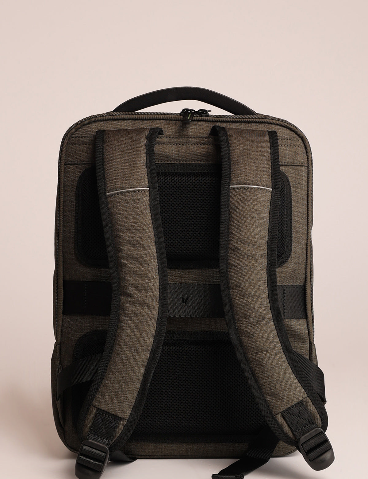 Roncato business backpack with two compartments, a laptop pocket for up to 14 inches and an 11" tablet slot.