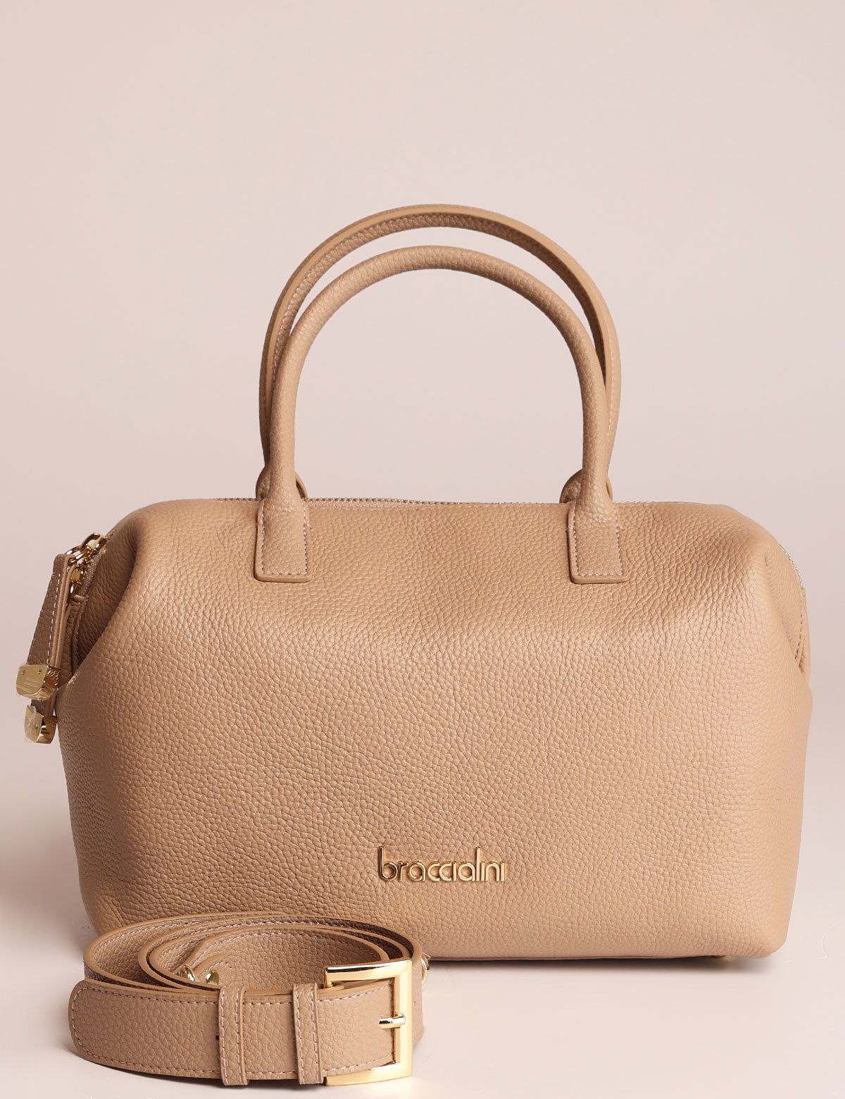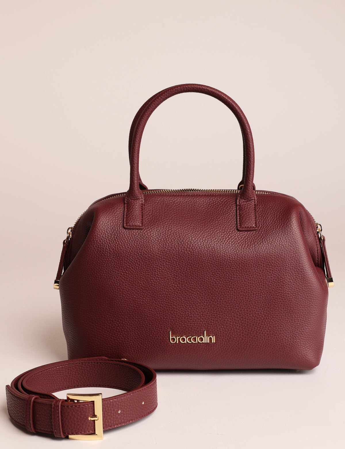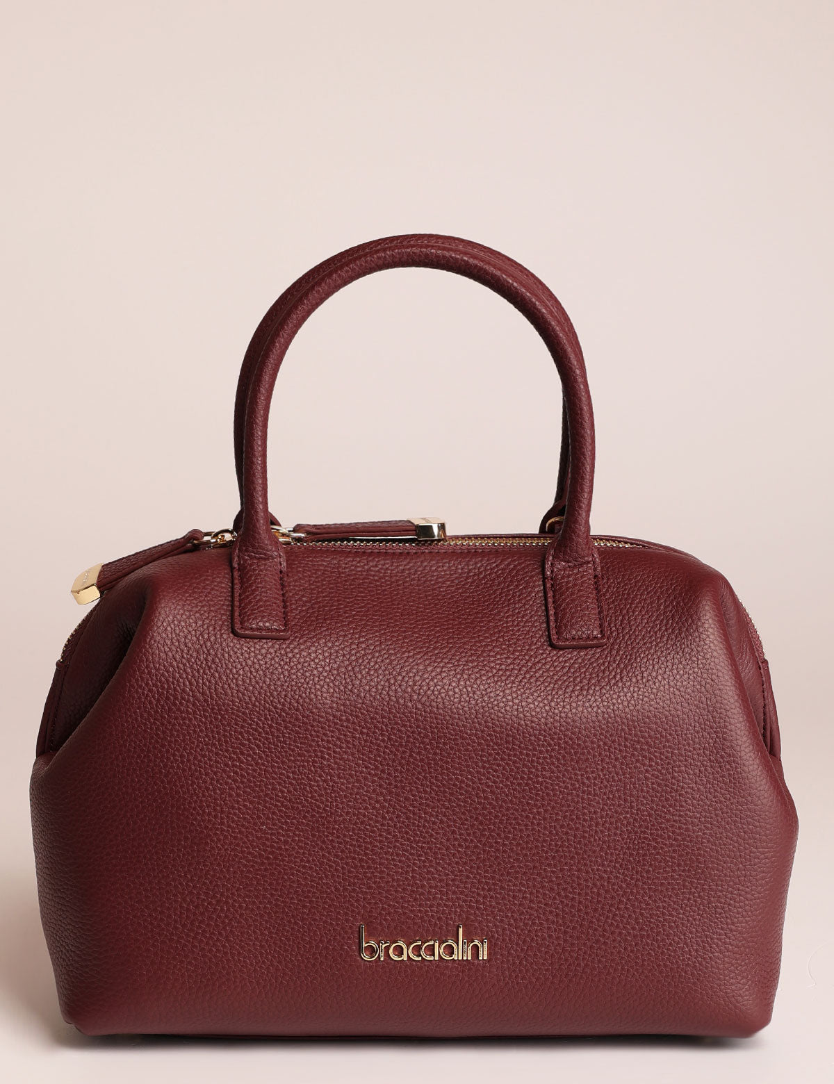 Braccialini women's bag made of leather, trunk model with handles and shoulder strap.
