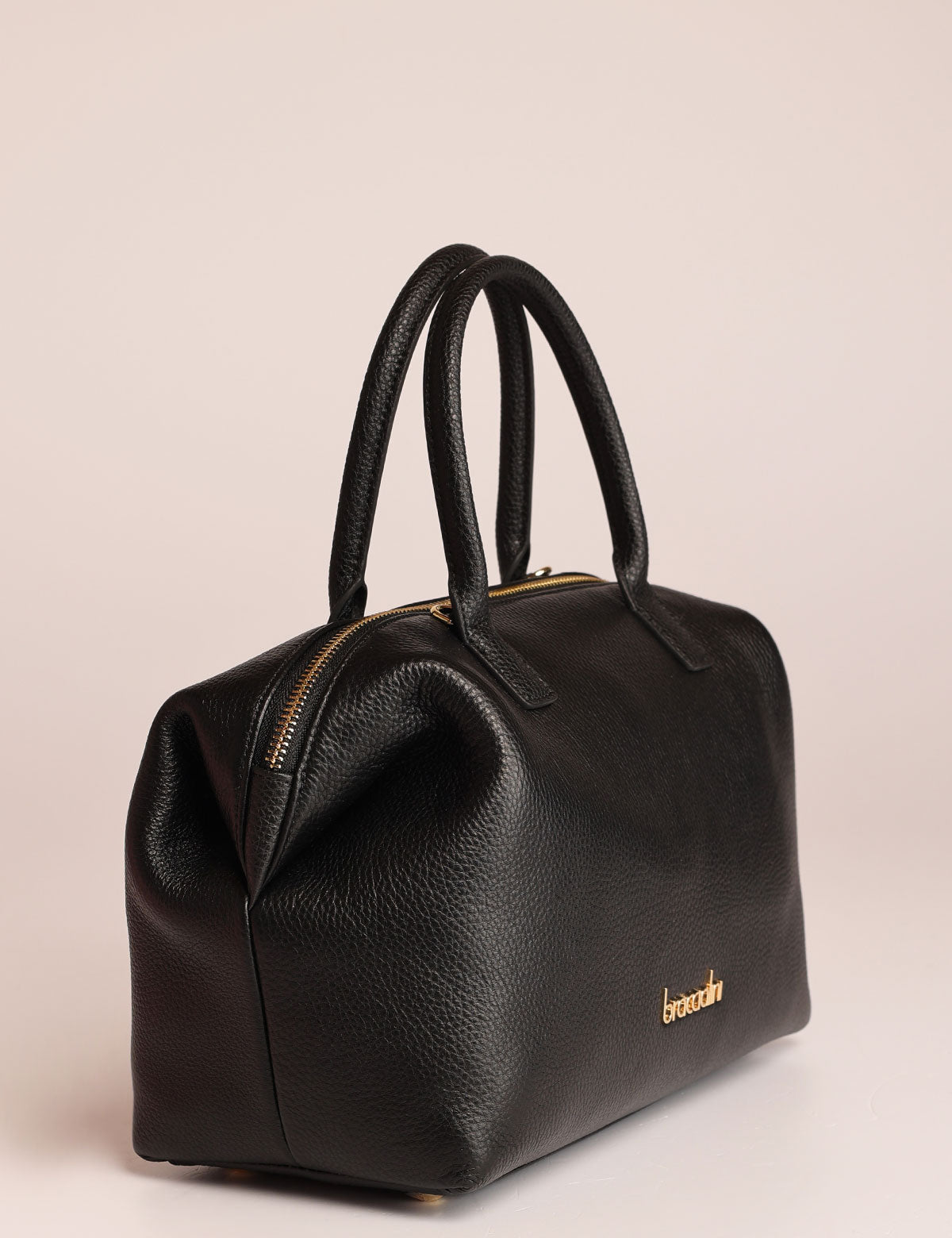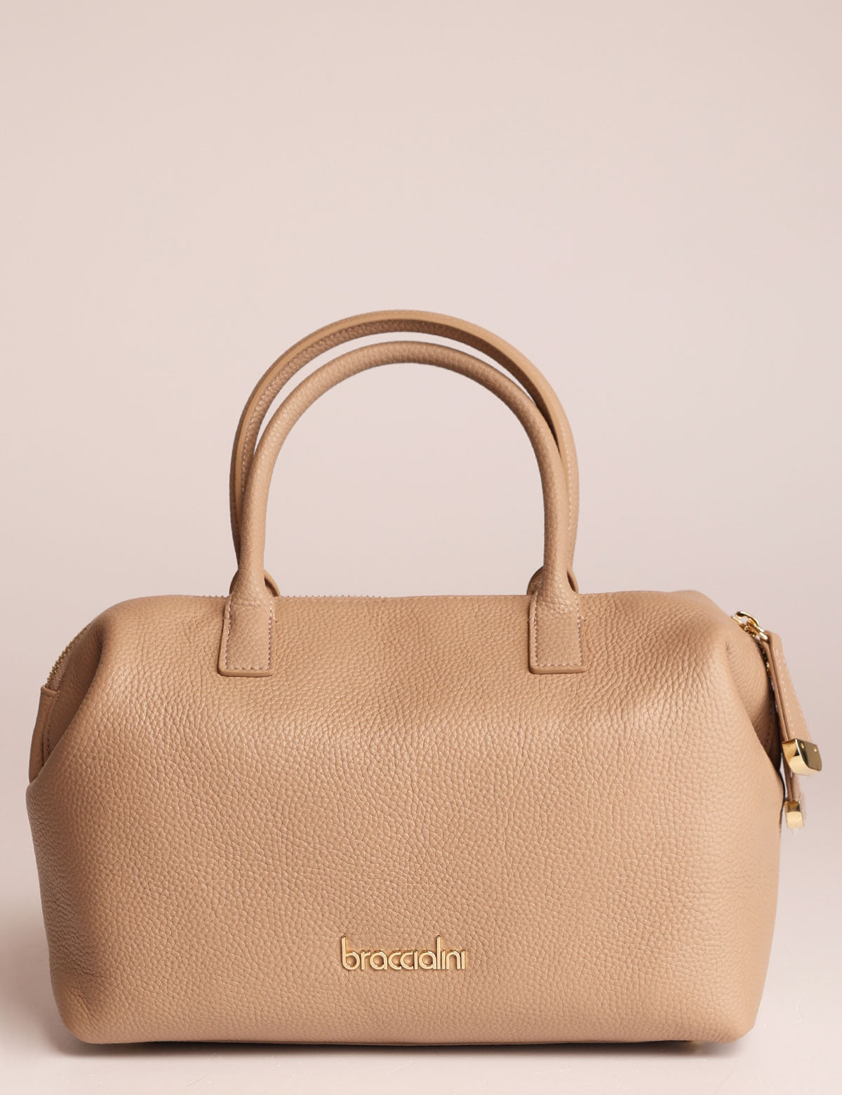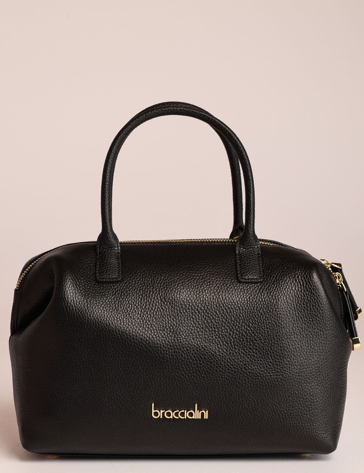 Braccialini women's bag made of leather, trunk model with handles and shoulder strap.
