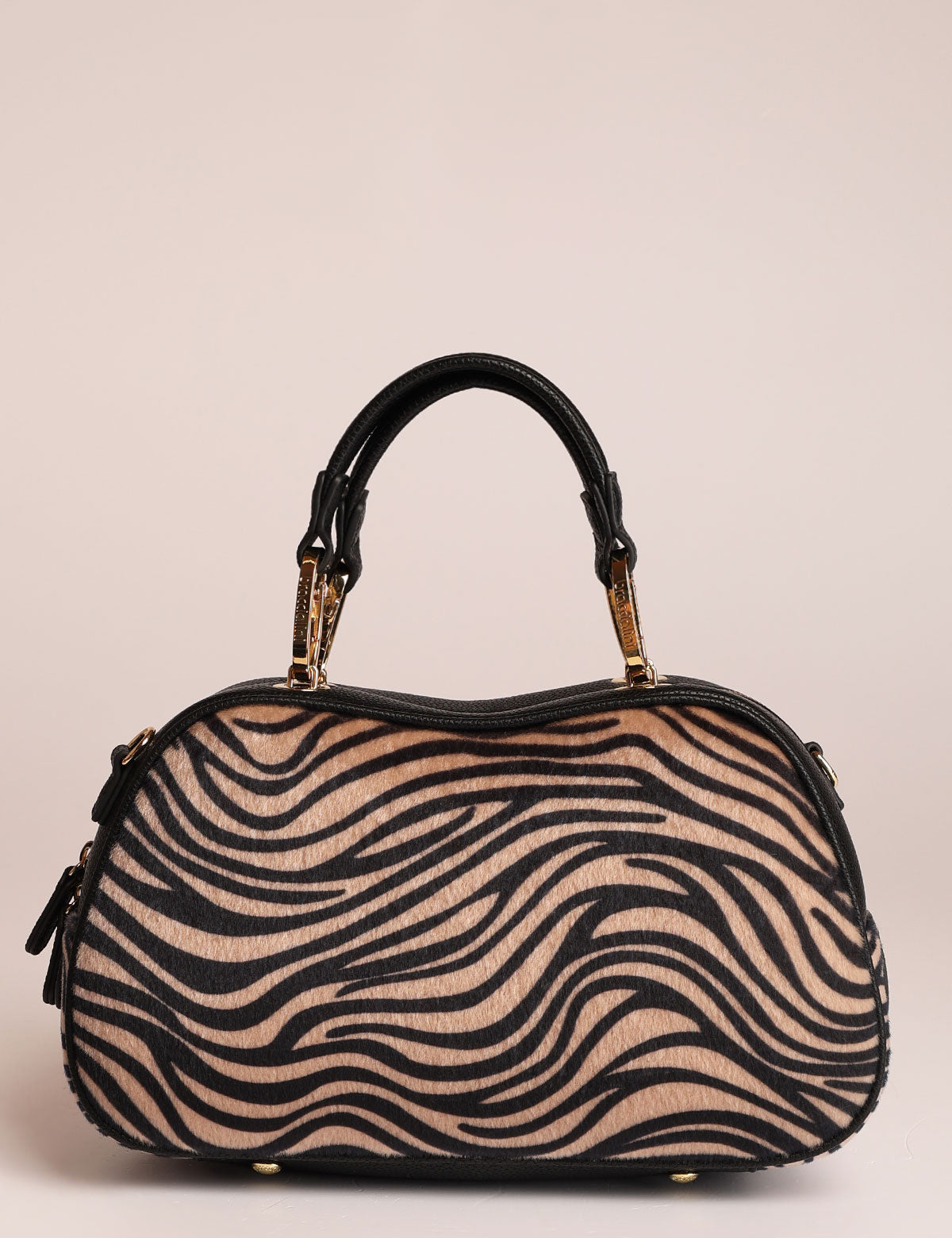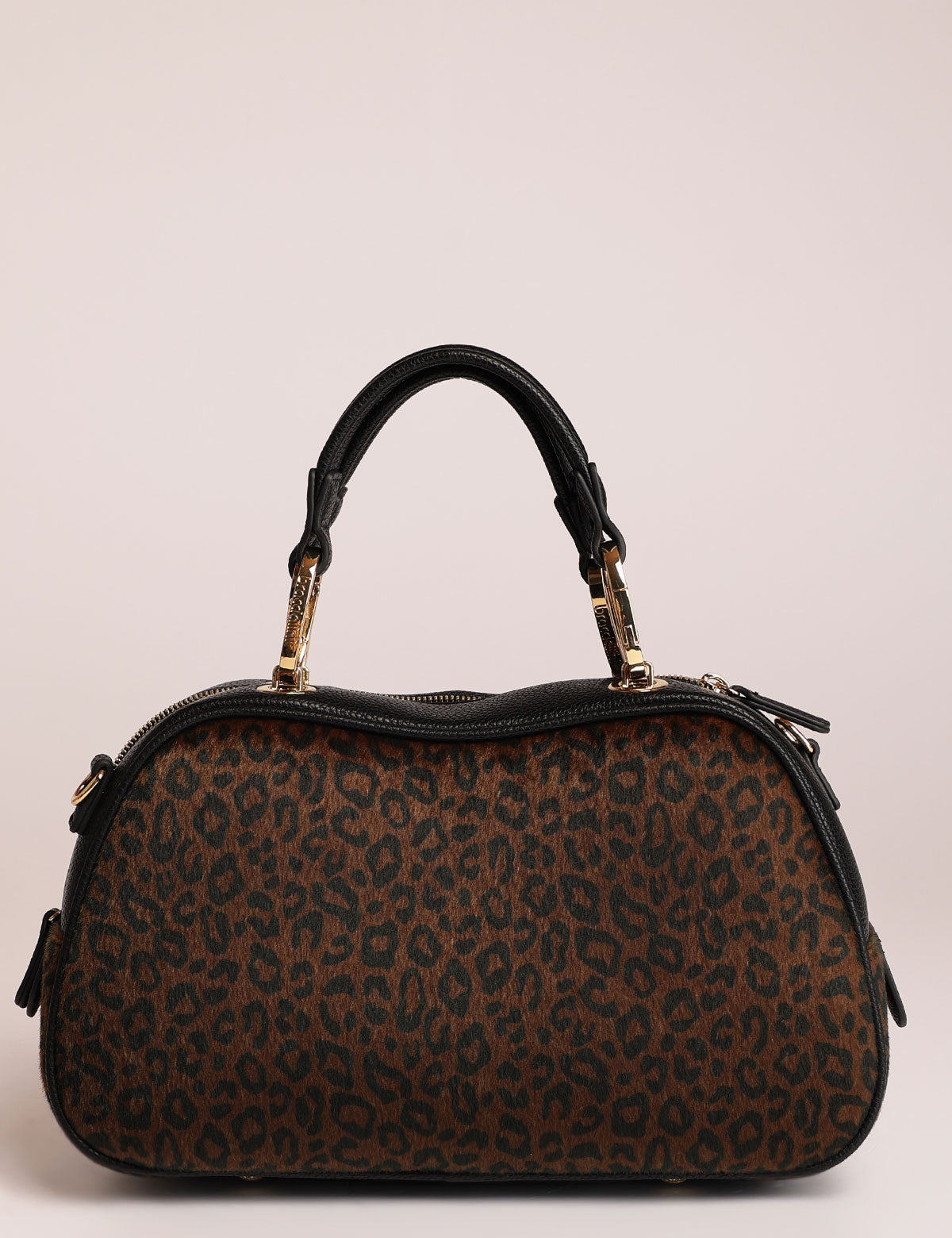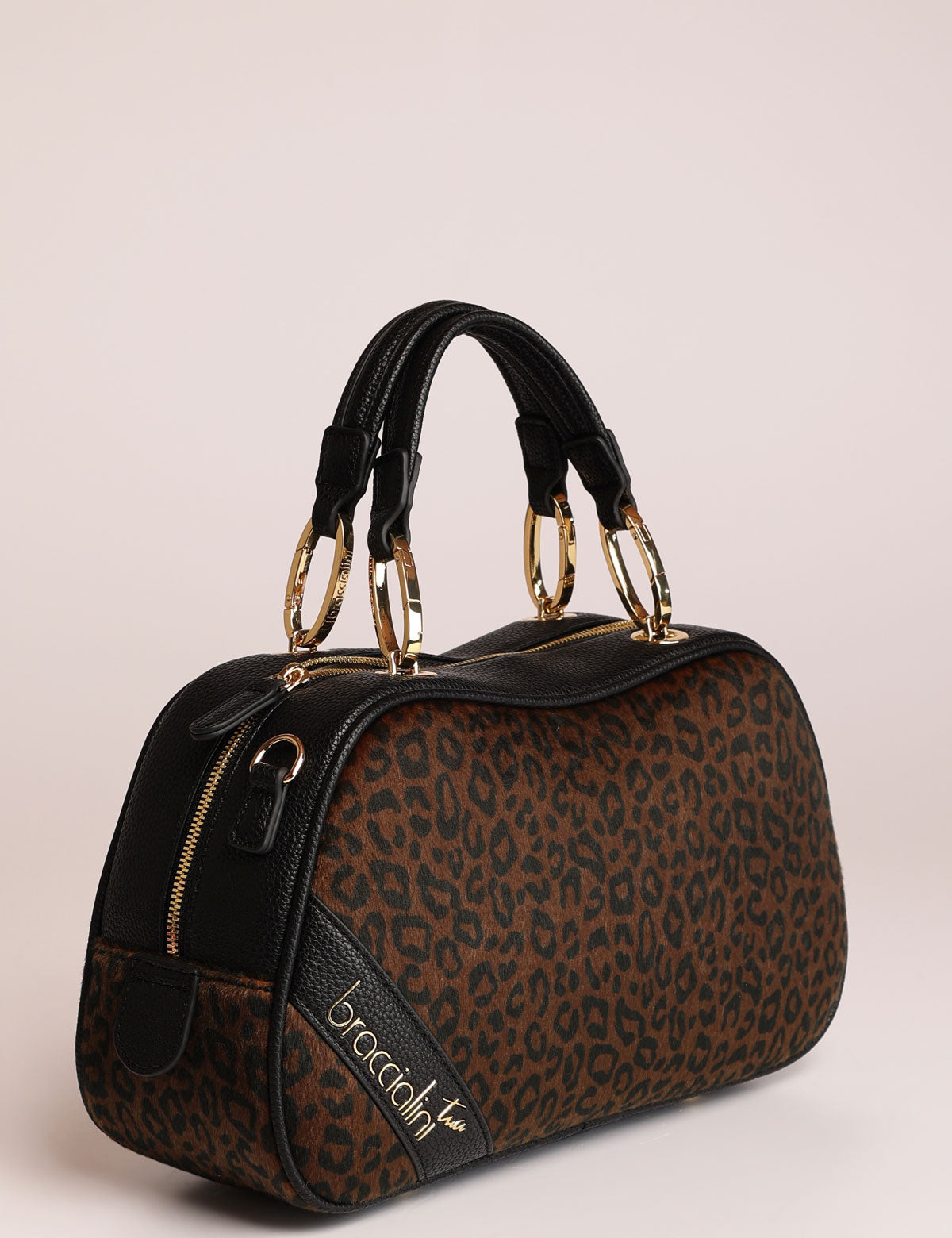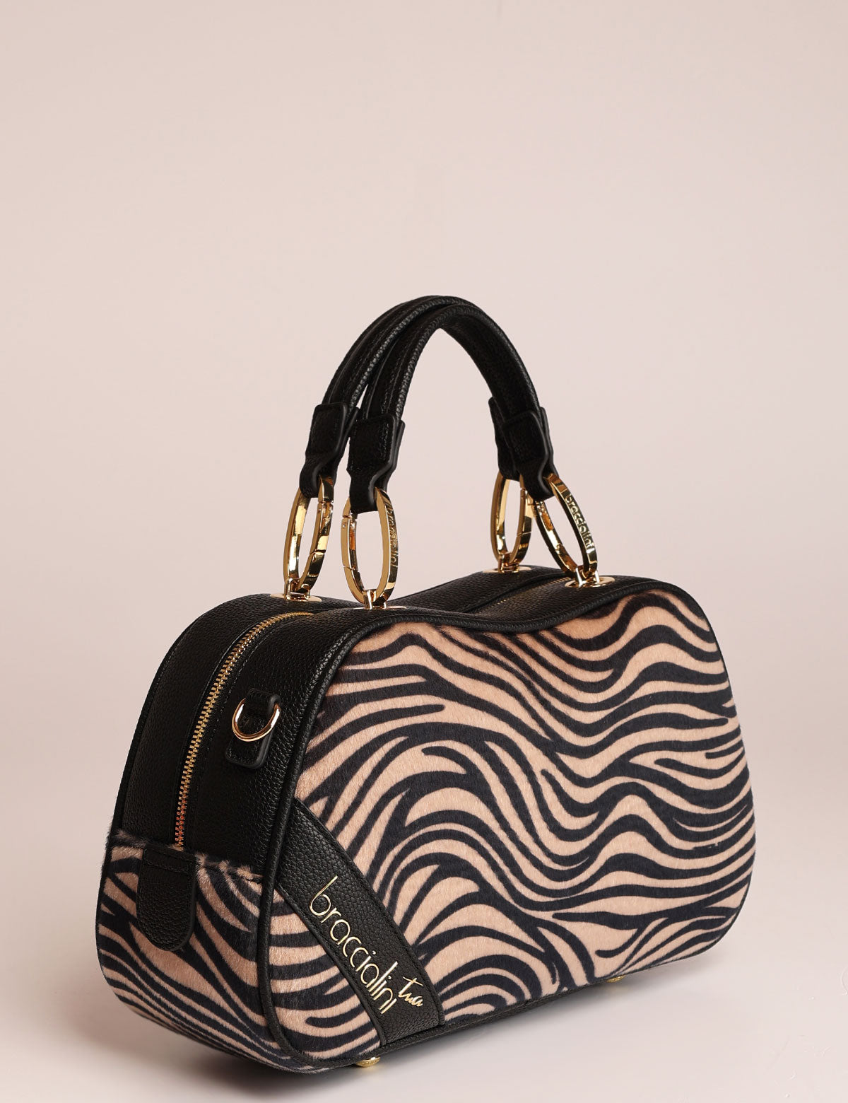 Braccialini women's handbag, trunk style, with animalier ponyskin finish and logo fabric shoulder strap