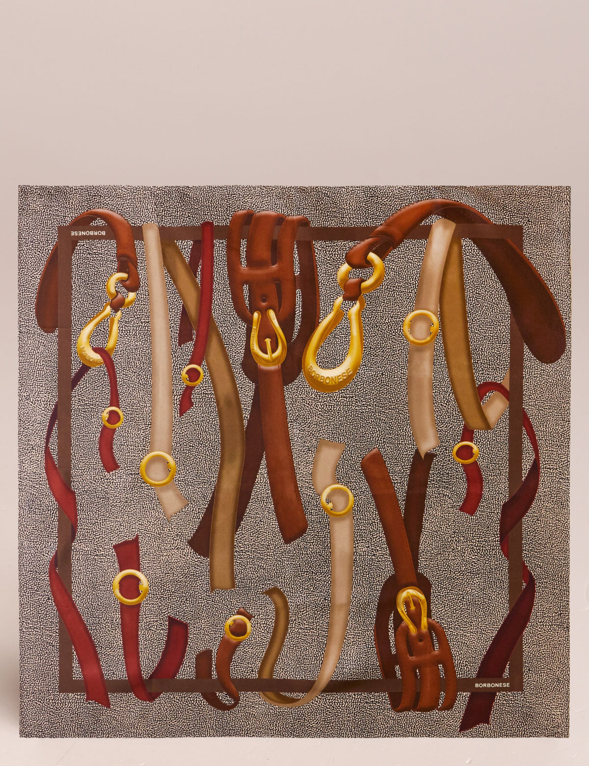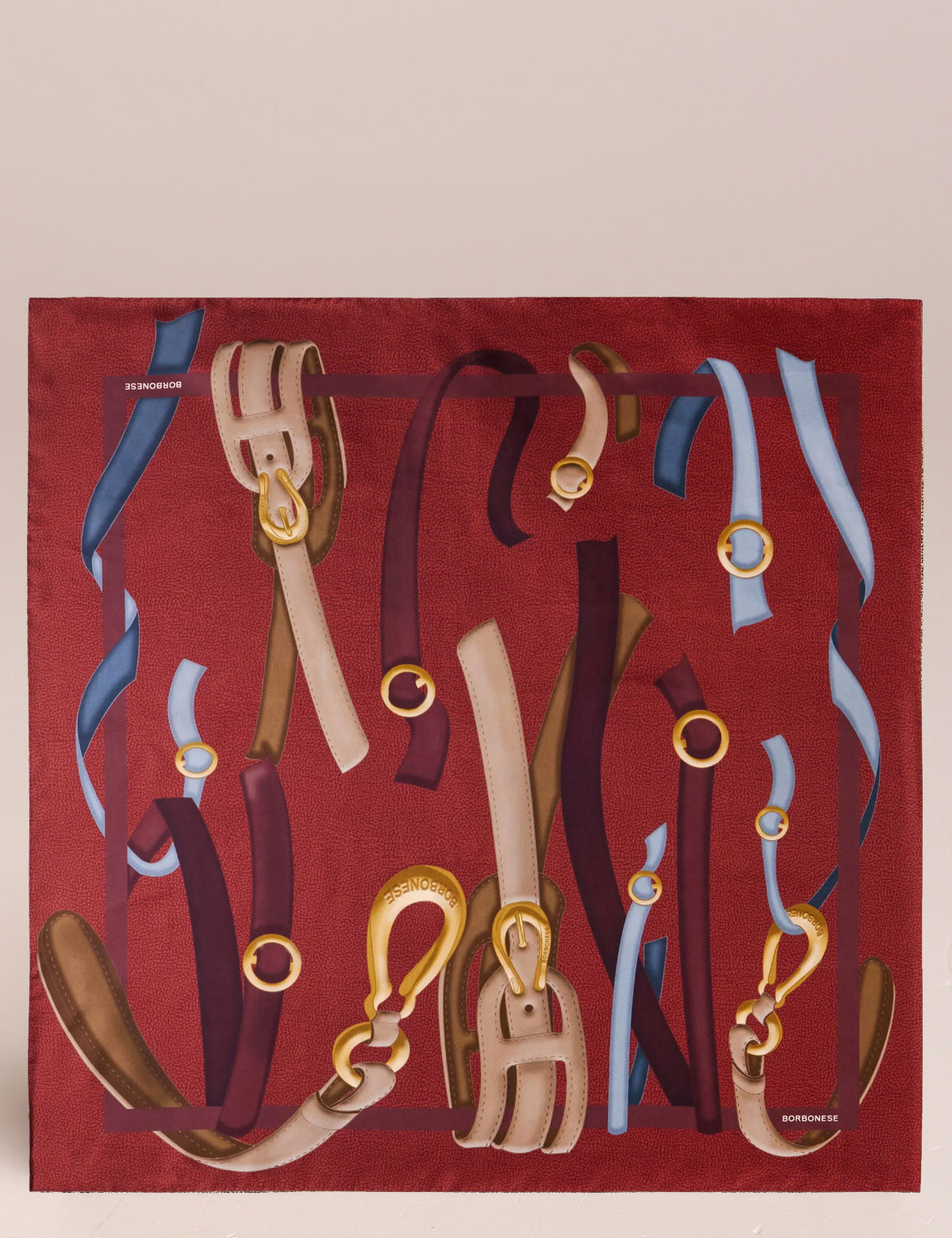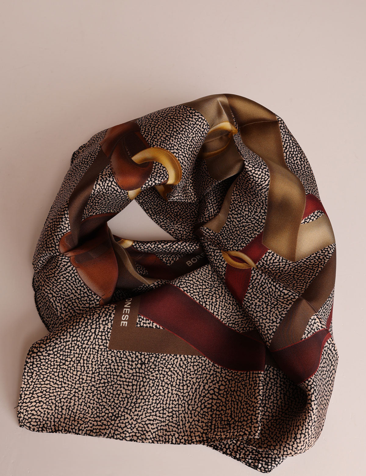 Borbonese women's scarf in 100% silk with strap print, dimensions 90x90 cm