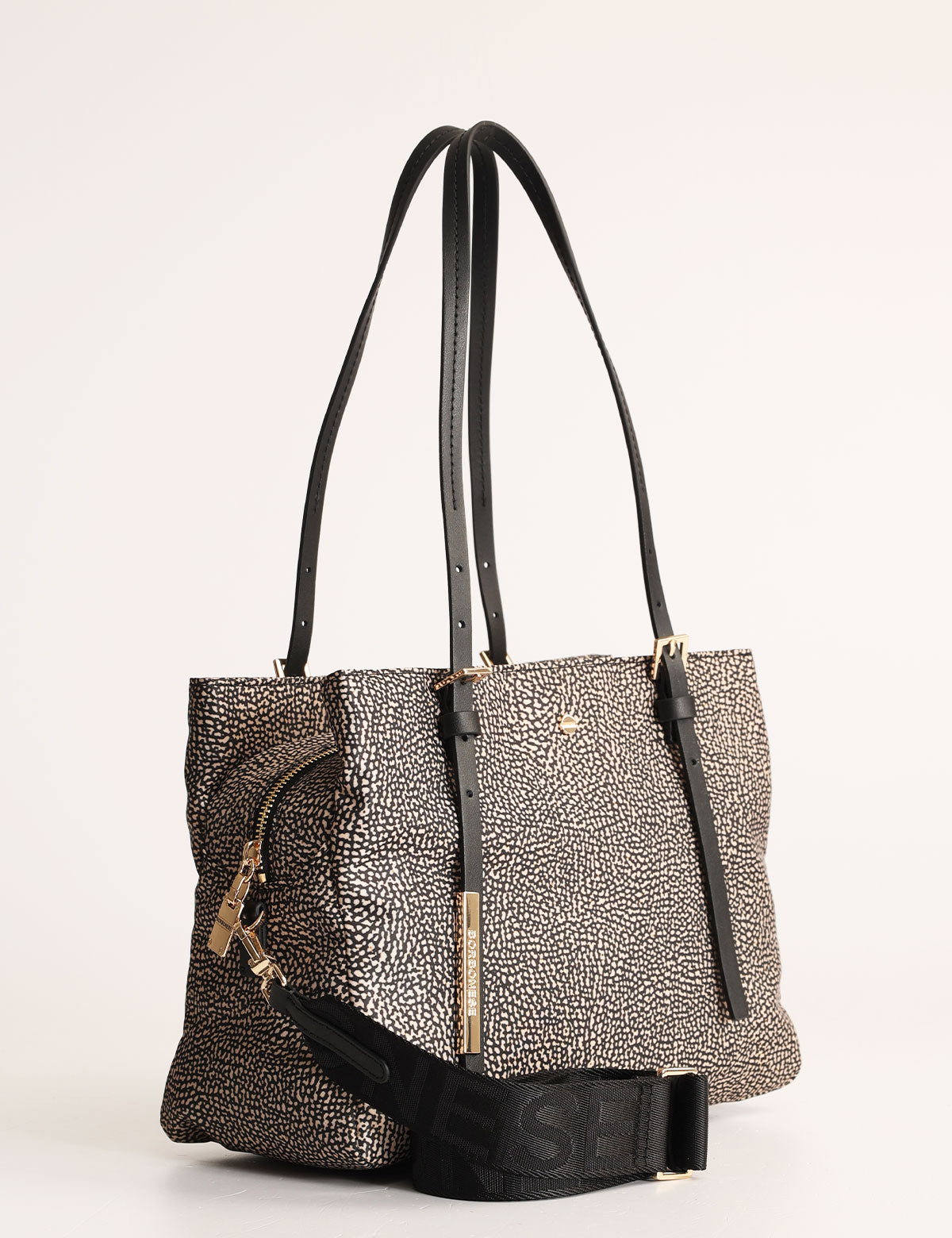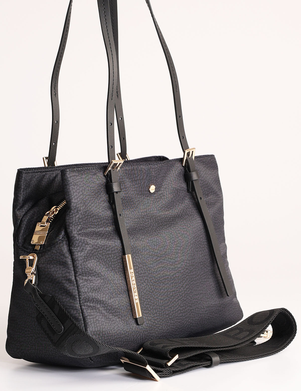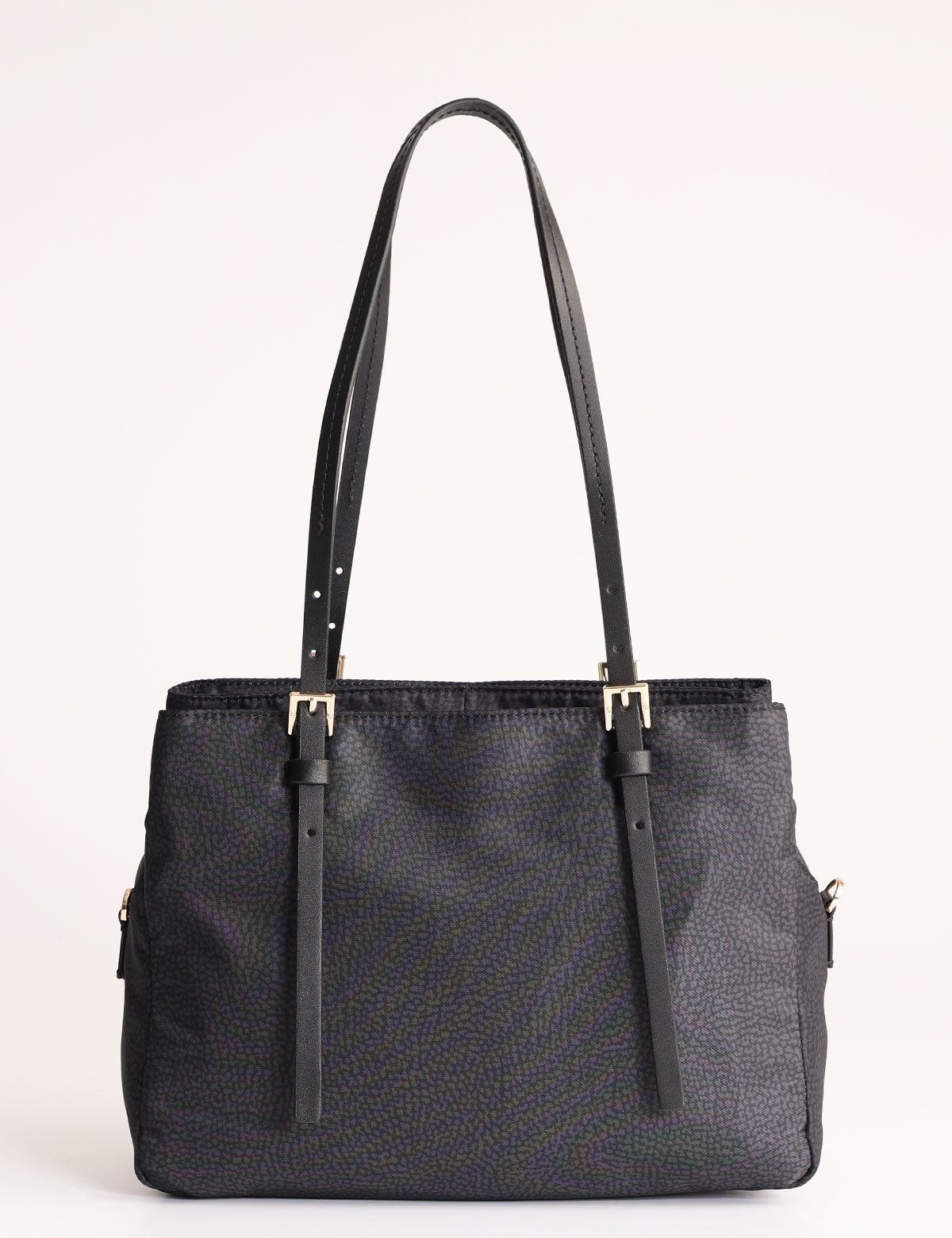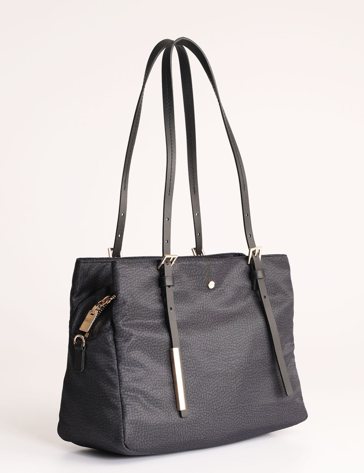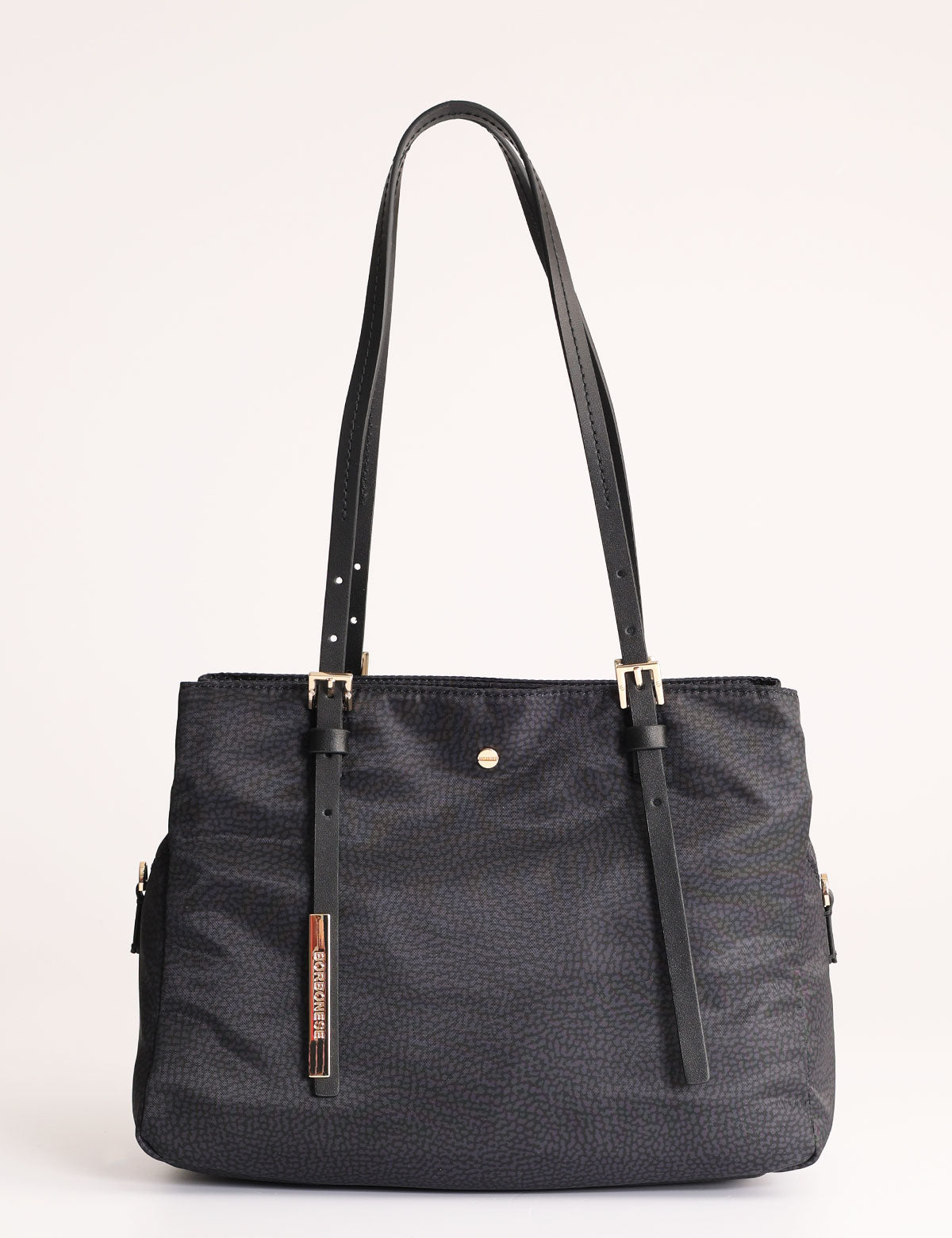 Borbonese women's shoulder bag with two long handles and three internal compartments, made of recycled nylon