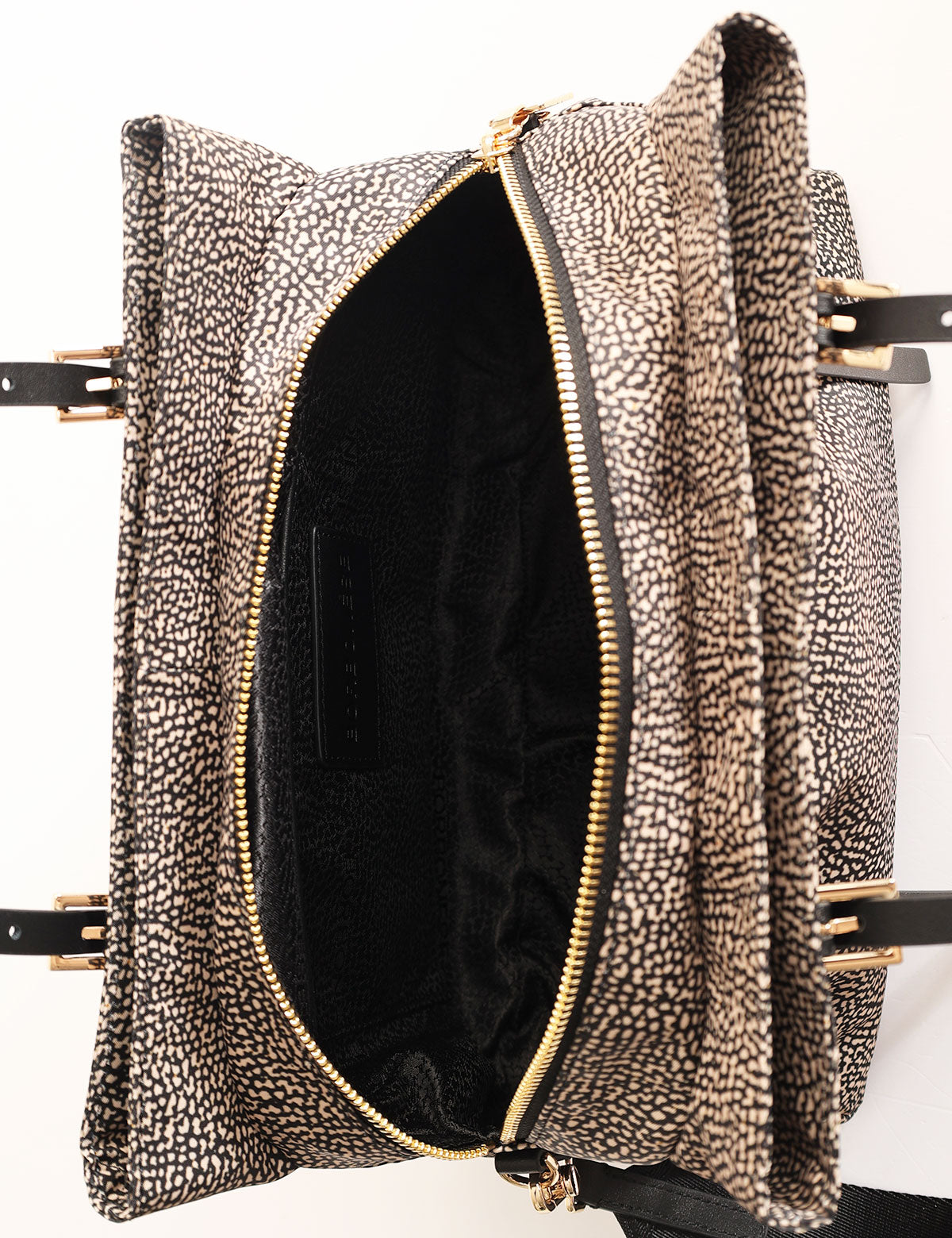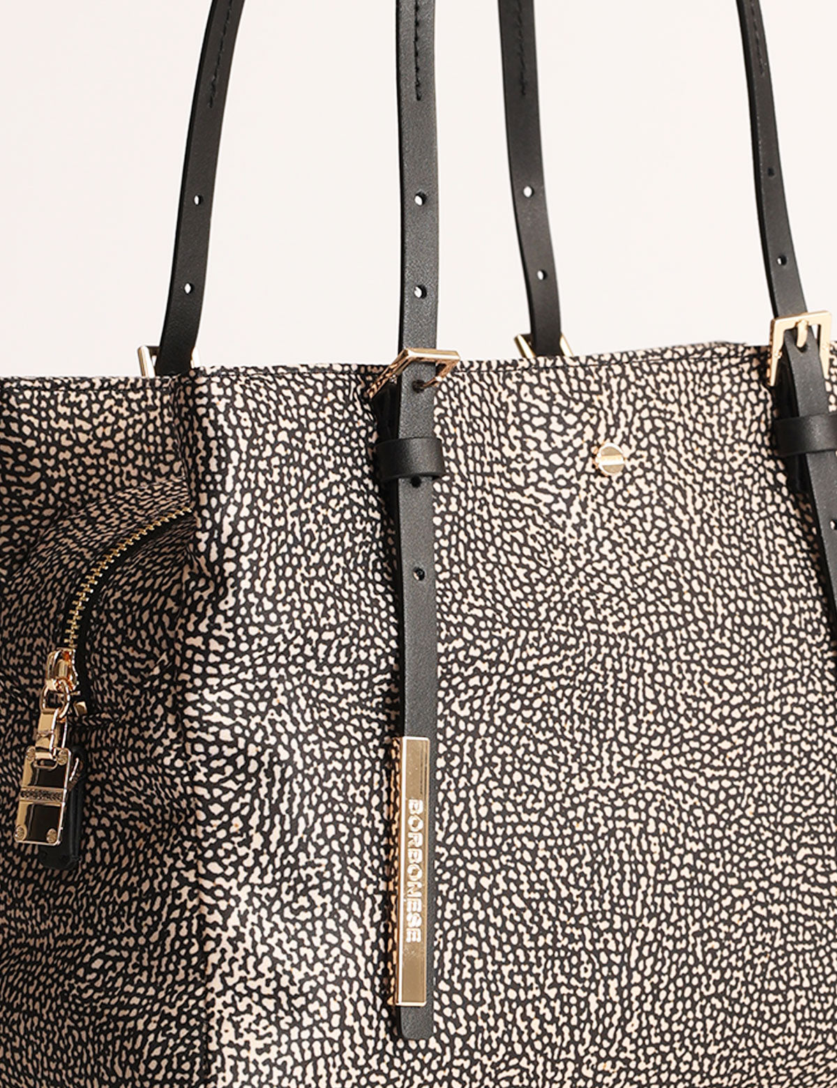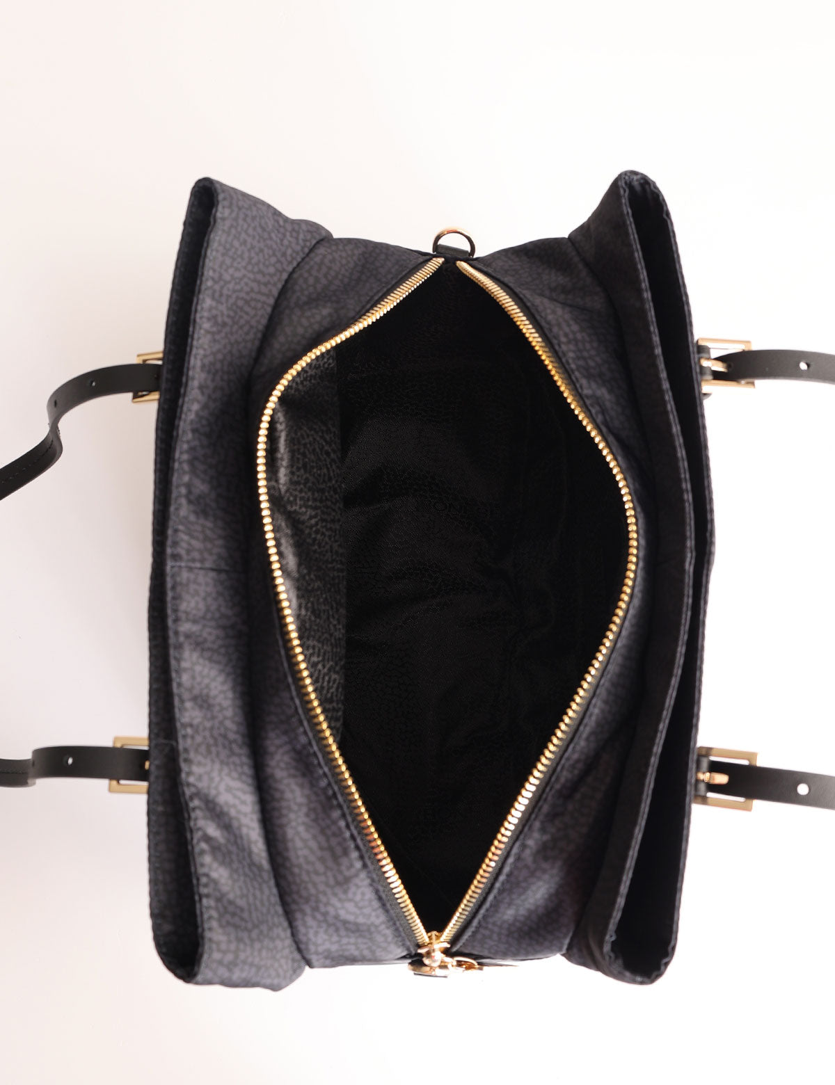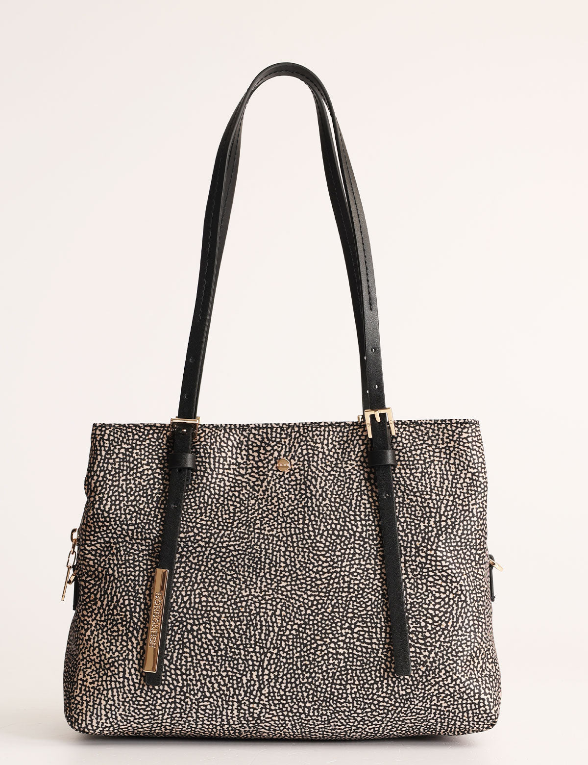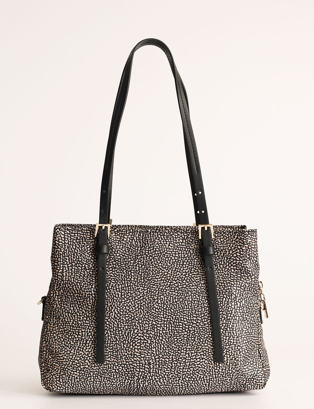 Borbonese women's shoulder bag with two long handles and three internal compartments, made of recycled nylon