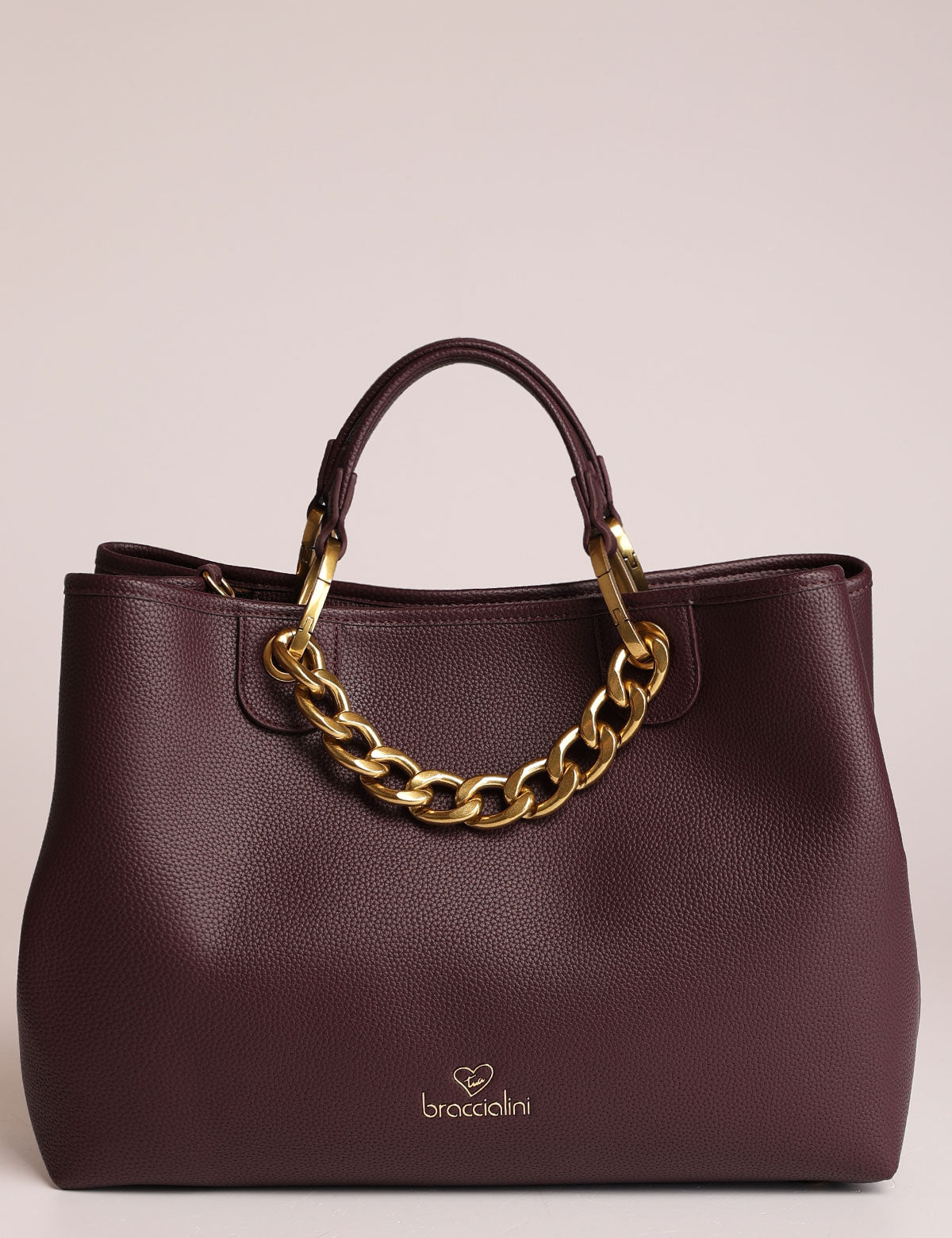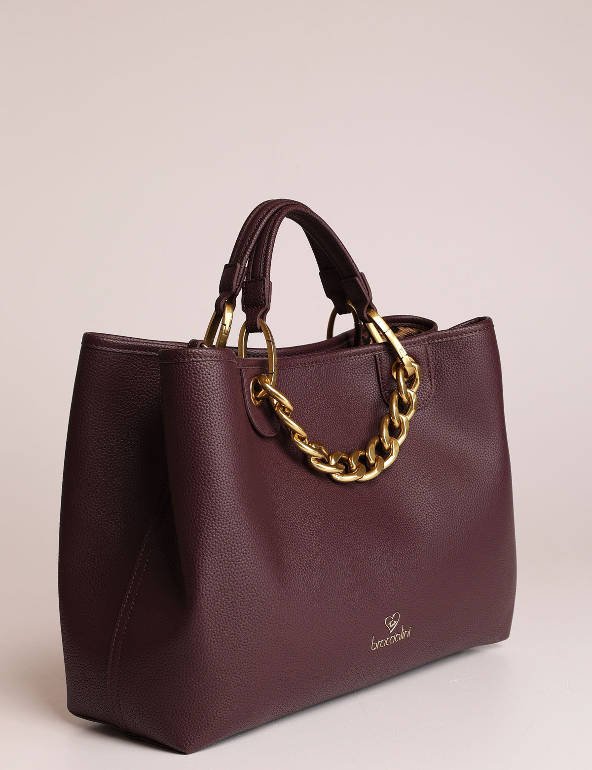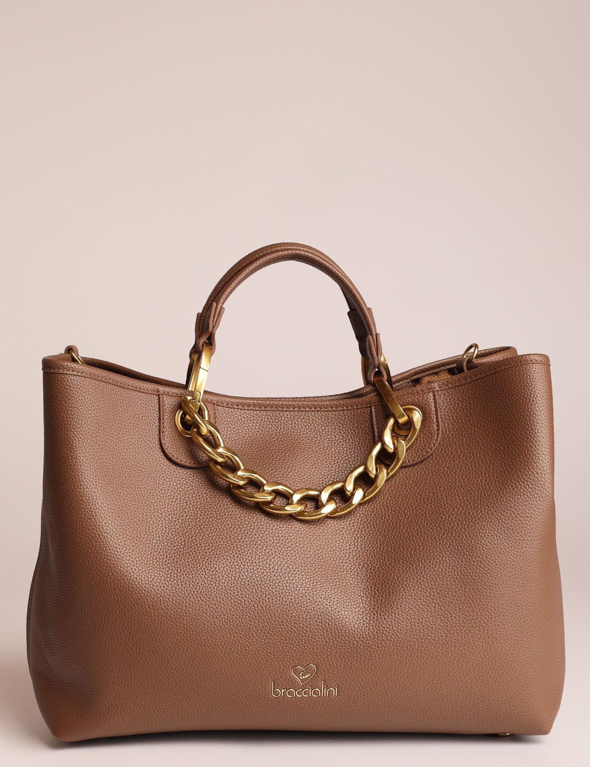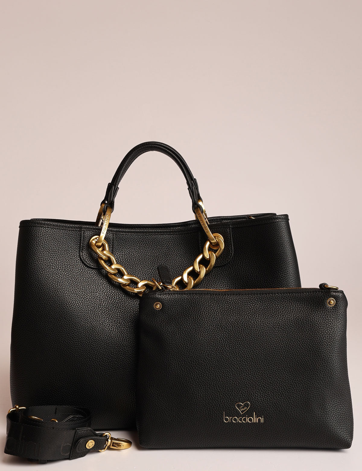 Braccialini women's handbag with chain handles and removable pouch that can also be worn as a shoulder bag