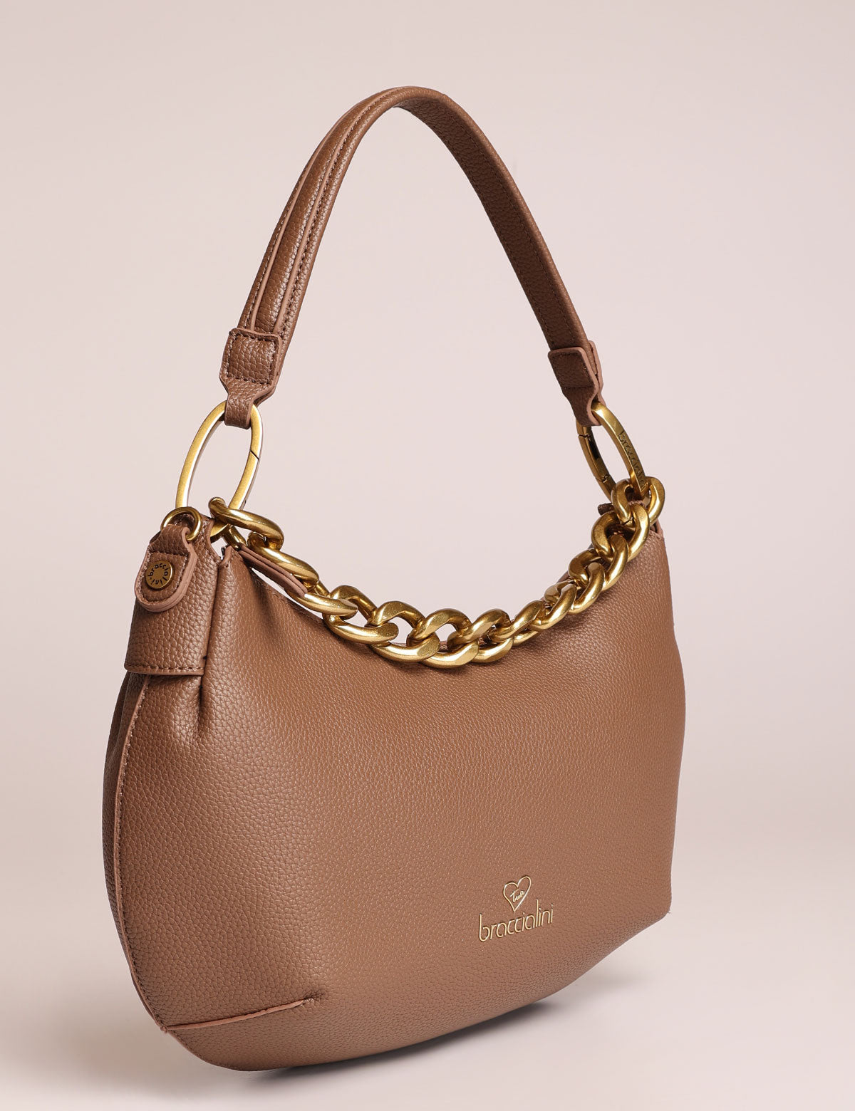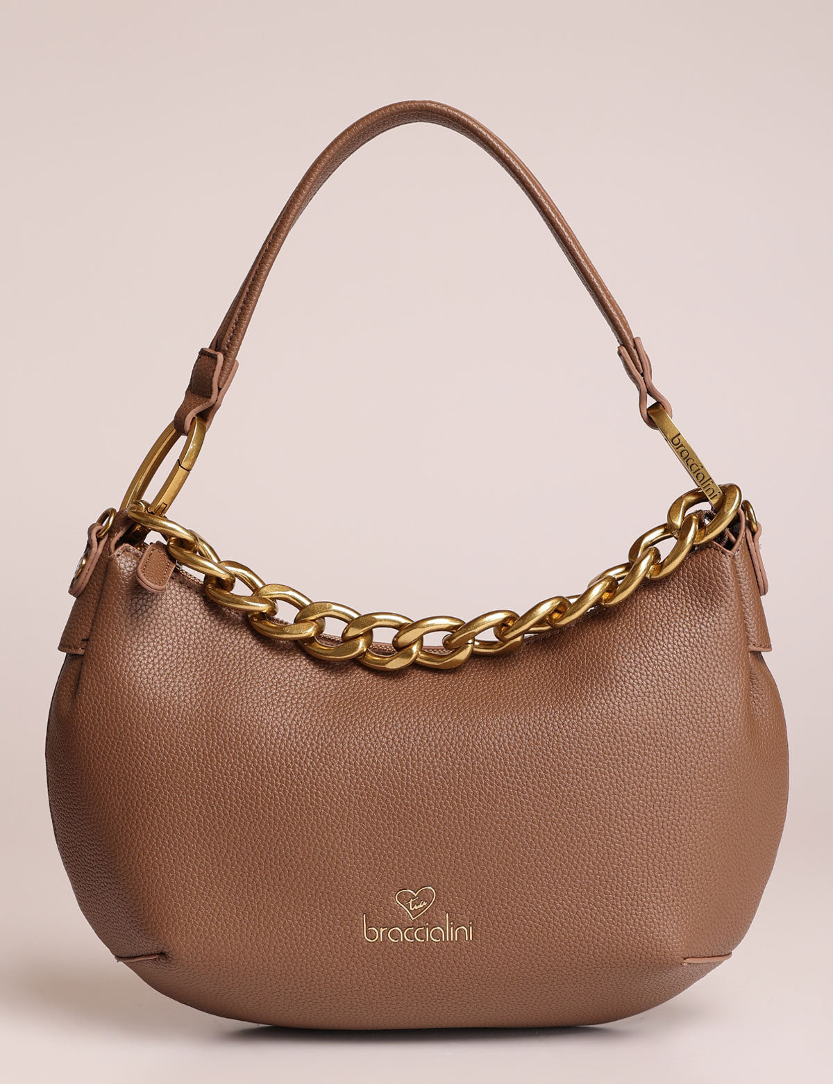 Braccialini women's shoulder bag with classic shoulder strap, one chain strap and logoed fabric shoulder strap