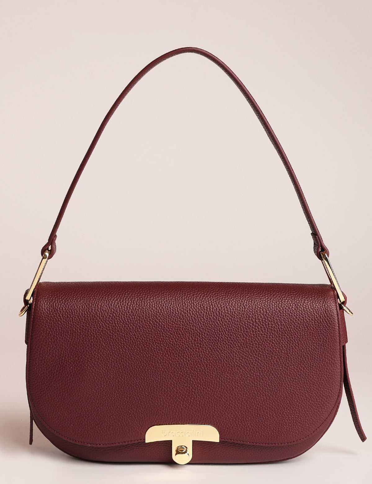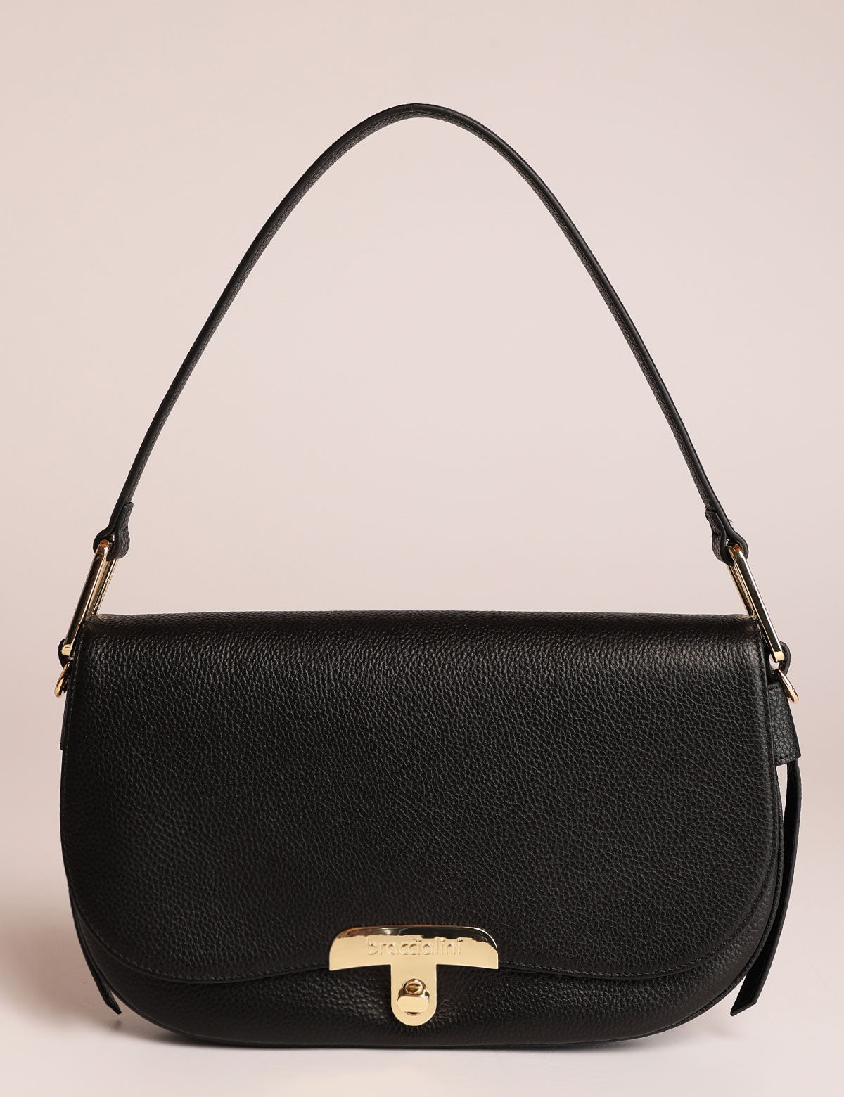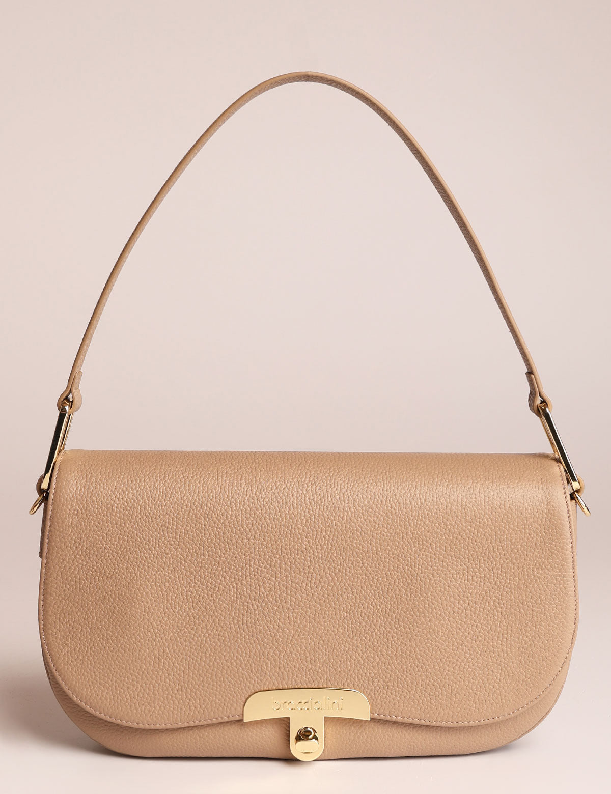 Braccialini women's leather bag, shoulder model with front flap and metal twist lock closure