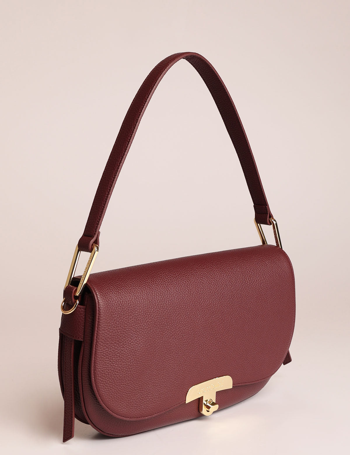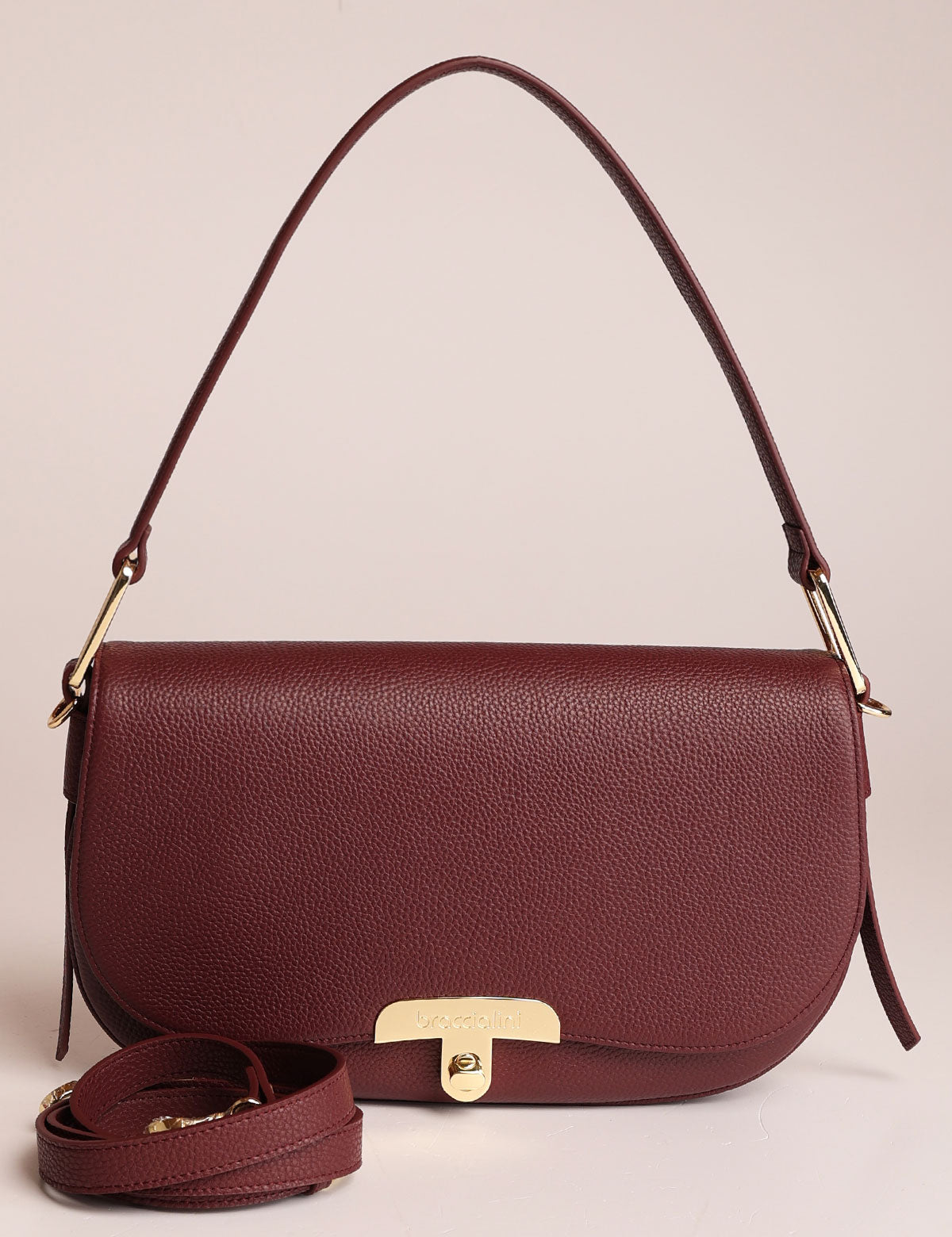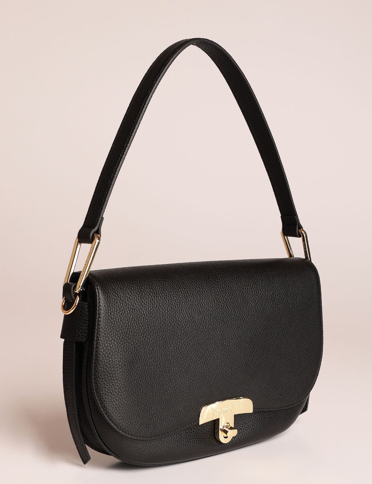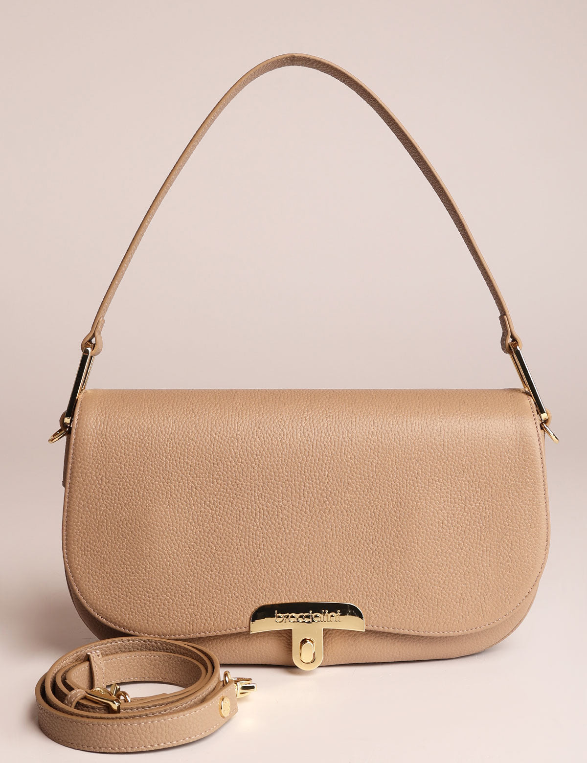 Braccialini women's leather bag, shoulder model with front flap and metal twist lock closure