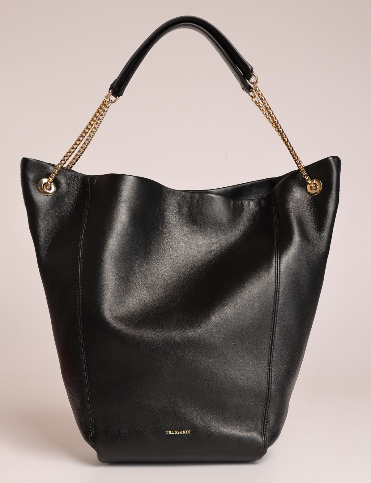 Borsa da donna Trussardi in pelle, modello con manici in catena e particolare design a svasare