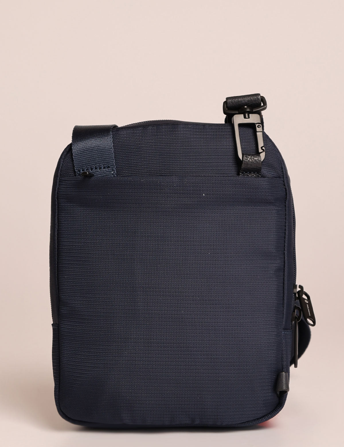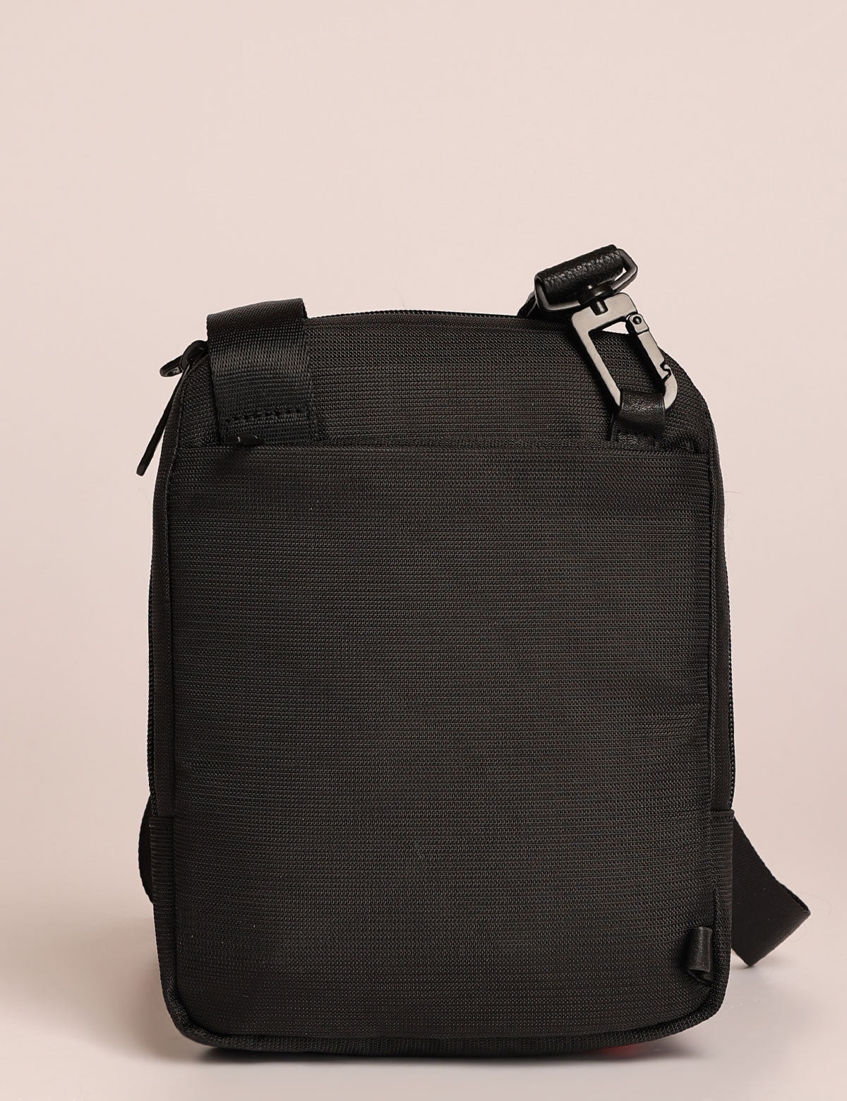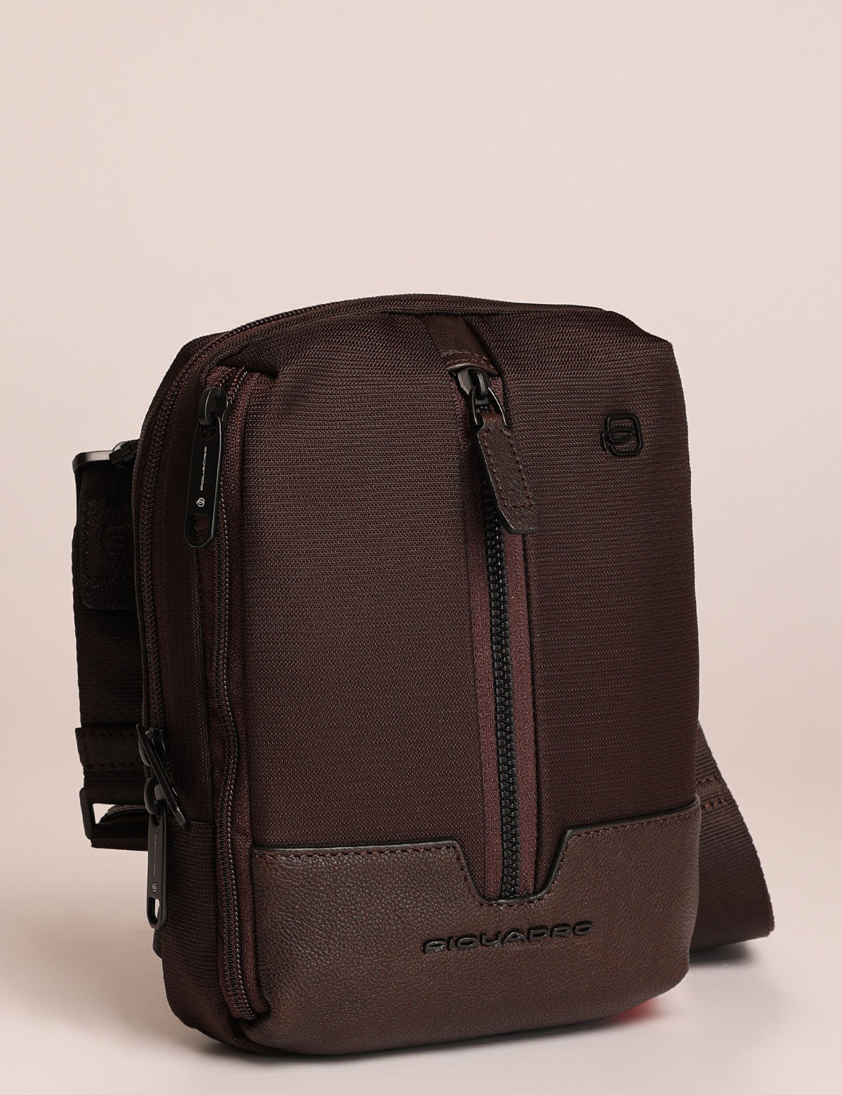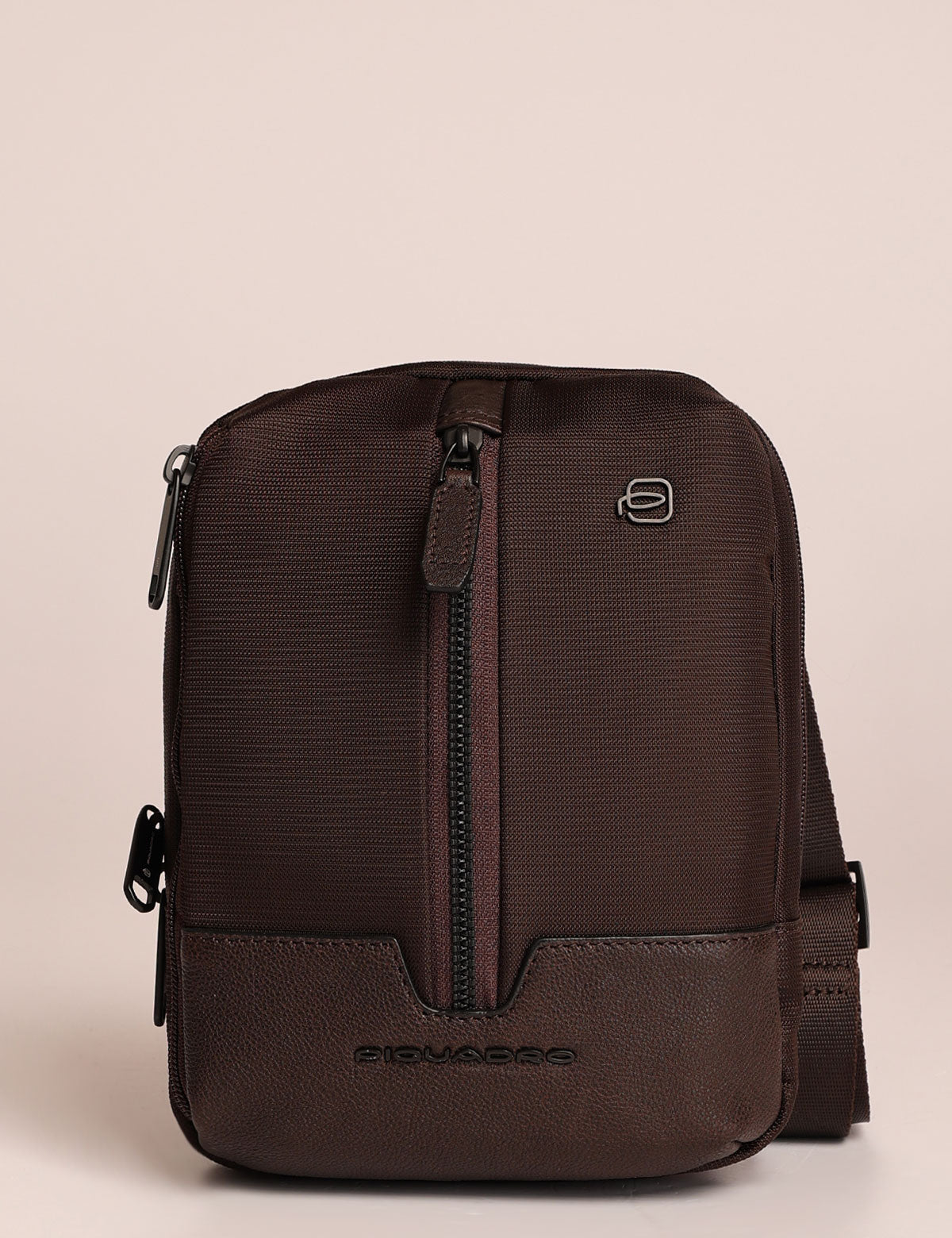 Tracolla da uomo Piquadro realizzata in tessuto riciclato e dettagli in pelle, modello con porta iPad Mini e pratica tasca frontale verticale