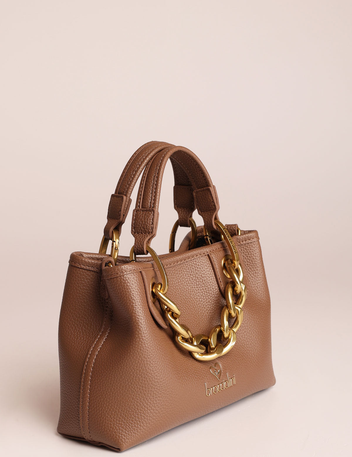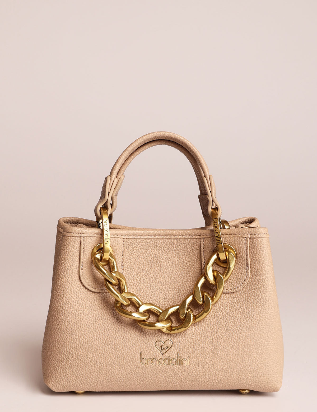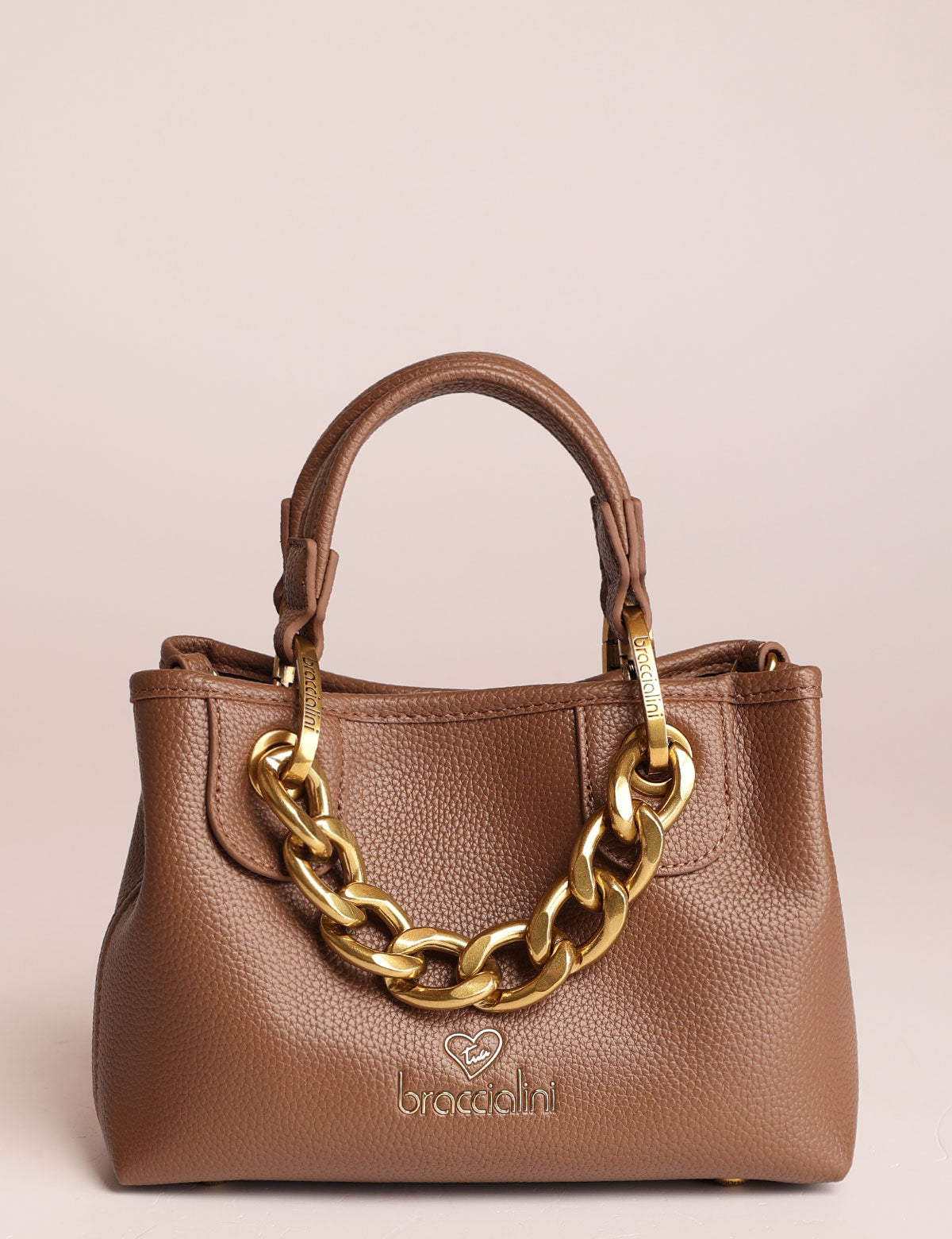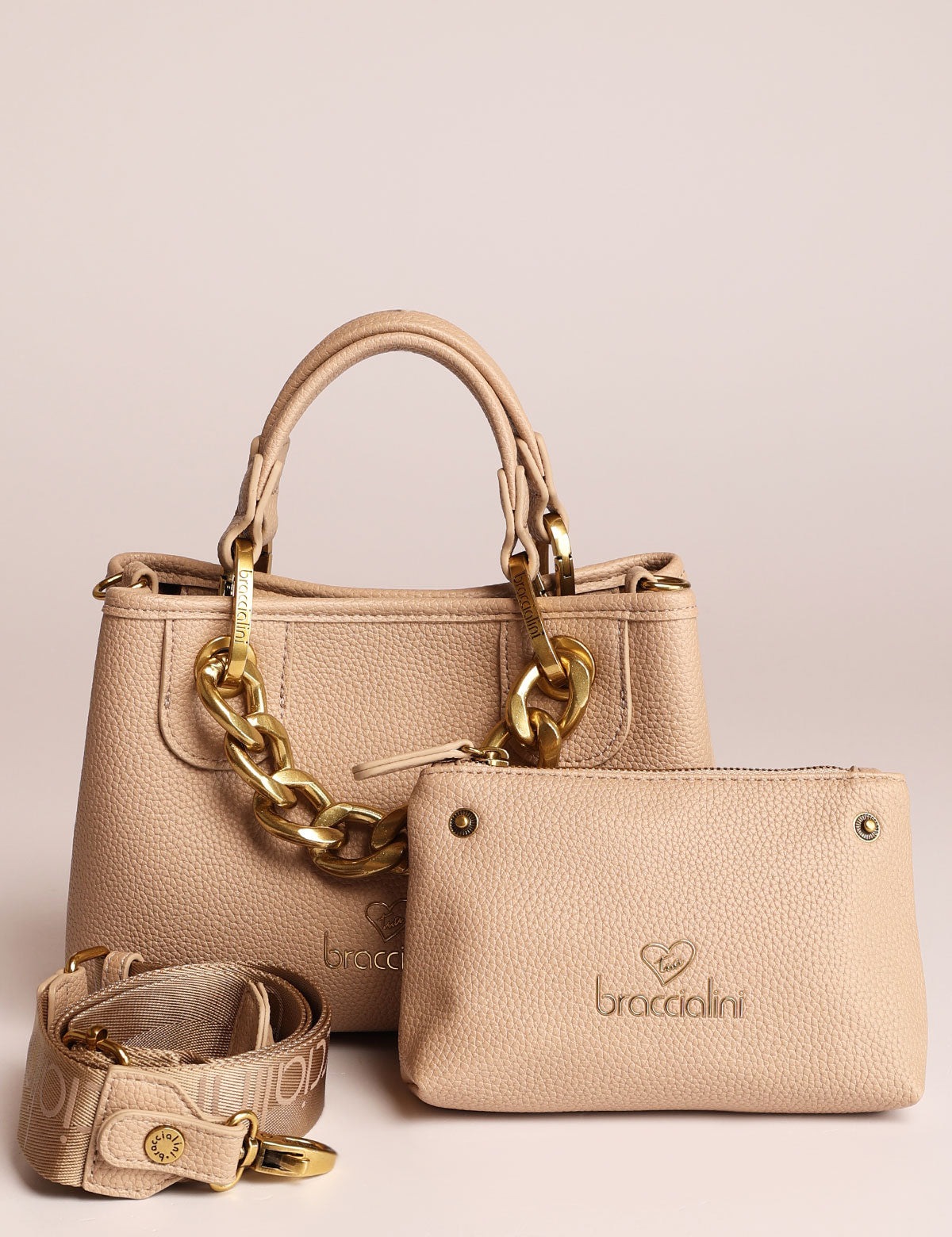 Braccialini women's small bag with double handles, one pair of which is chain. It also features a removable internal pouch.