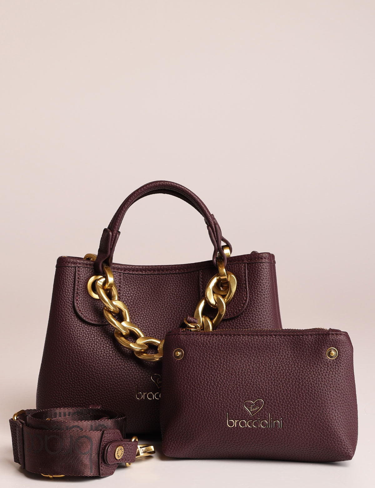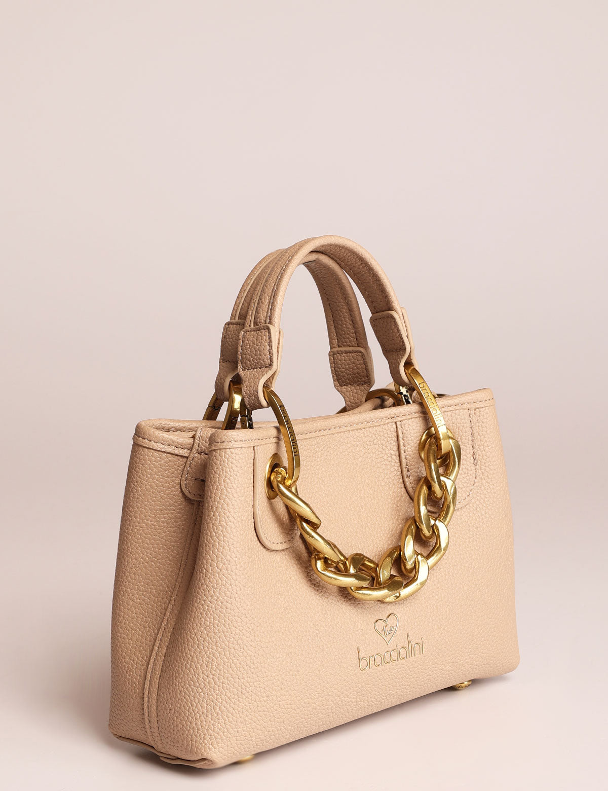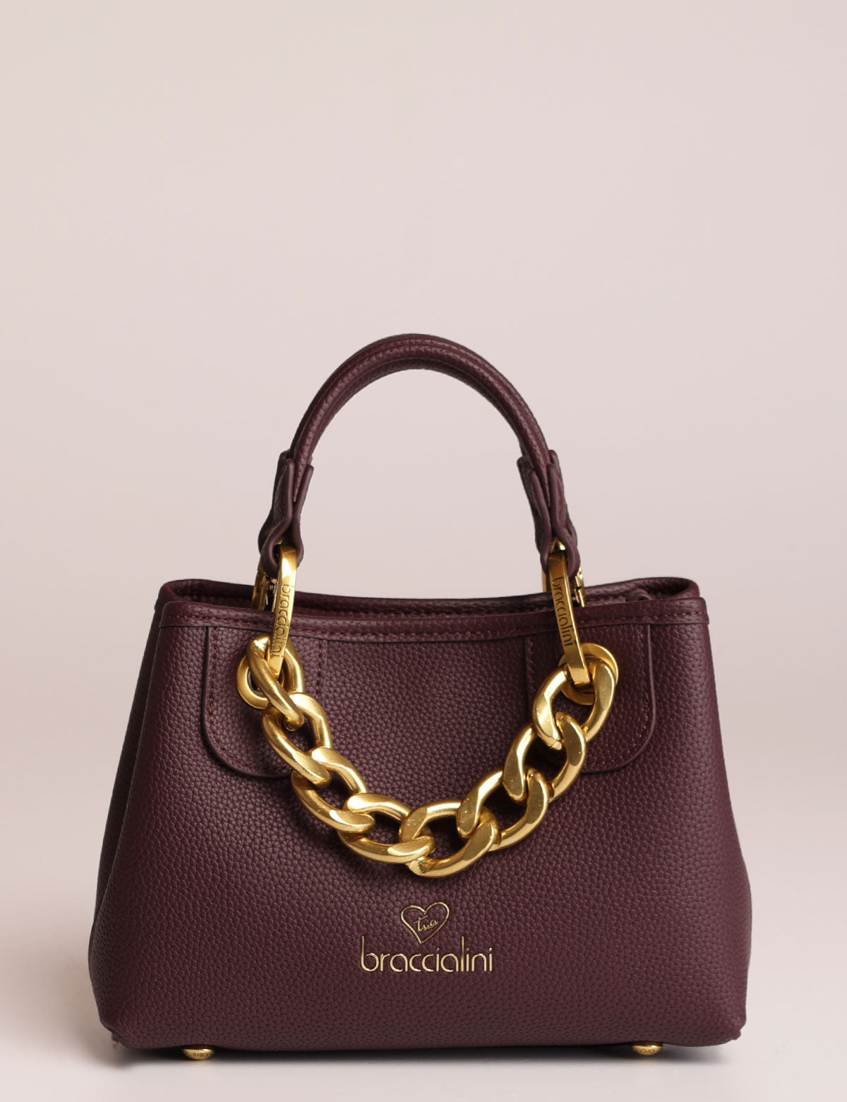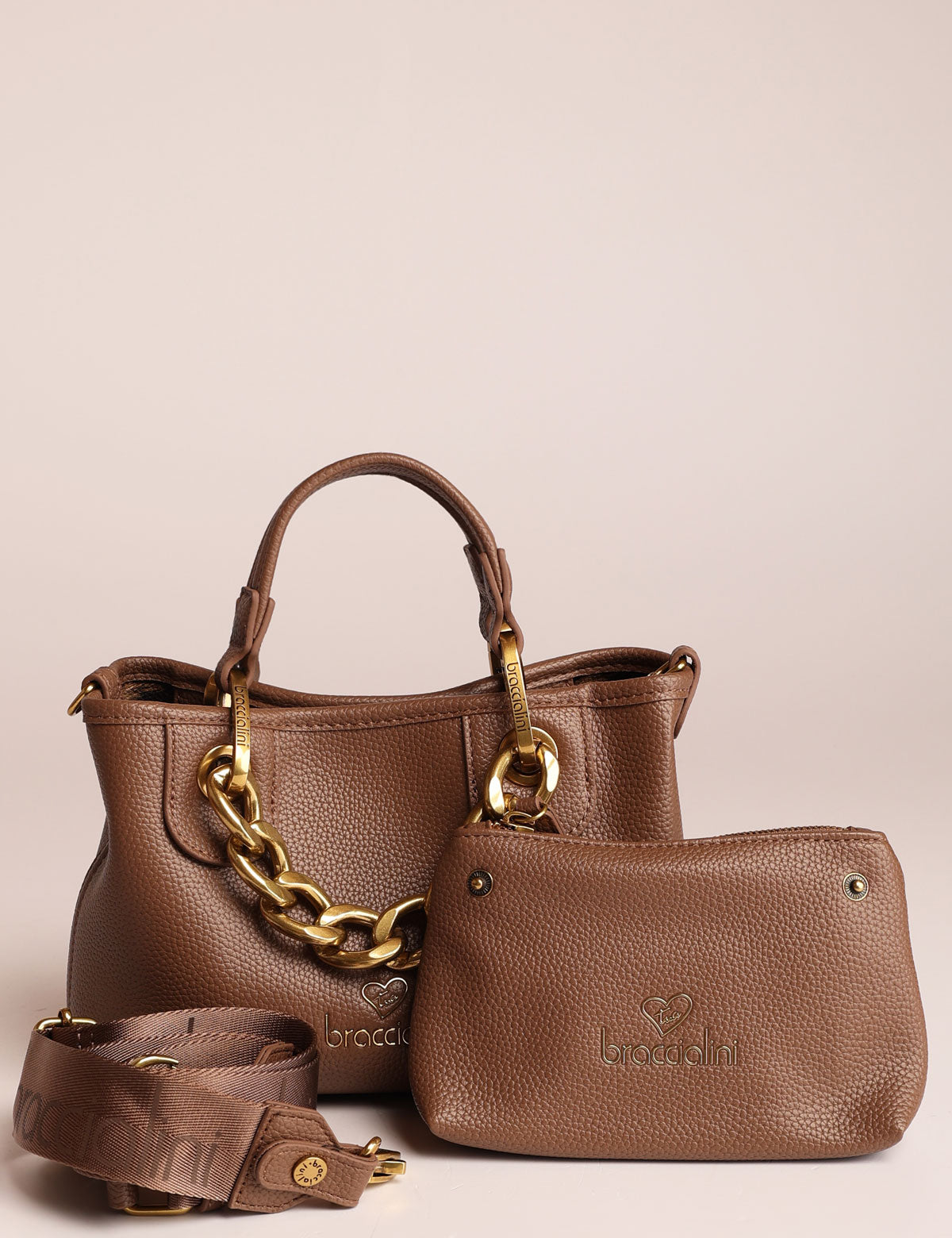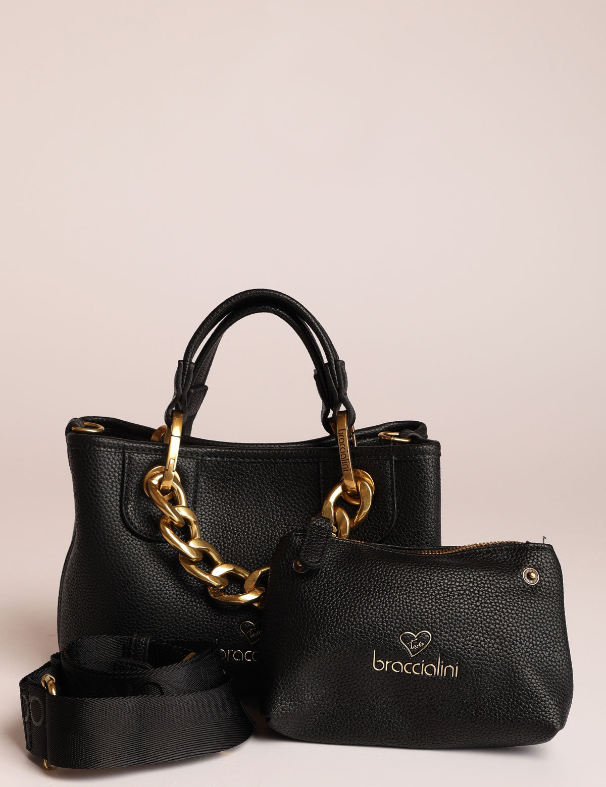 Braccialini women's small bag with double handles, one pair of which is chain. It also features a removable internal pouch.