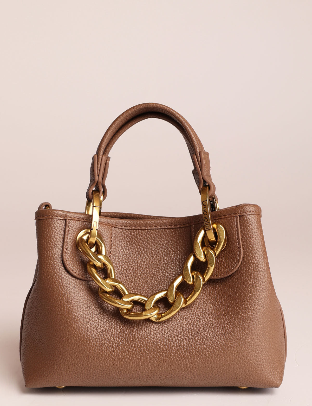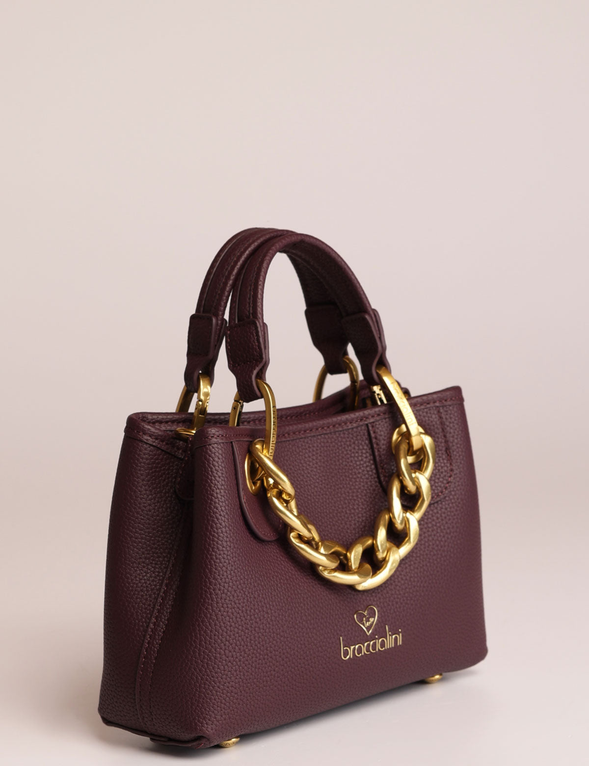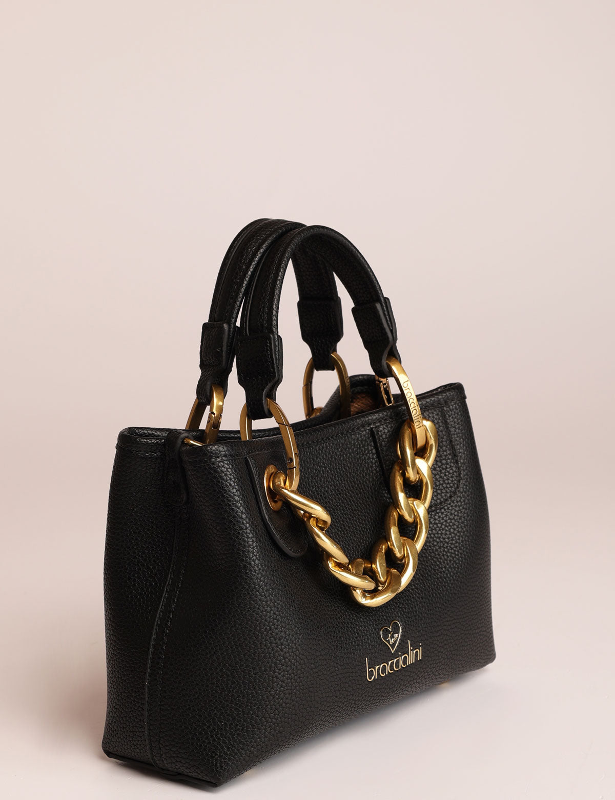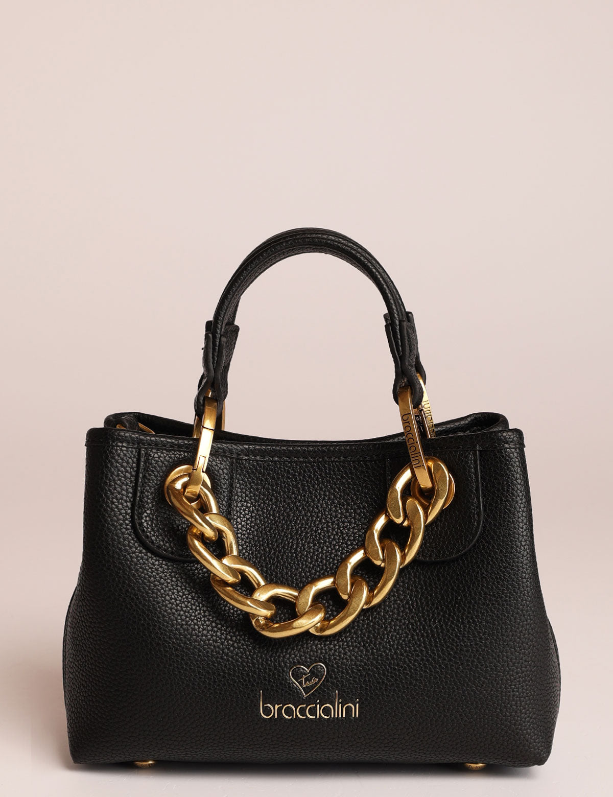Braccialini women's small bag with double handles, one pair of which is chain. It also features a removable internal pouch.