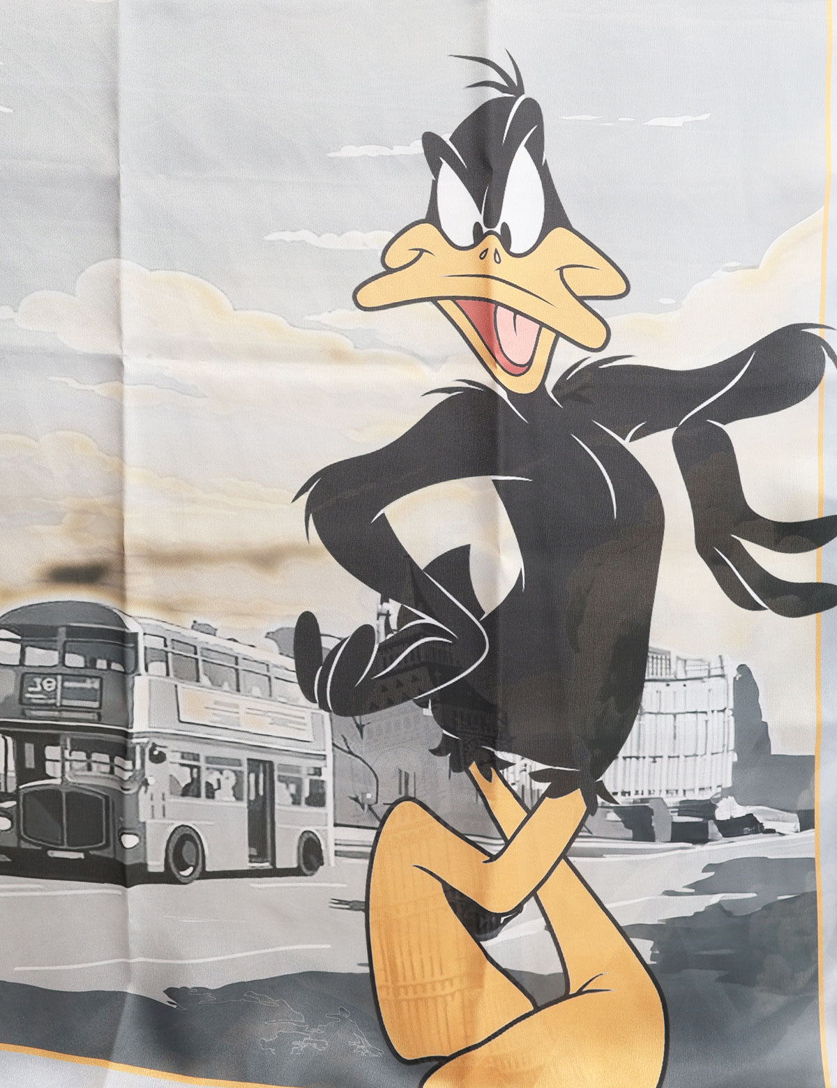 Braccialini women's rectangular scarf with a Looney Tunes Daffy Duck print. Measures 180 x 90 cm.