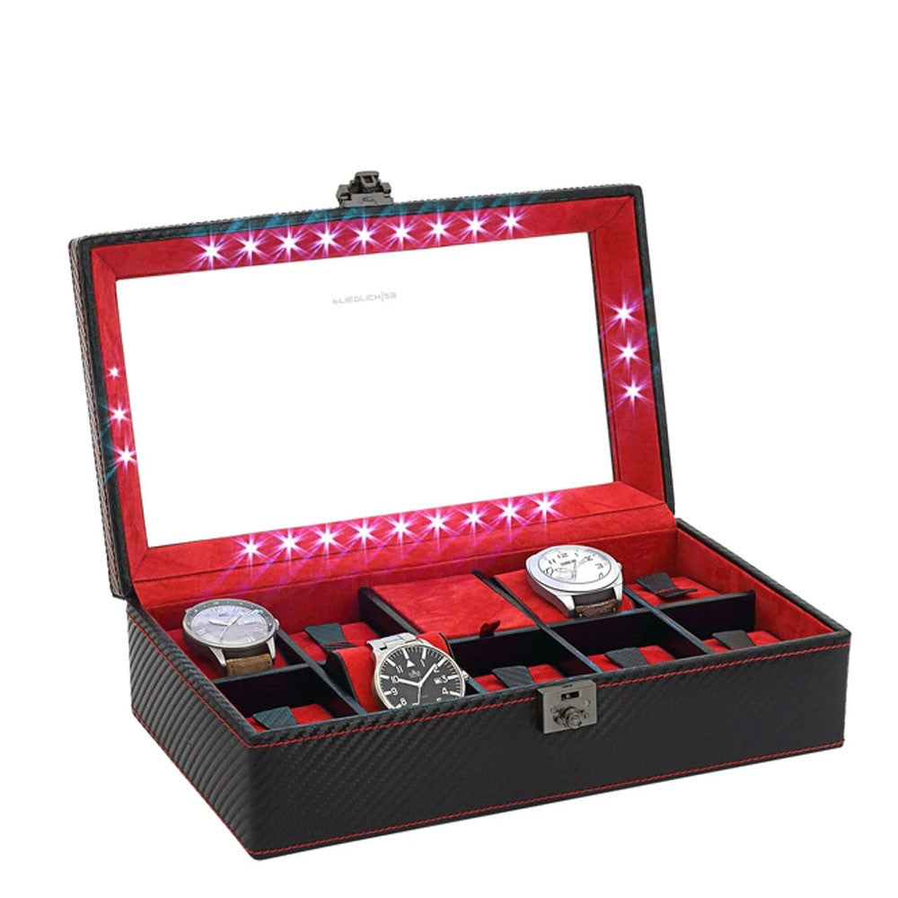 Friedrich23 9-place watch box with LED from the Carbon line, product code 32059-2