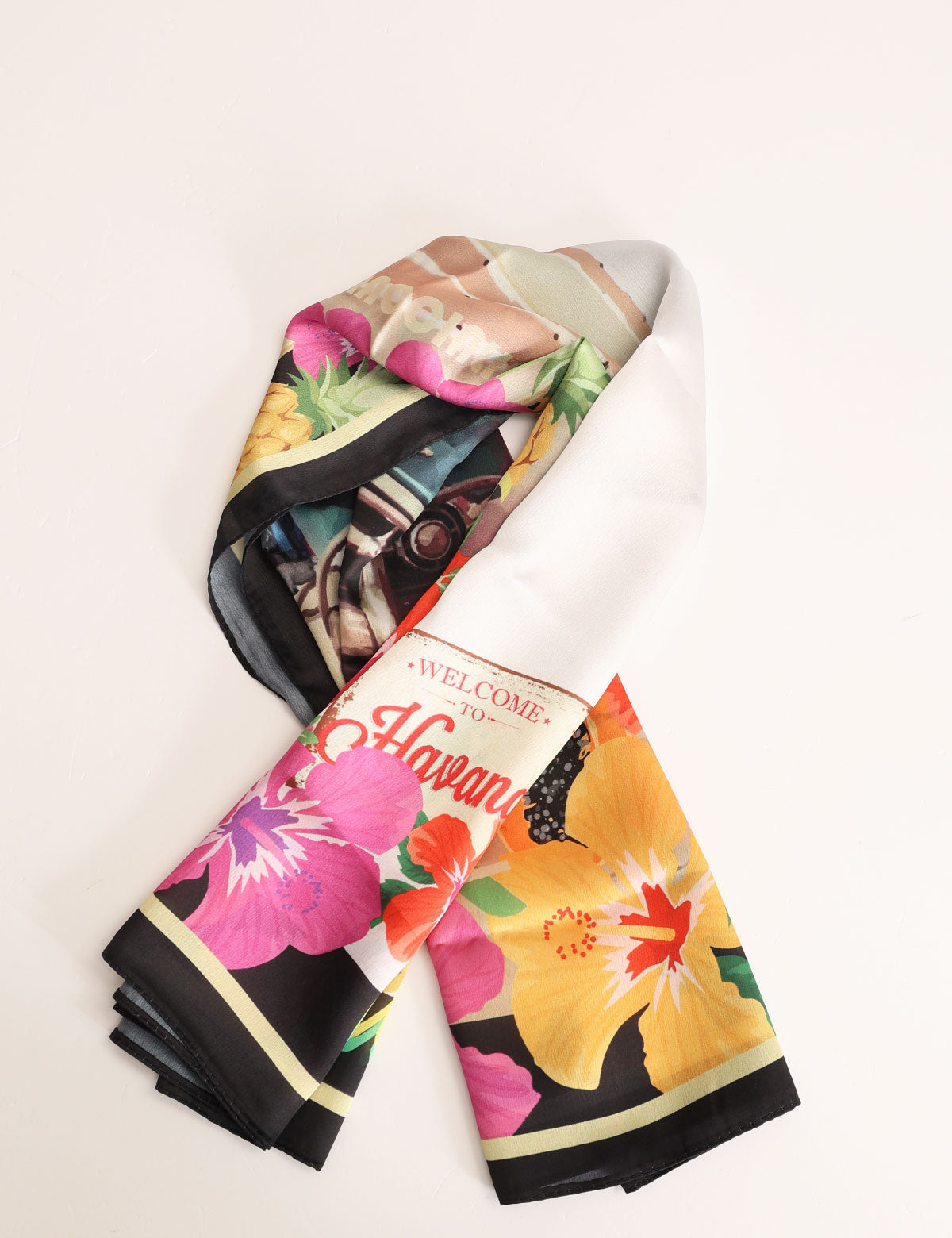 Braccialini women's scarf, square foulard model with Cuba print. Dimensions 90x90 cm