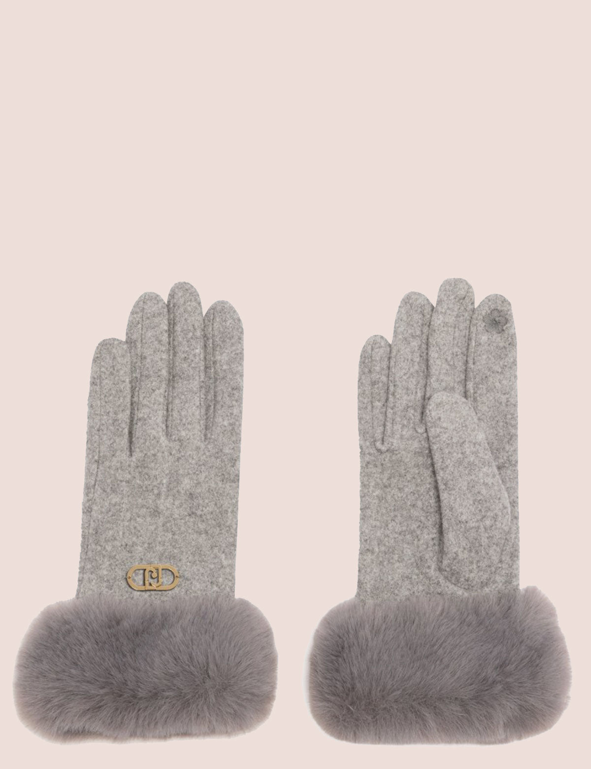 Guanti da donna Liu Jo con dettaglio logo in metallo e polsino in ecopelliccia. Modello con touch sull'indice