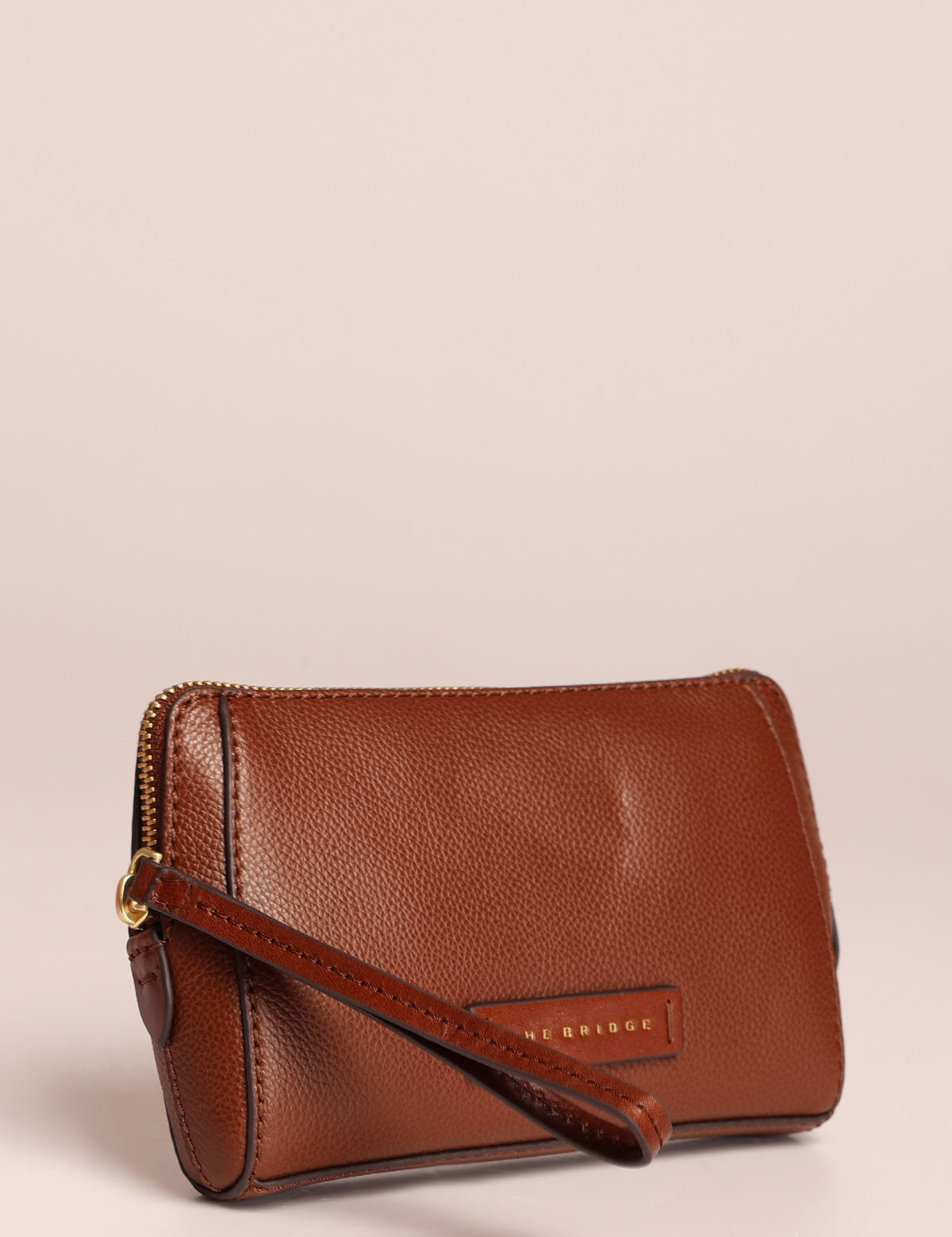 Bustina in pelle The Bridge con pratico laccetto da polso e chiusura zip, modello in pelle martellata con dettagli in pelle liscia