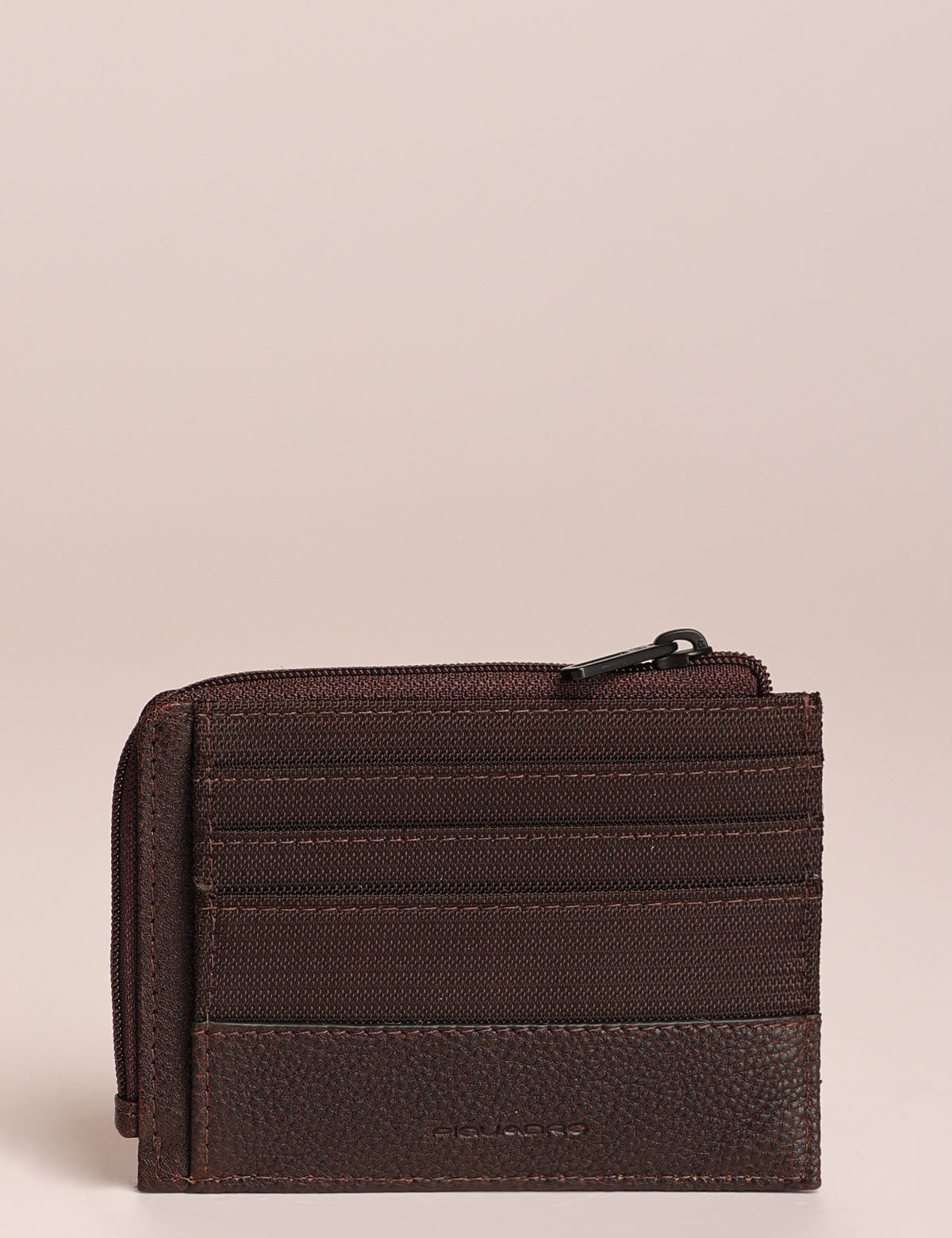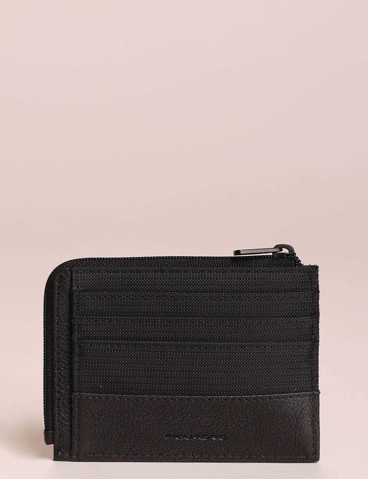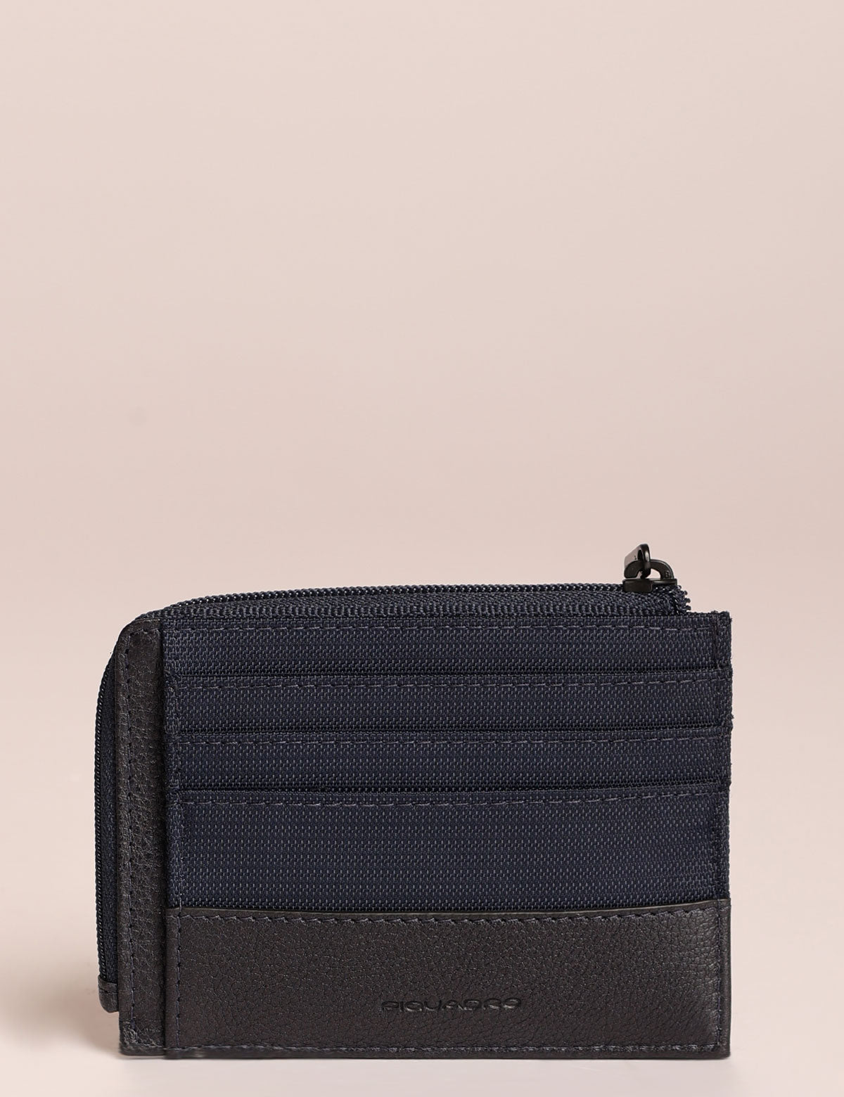 Portacarte Piquadro sottile con slot porta carte su due lati e zip superiore per taschina portamonete. Sistema di protezione RFID