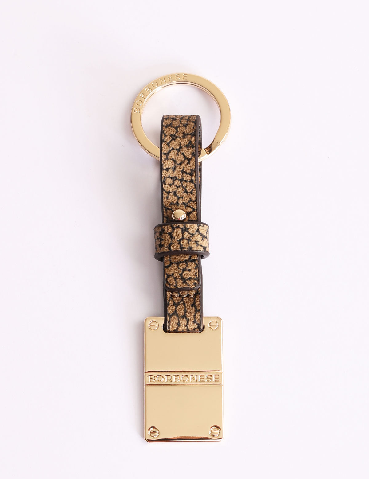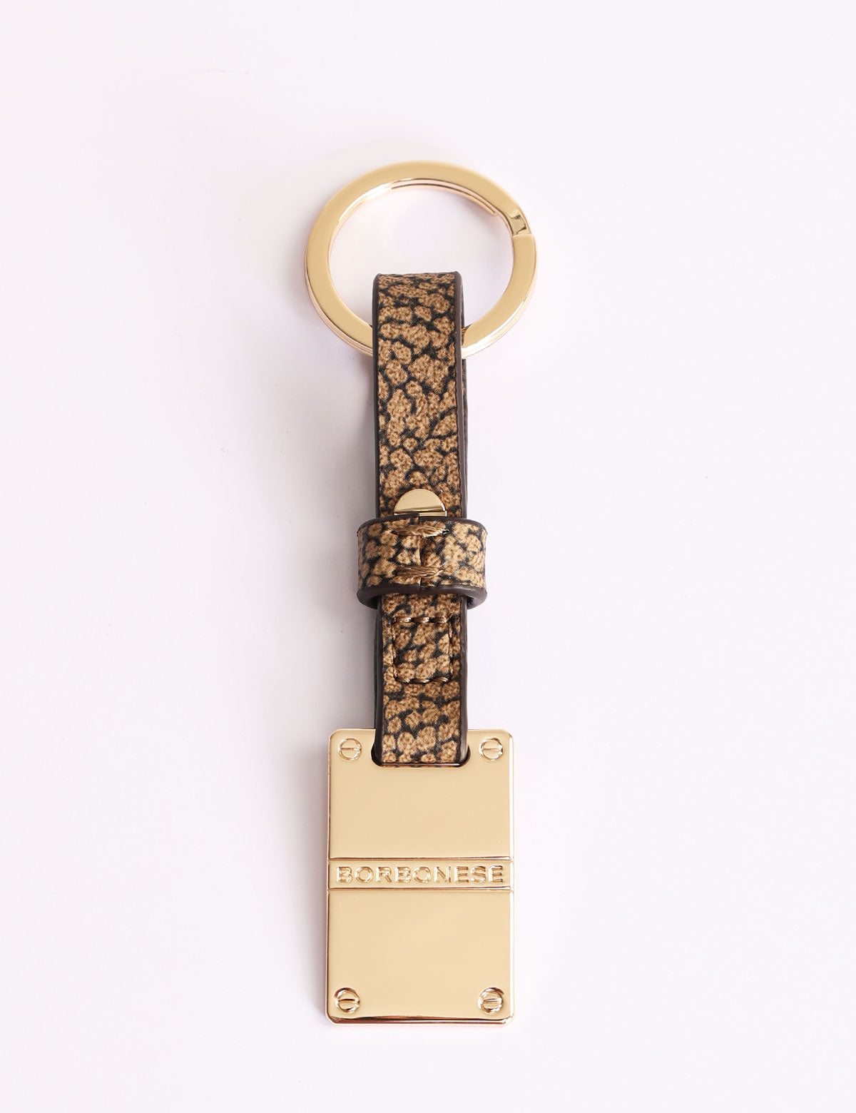 Women's pendant keychain with key ring and gold-colored chrome plate. OP coated canvas model