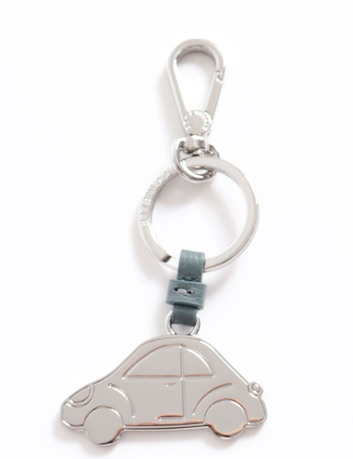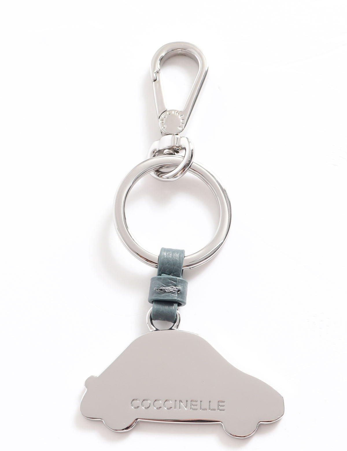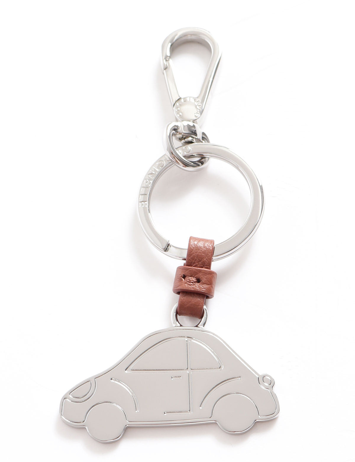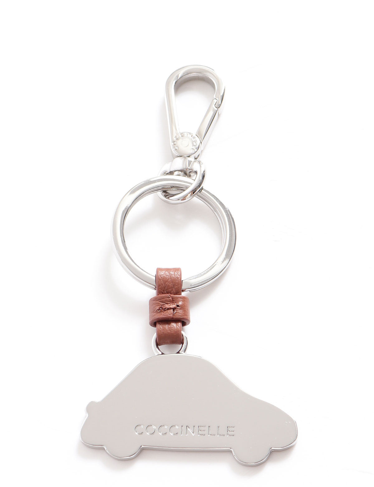 Coccinelle Steel Car Shaped Pendant Keychain with Leather Detail