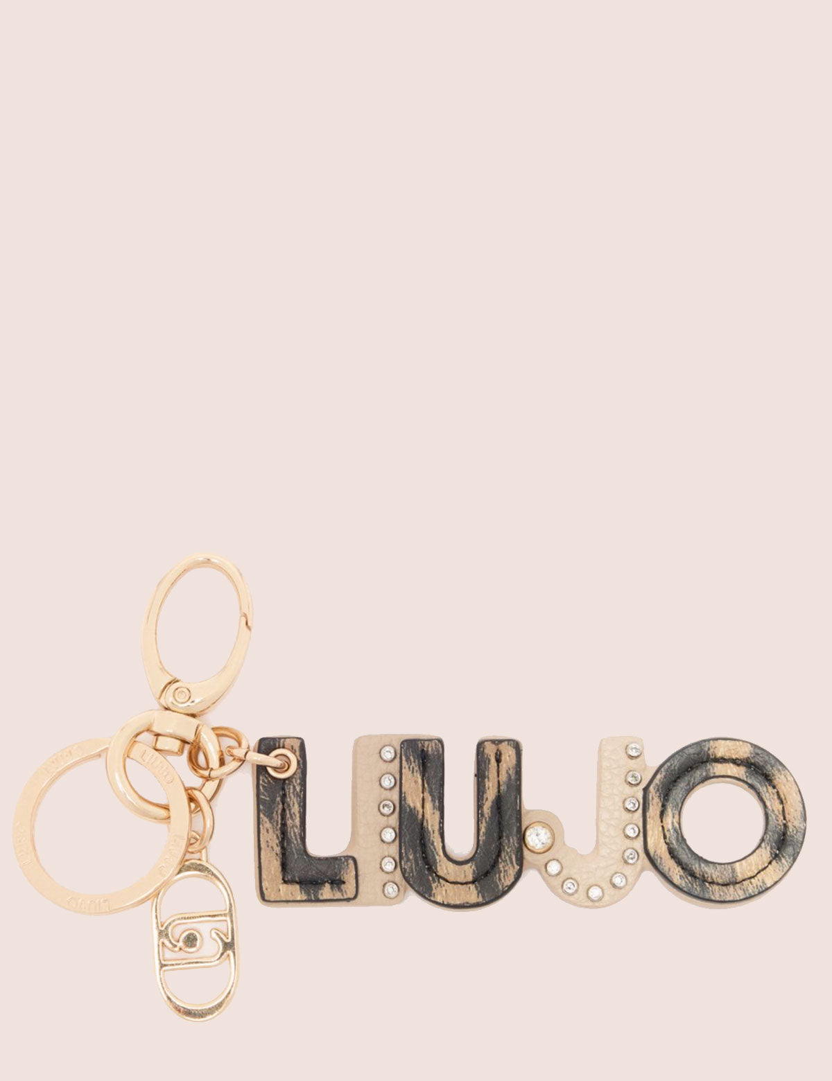Portachiavi da donna Liu Jo con anello e moschettone con charm logo maculato e strass. Dimensioni 10x3 cm