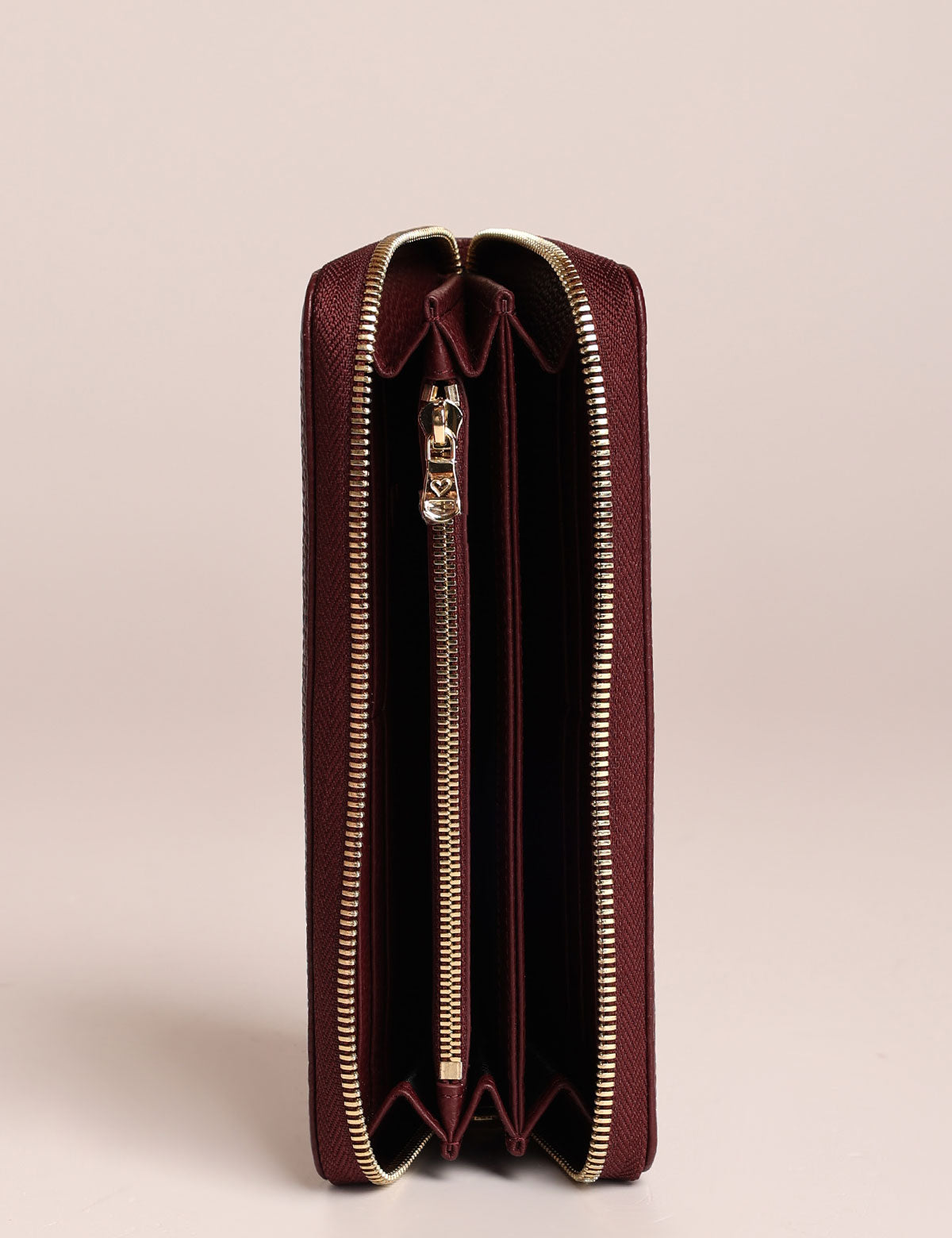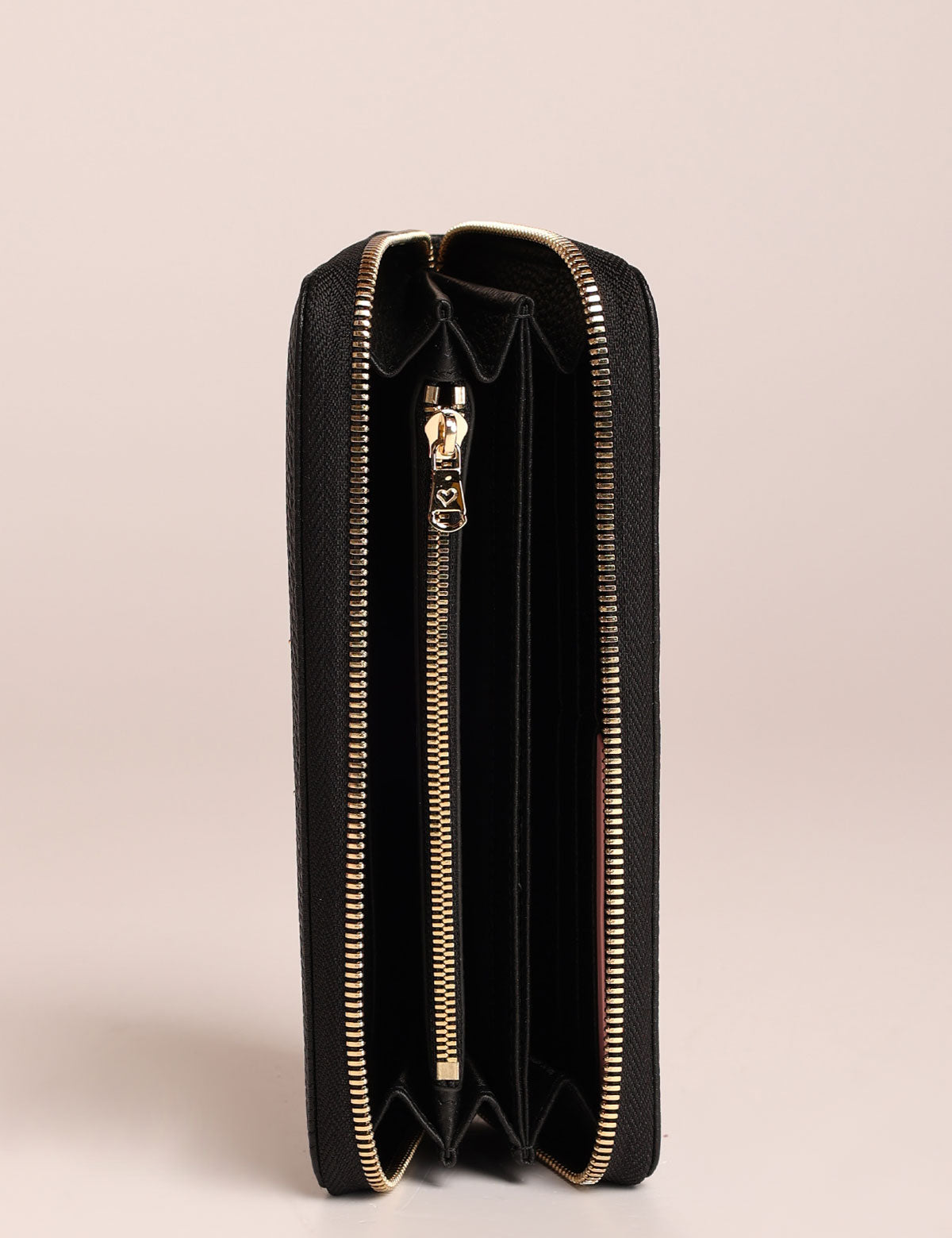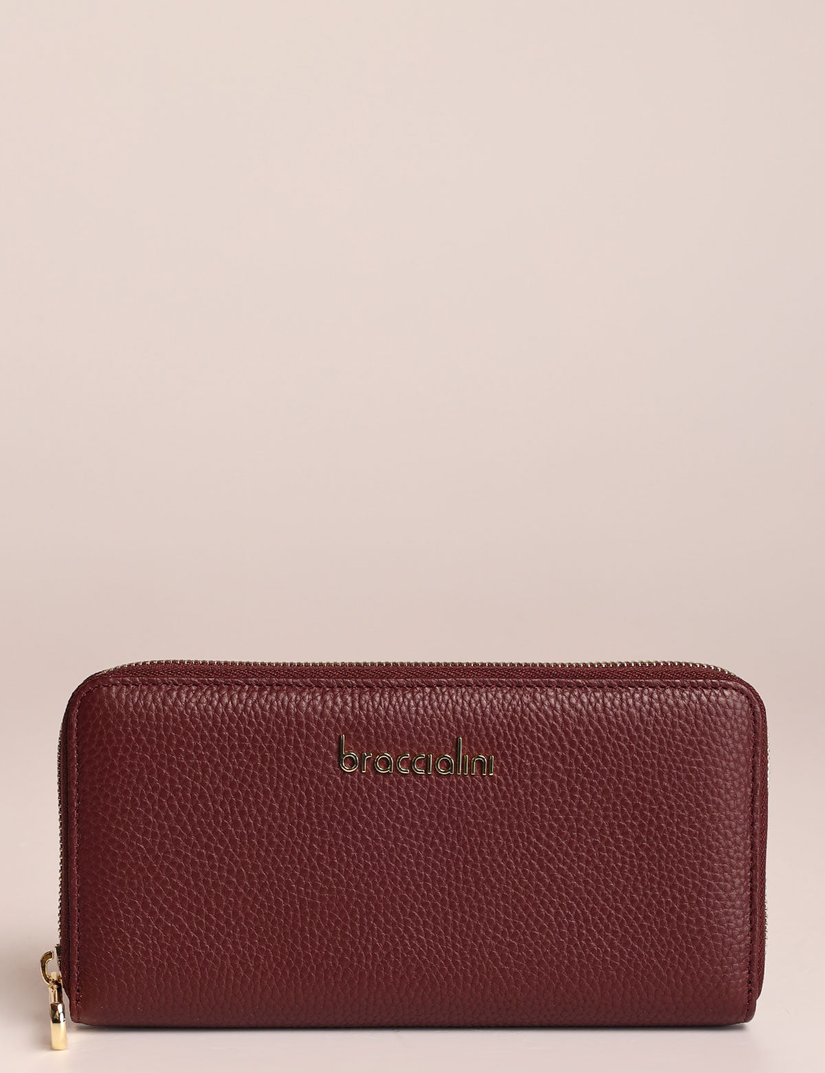 Portafogli da donna Braccialini, modello in pelle con chiusura zip e apertura a soffietto con dettagli color oro