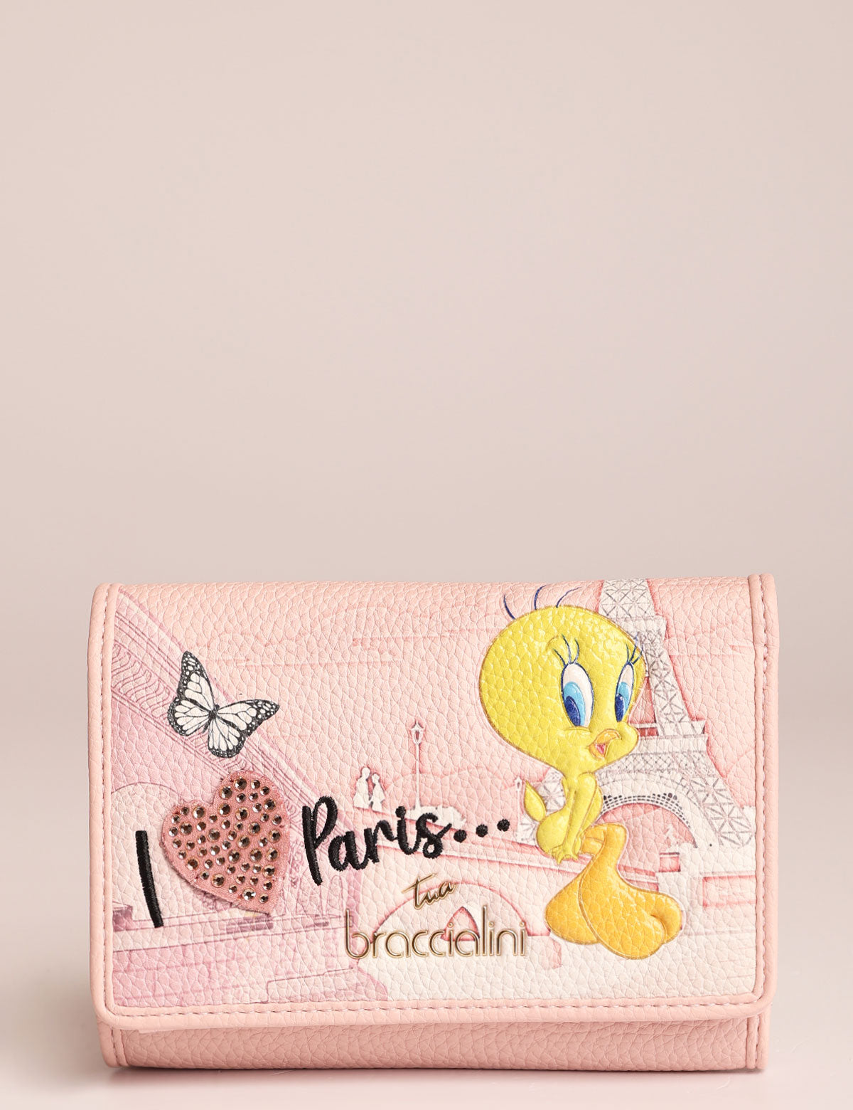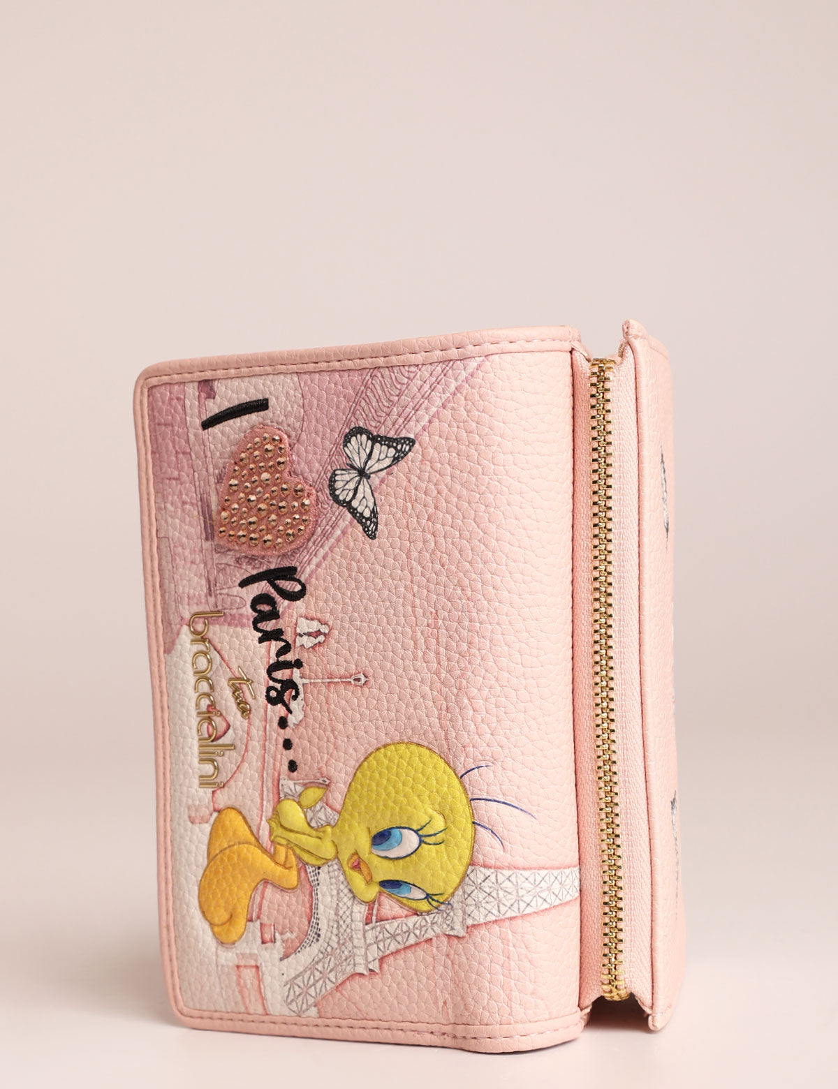 Braccialini wallet from the Postcards line, Looney Tunes edition, Paris print, product code LT209