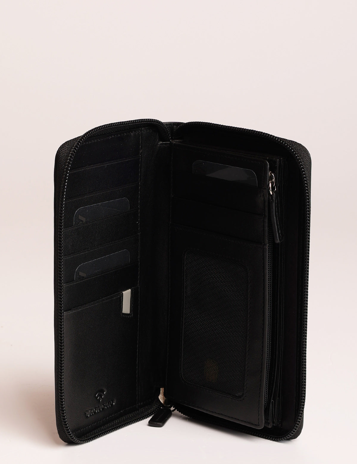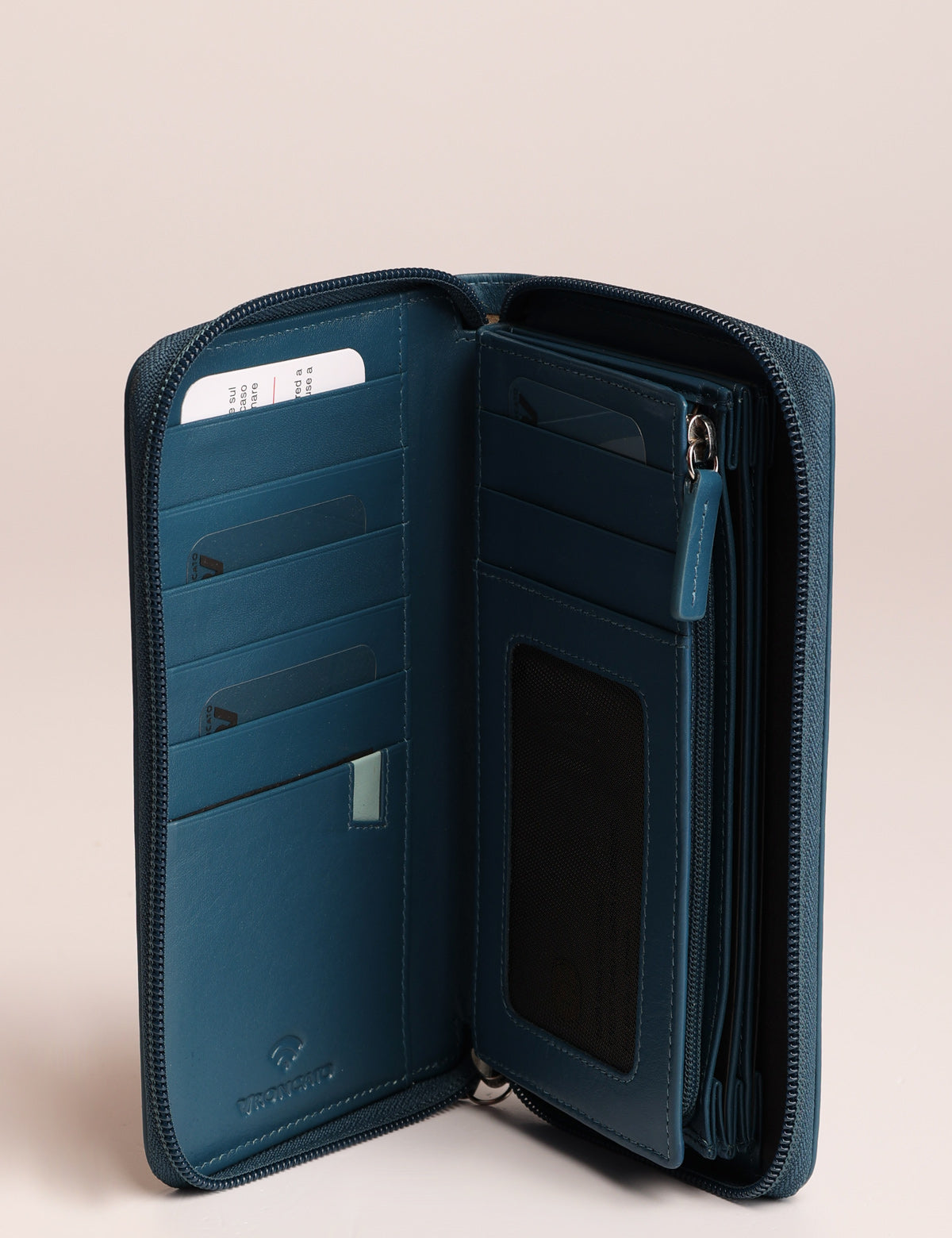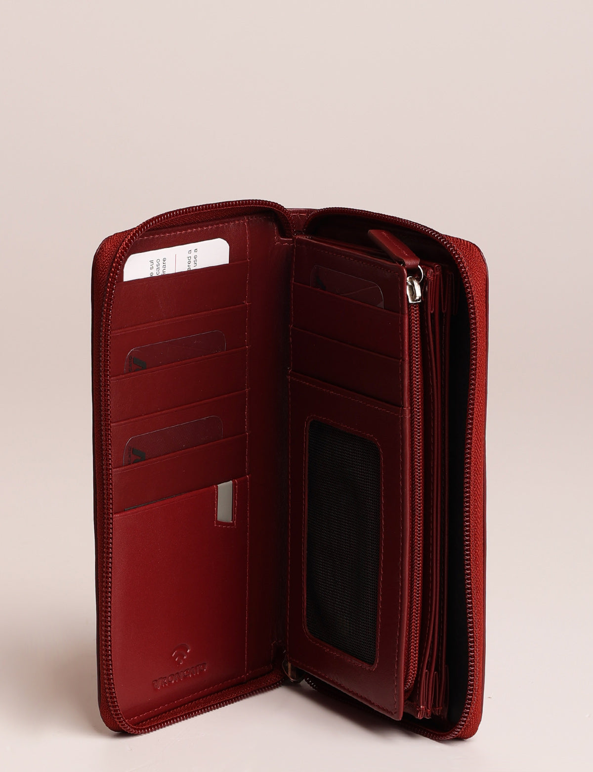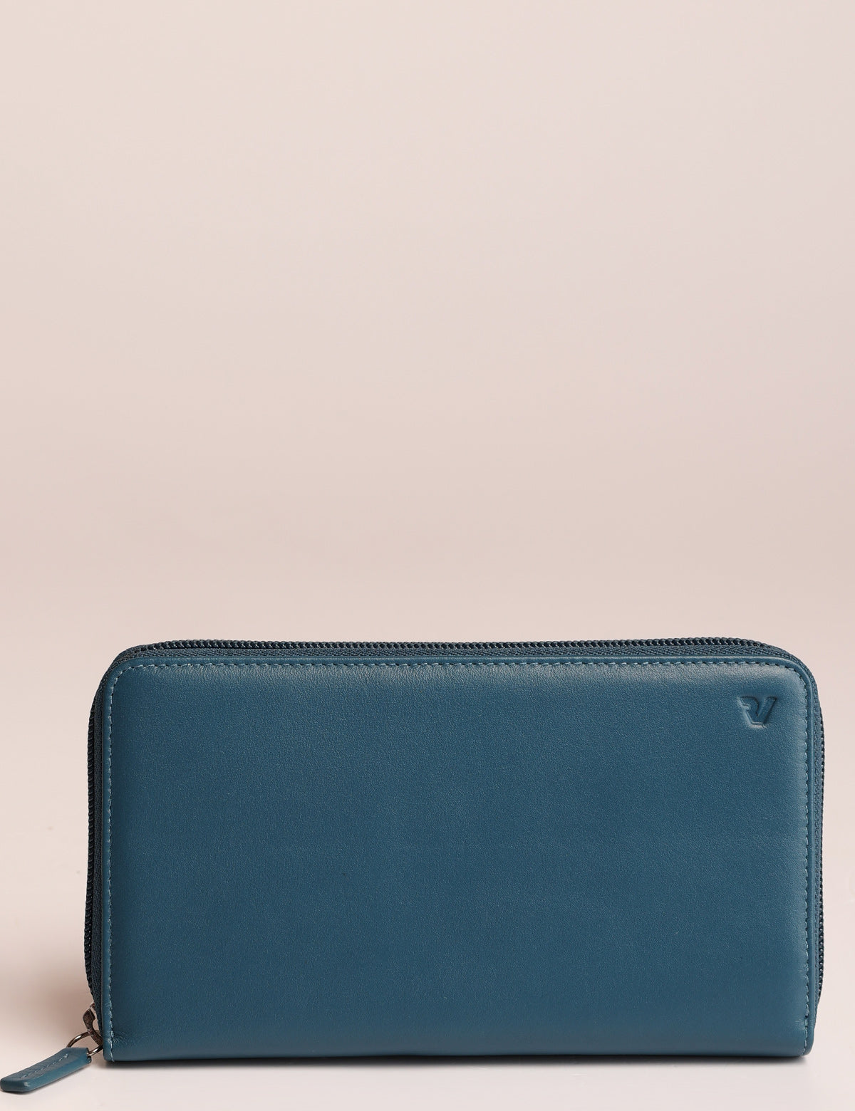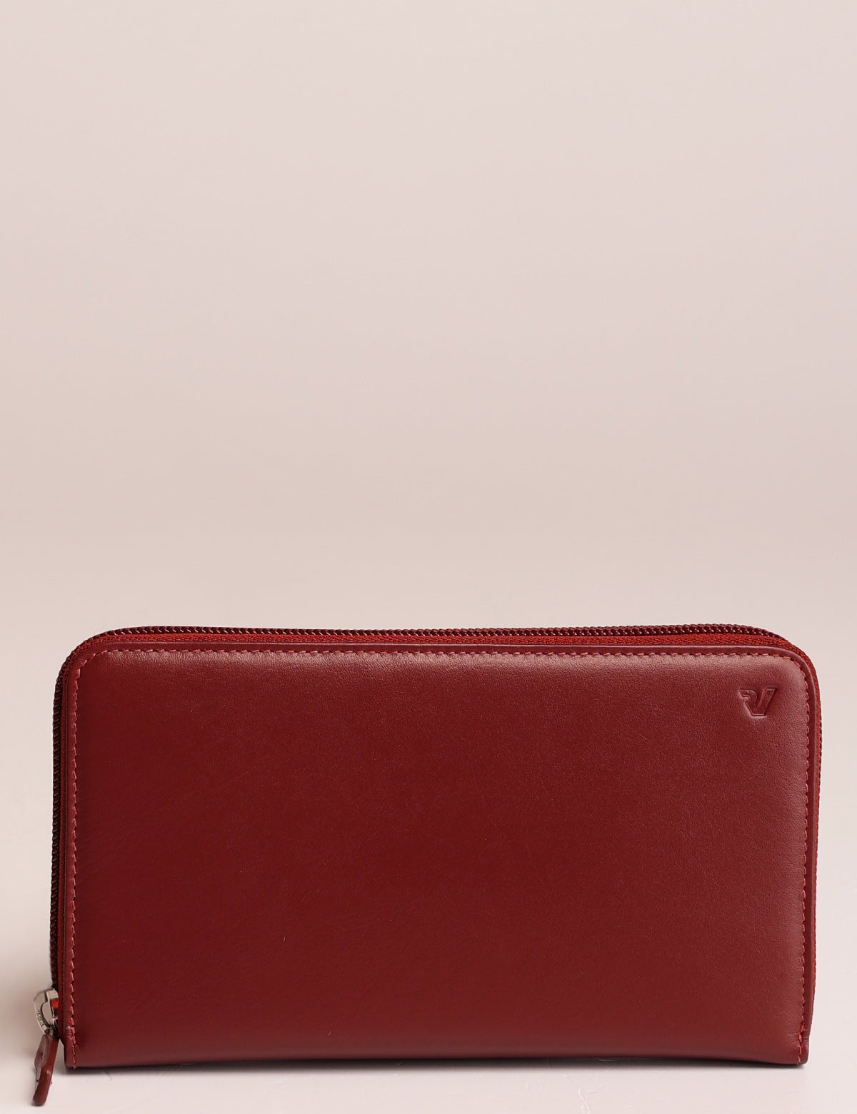 Roncato women's large wallet with three-sided zip closure and RFID anti-fraud protection system.