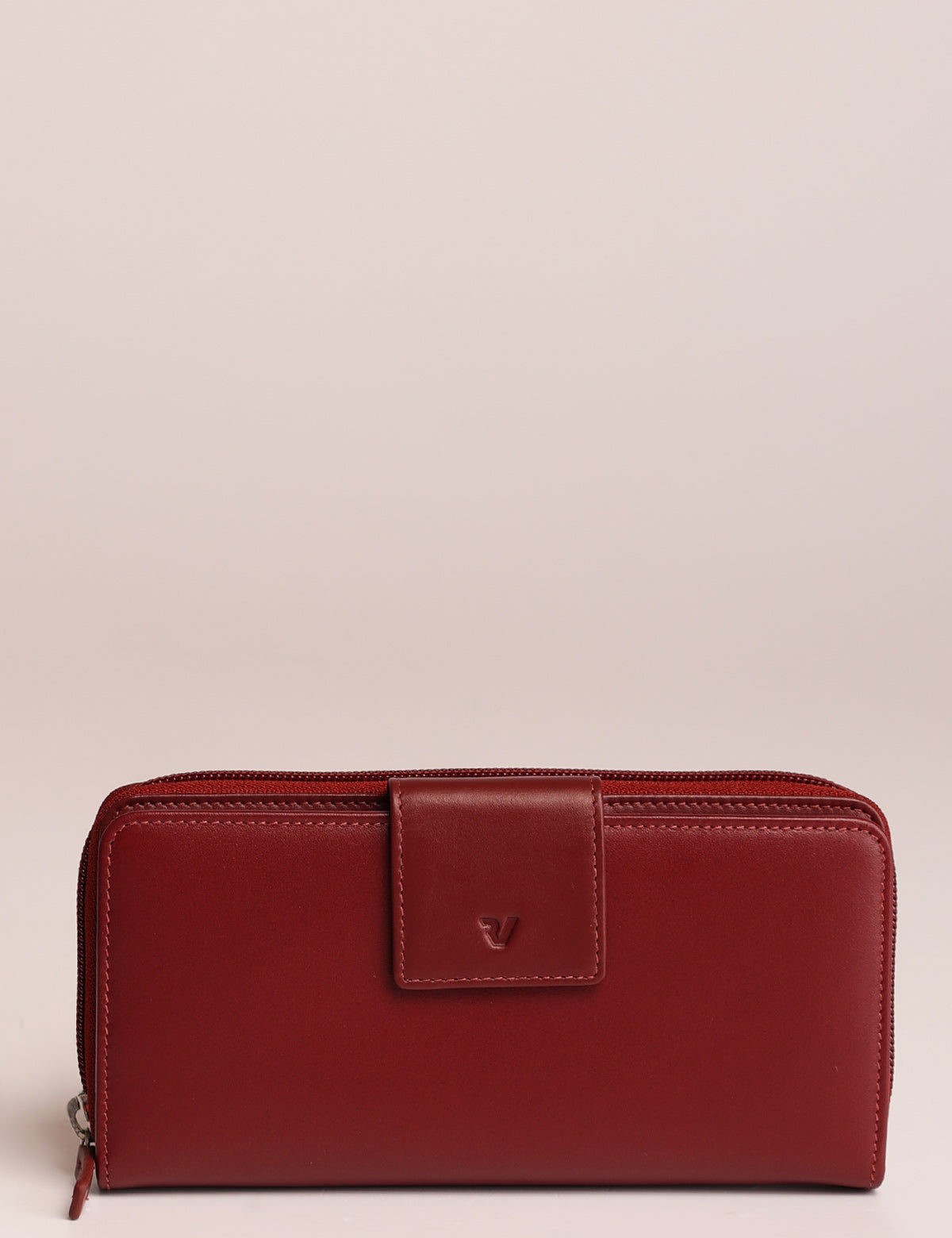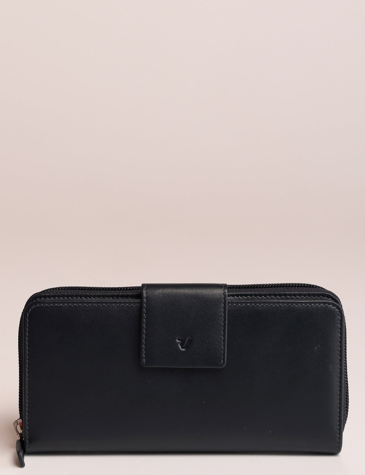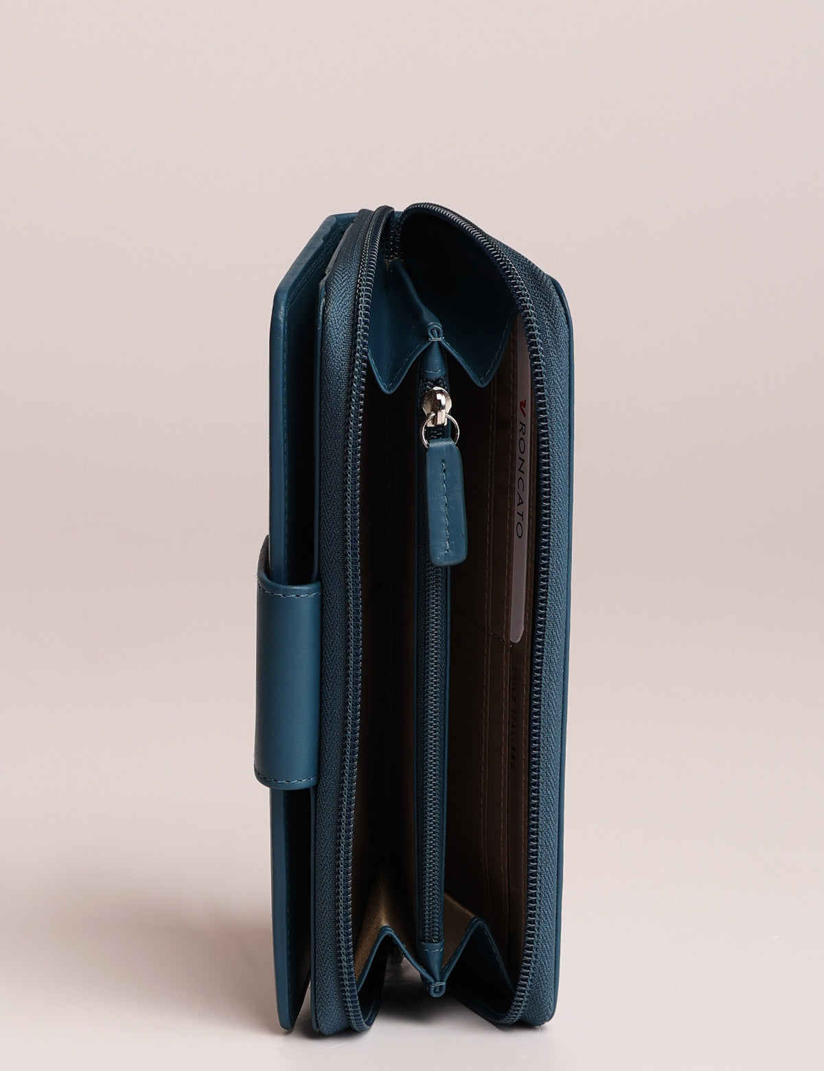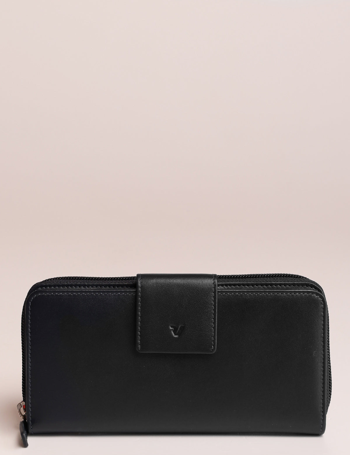Roncato women's long wallet with front flap and zip closure. RFID anti-fraud protection system.