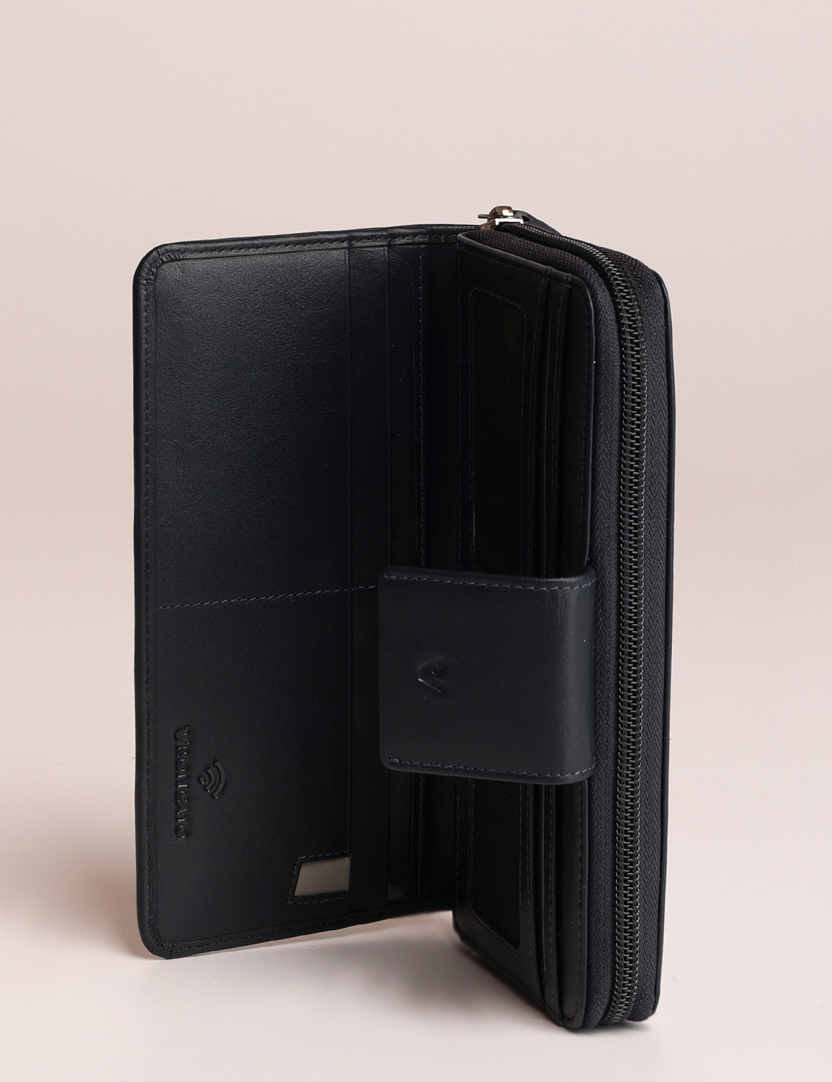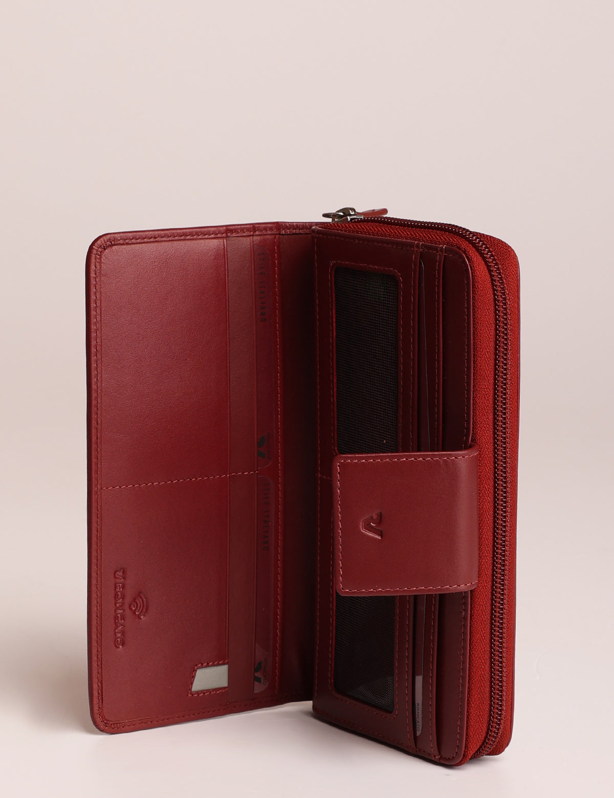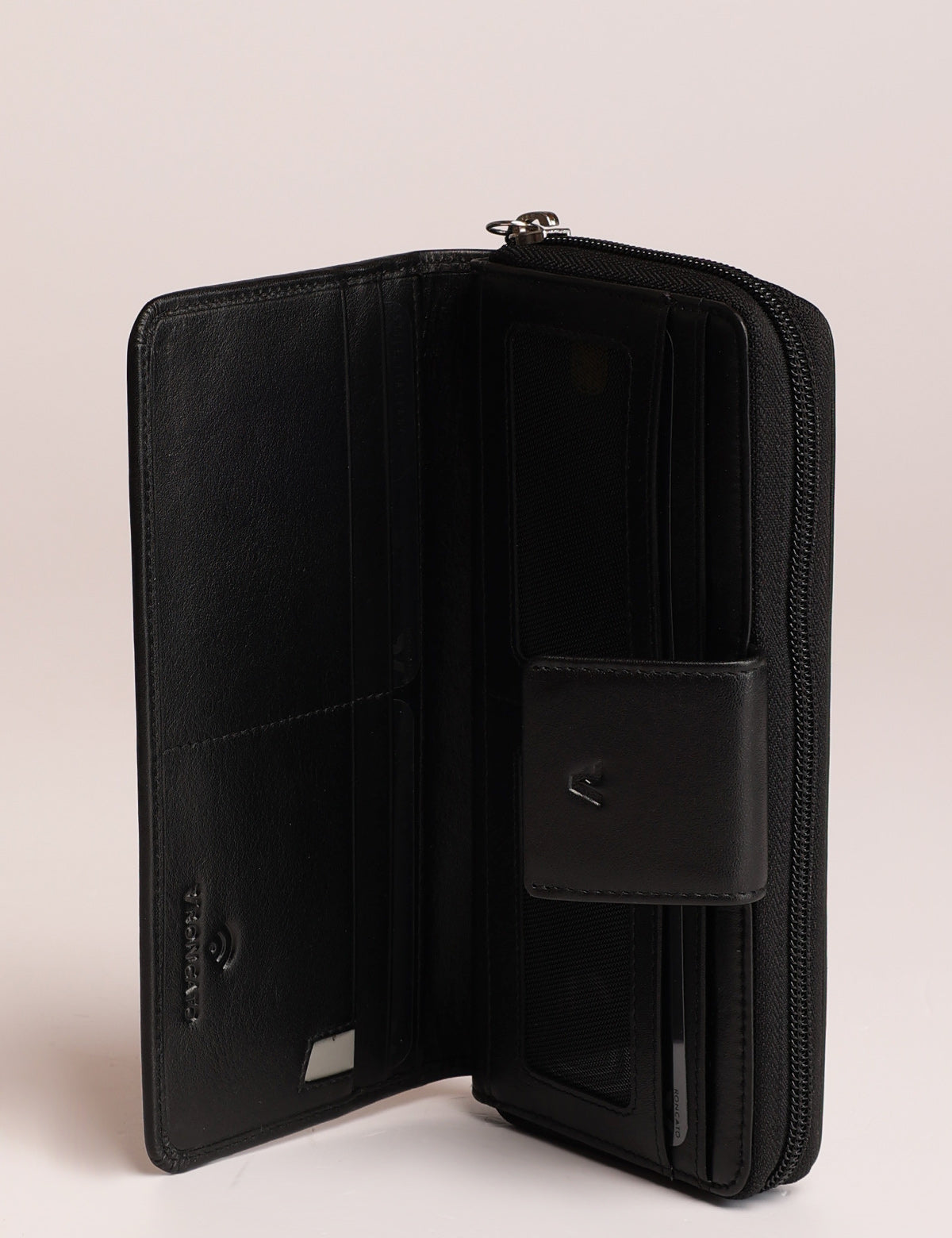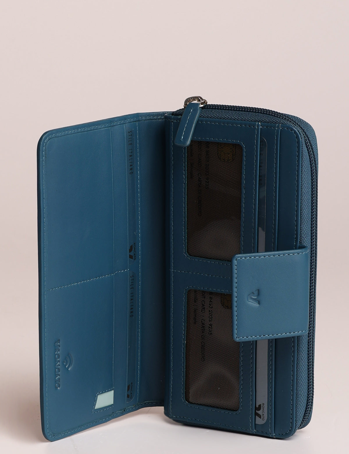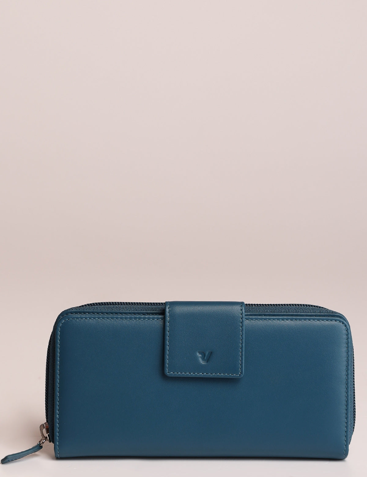 Roncato women's long wallet with front flap and zip closure. RFID anti-fraud protection system.