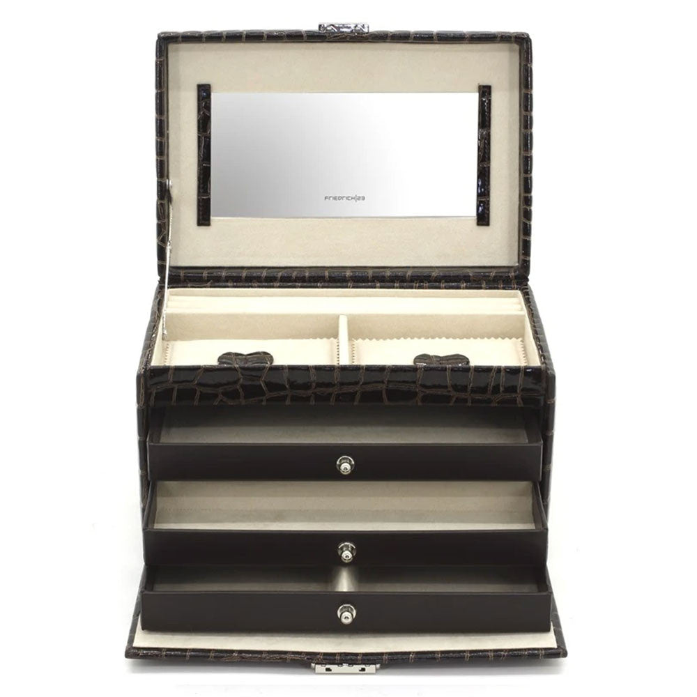 Friedrich23 jewelry box suitable for travel thanks to the top handle and multiple compartments to neatly store your jewelry