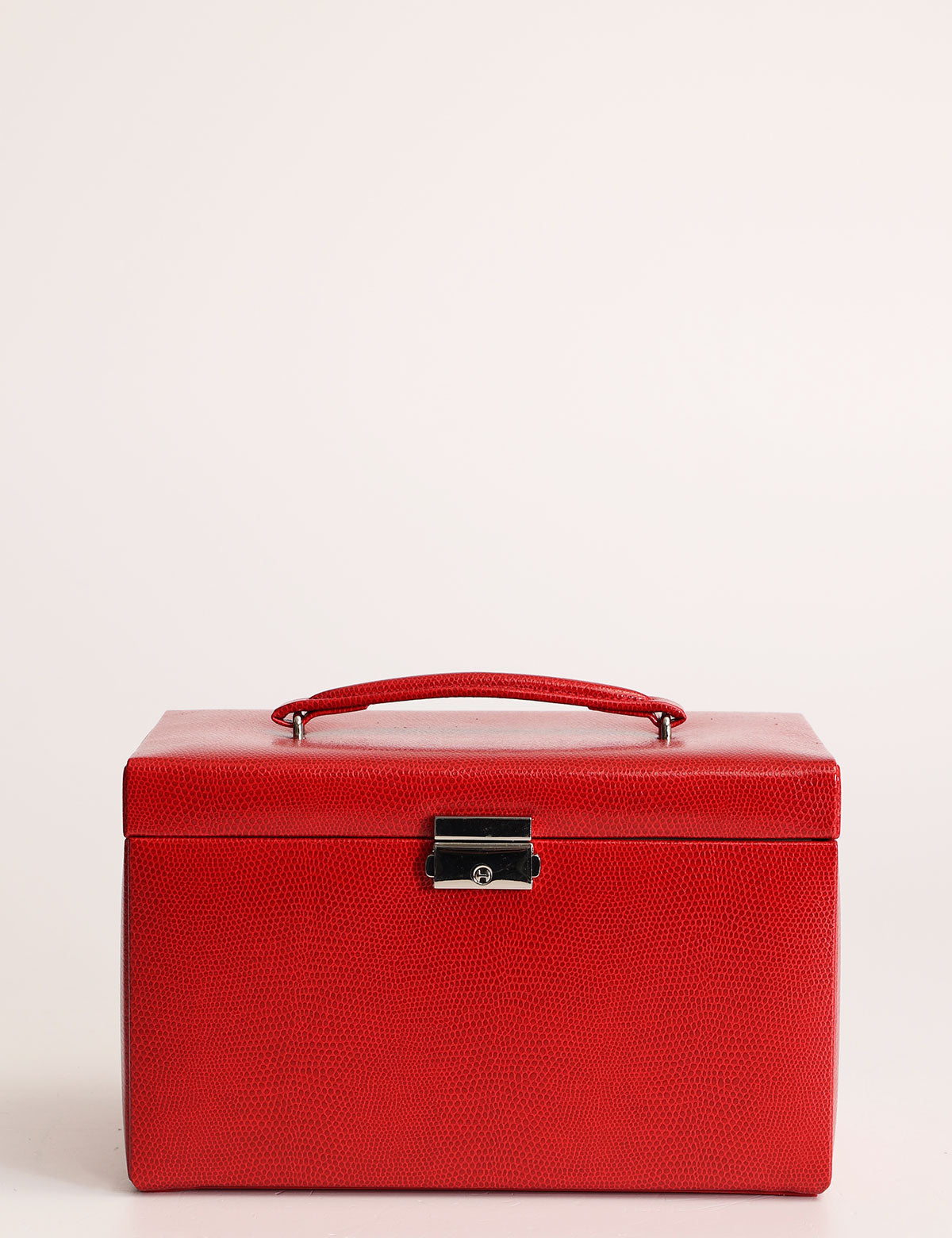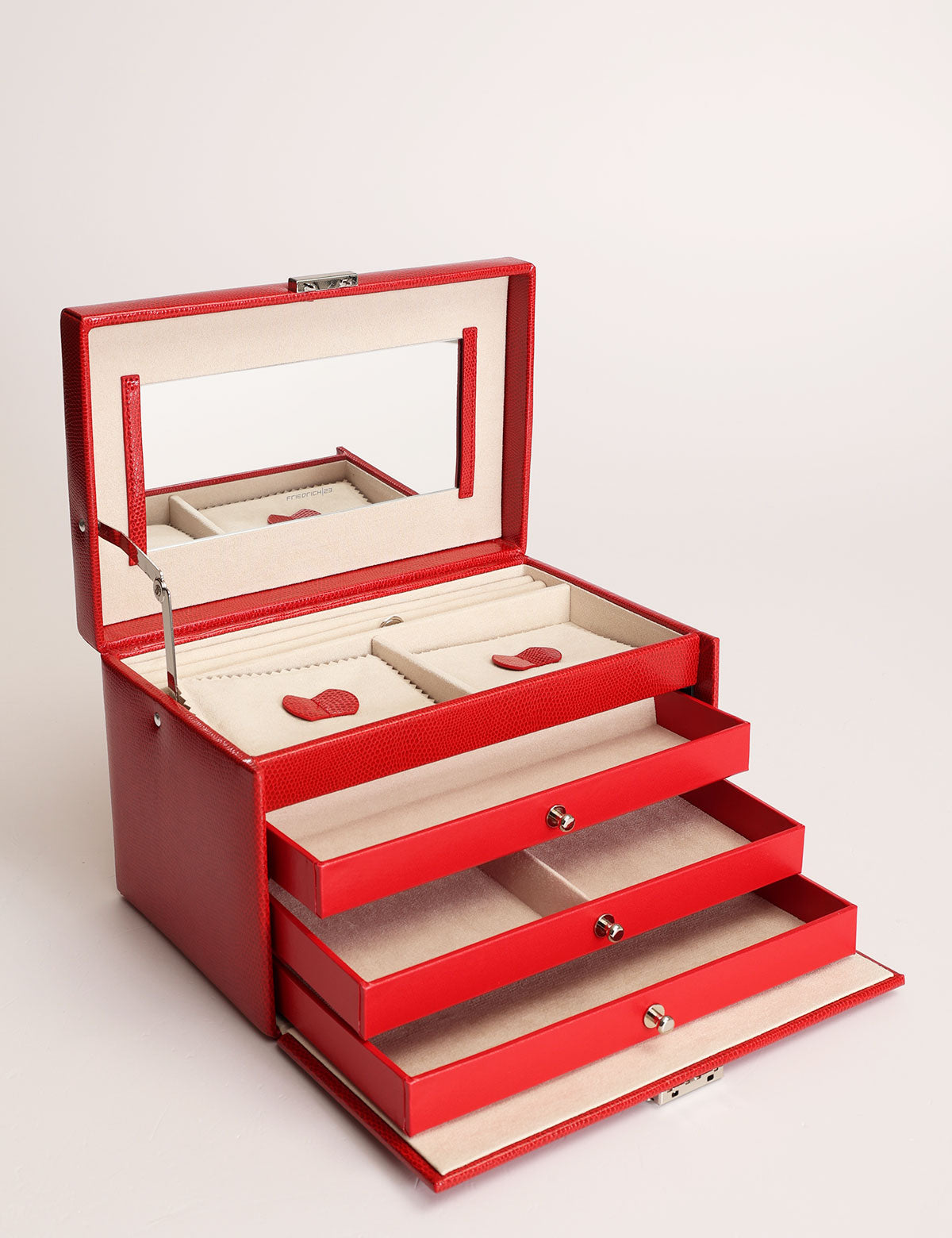 Friedrich23 jewelry box with elegant red python print combined with silver-colored chrome hardware