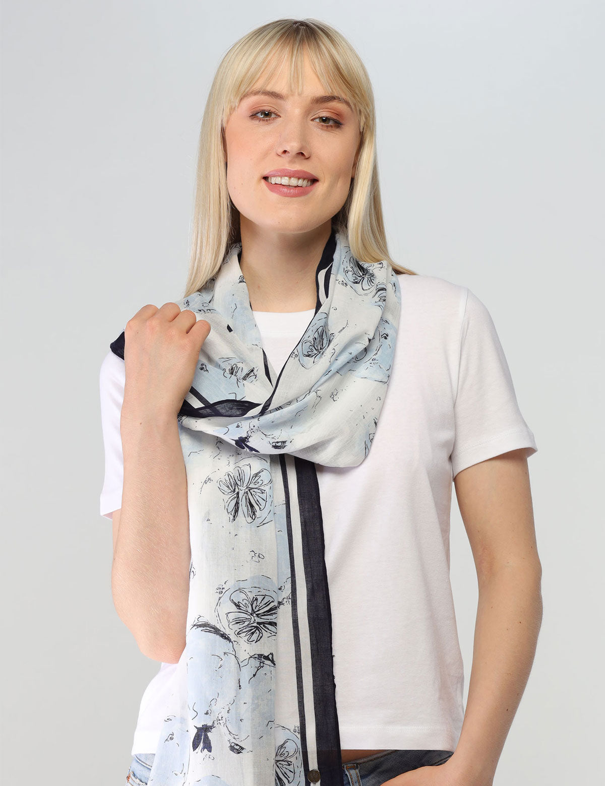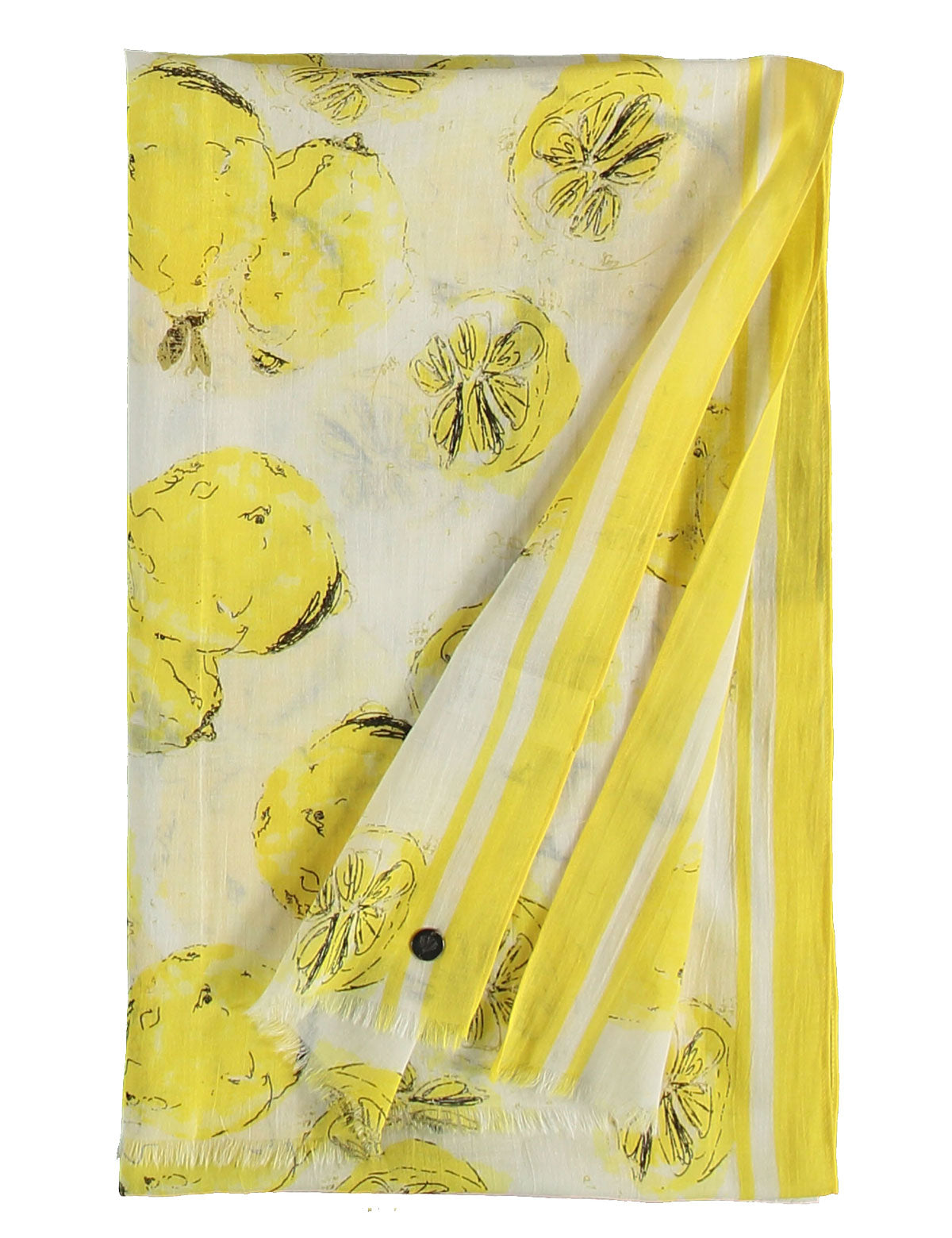 Fraas women's scarf made of cotton with lemon print, slightly frayed edges. Dimensions 50x180 cm