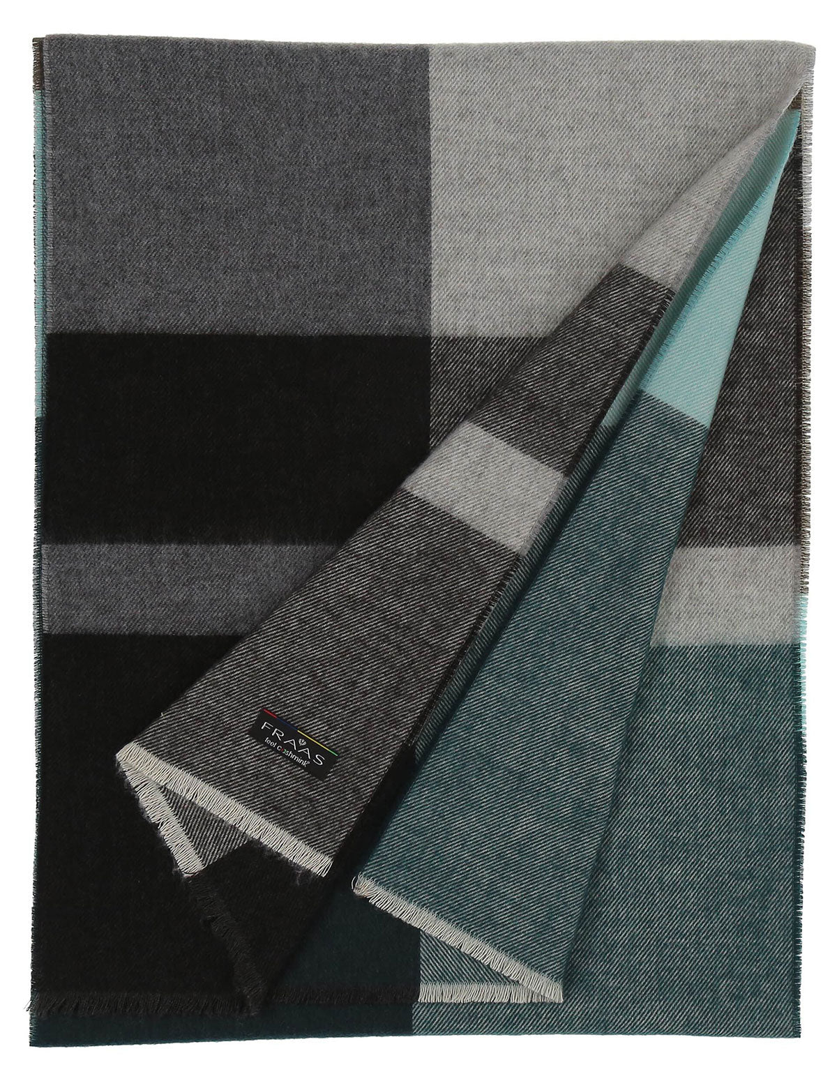 Fraas scarf with block and scrisce print made of hypoallergenic, water-repellent, soft and sustainable Cashmink®