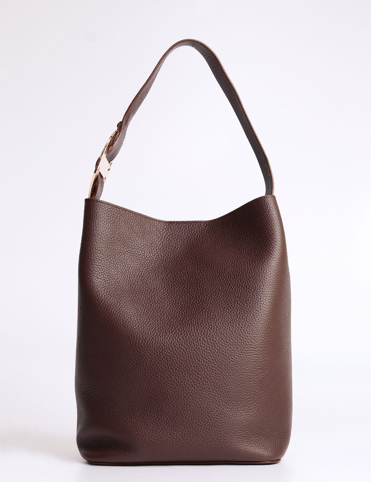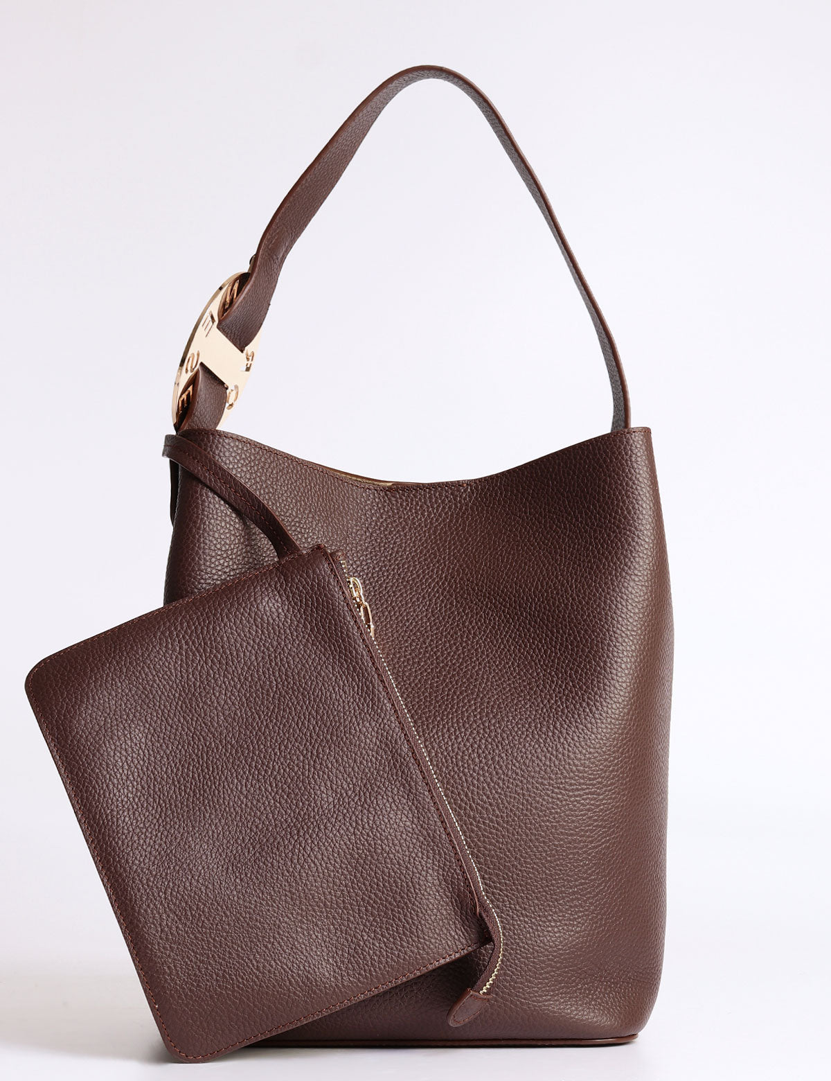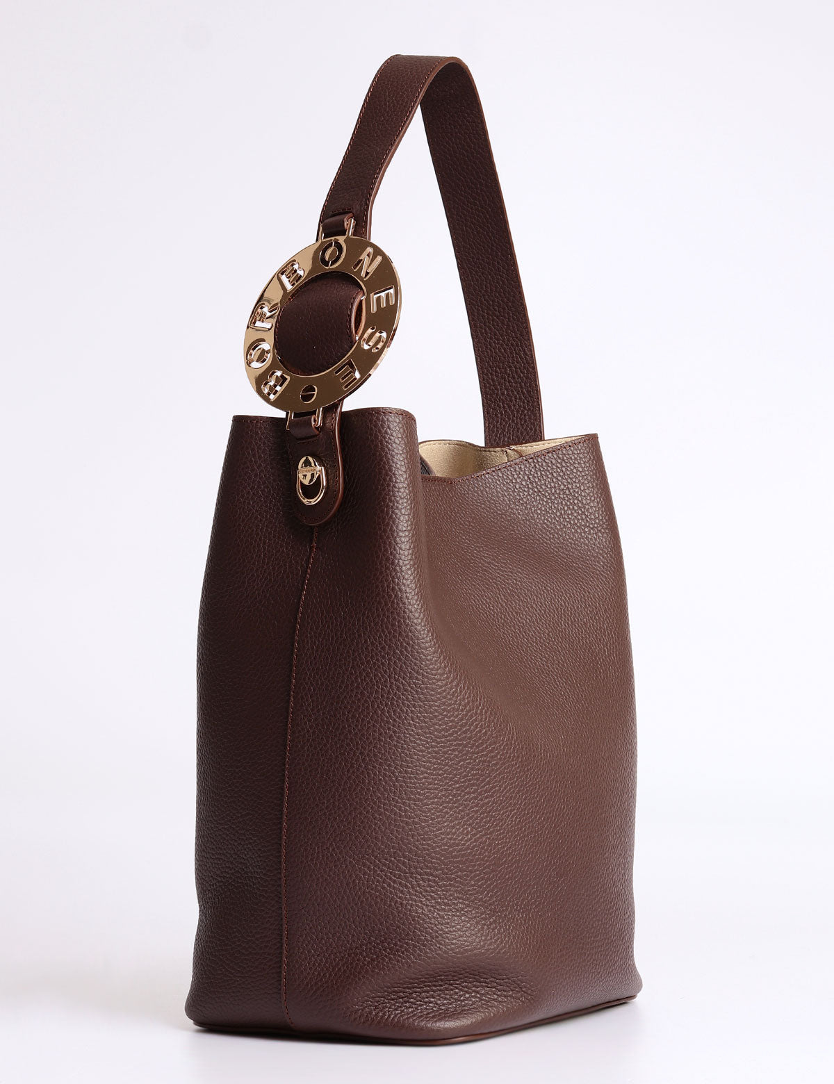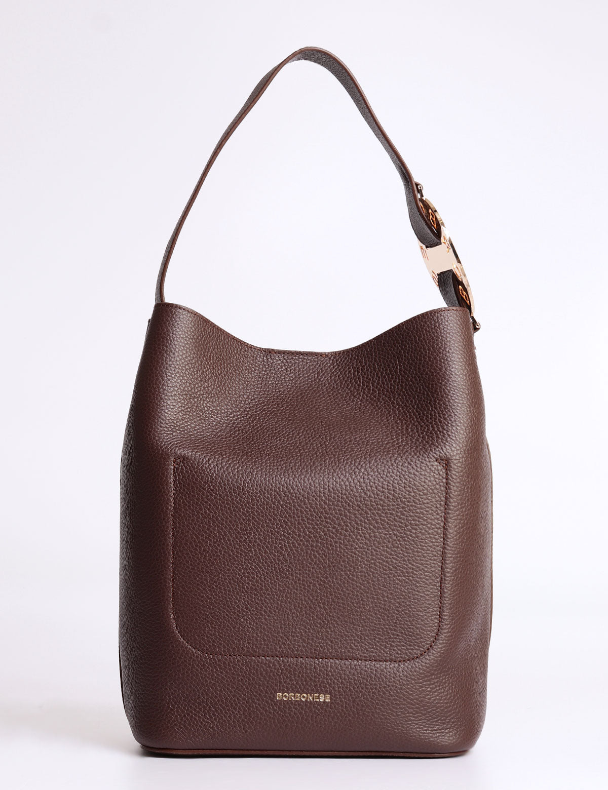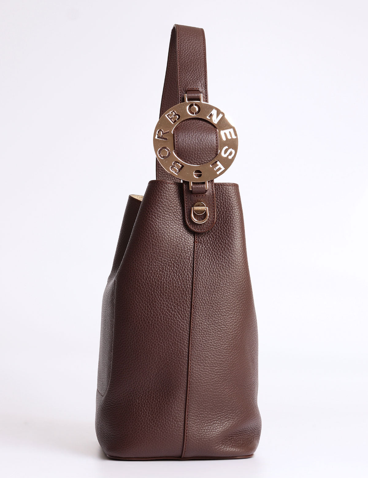 Borbonese women's bag, bucket model with single shoulder strap and internal clutch, made of leather from the La Granda breeders' consortium. Maxi-detail with logo on the side