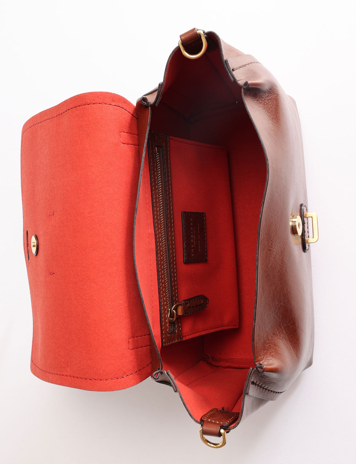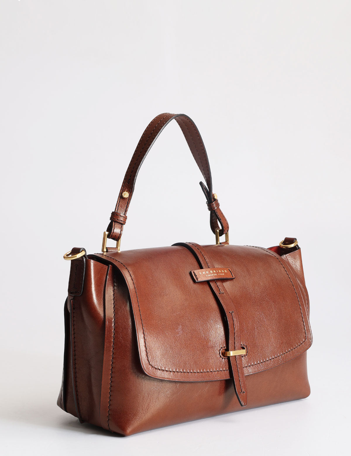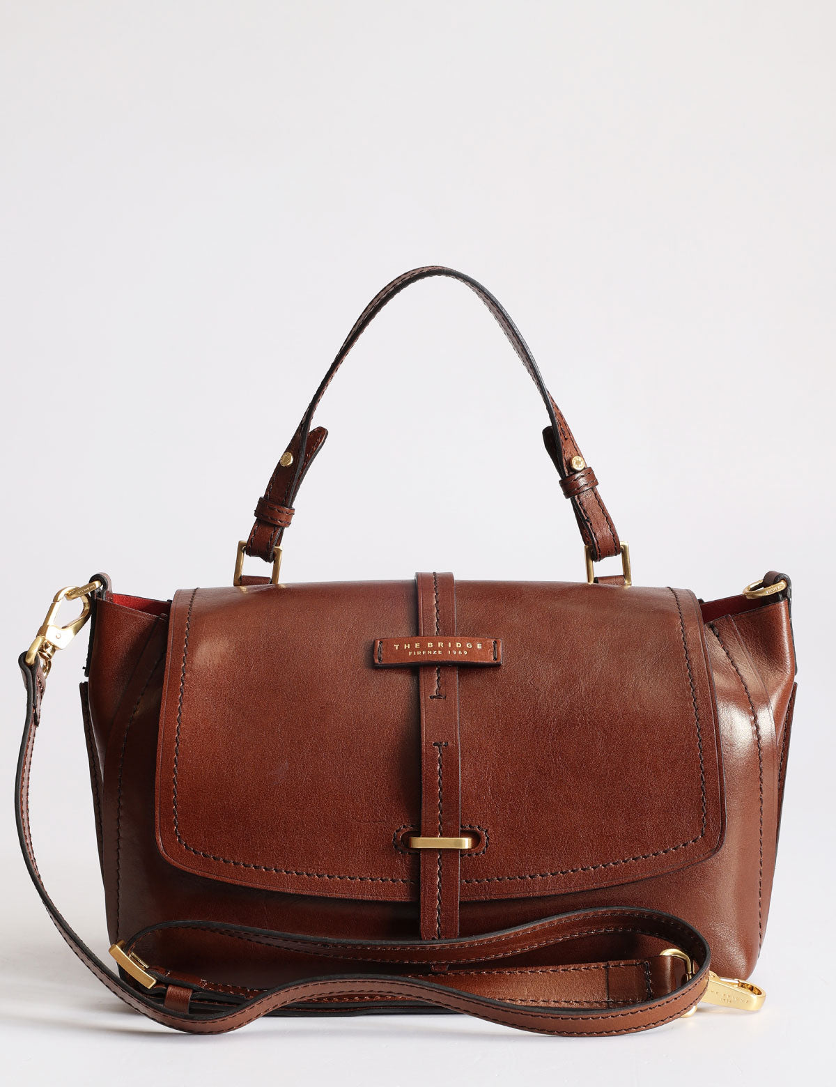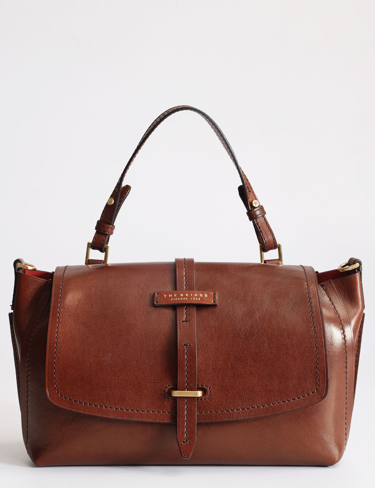 Raised stitching and brass details emphasize the natural beauty of the leather in the Florentin line of The Bridge bags.