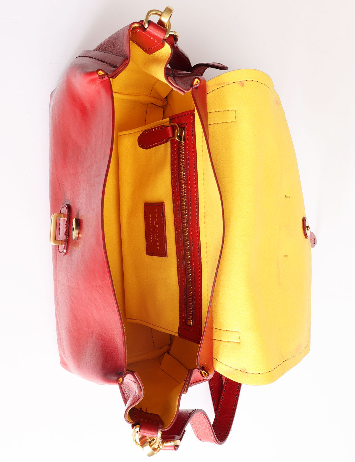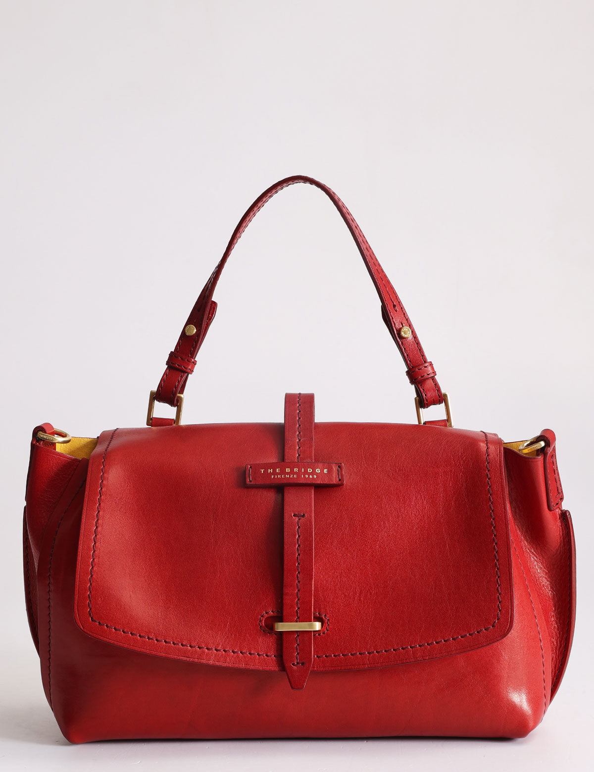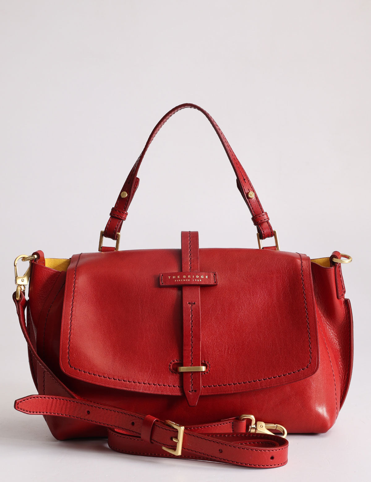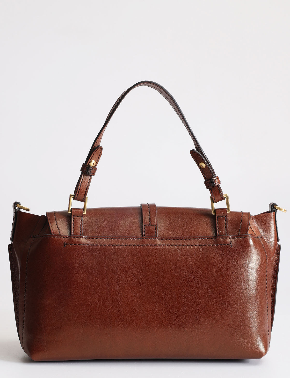 Raised stitching and brass details emphasize the natural beauty of the leather in the Florentin line of The Bridge bags.