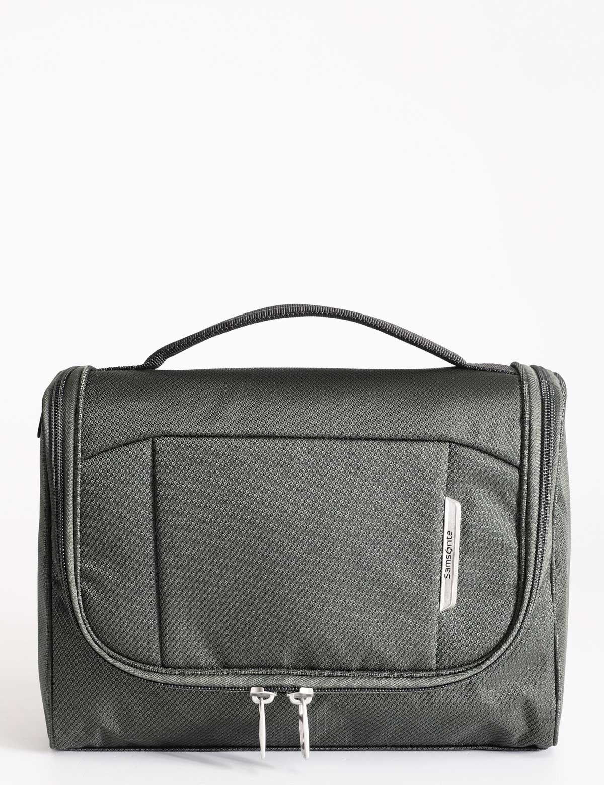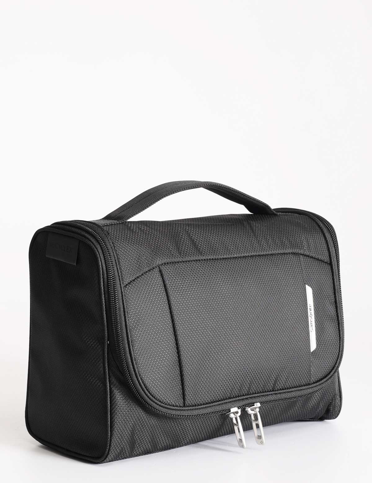 Samsonite travel toiletry bag with practical top handle and internal hook to hang on any surface. Made of 100% Recyclex