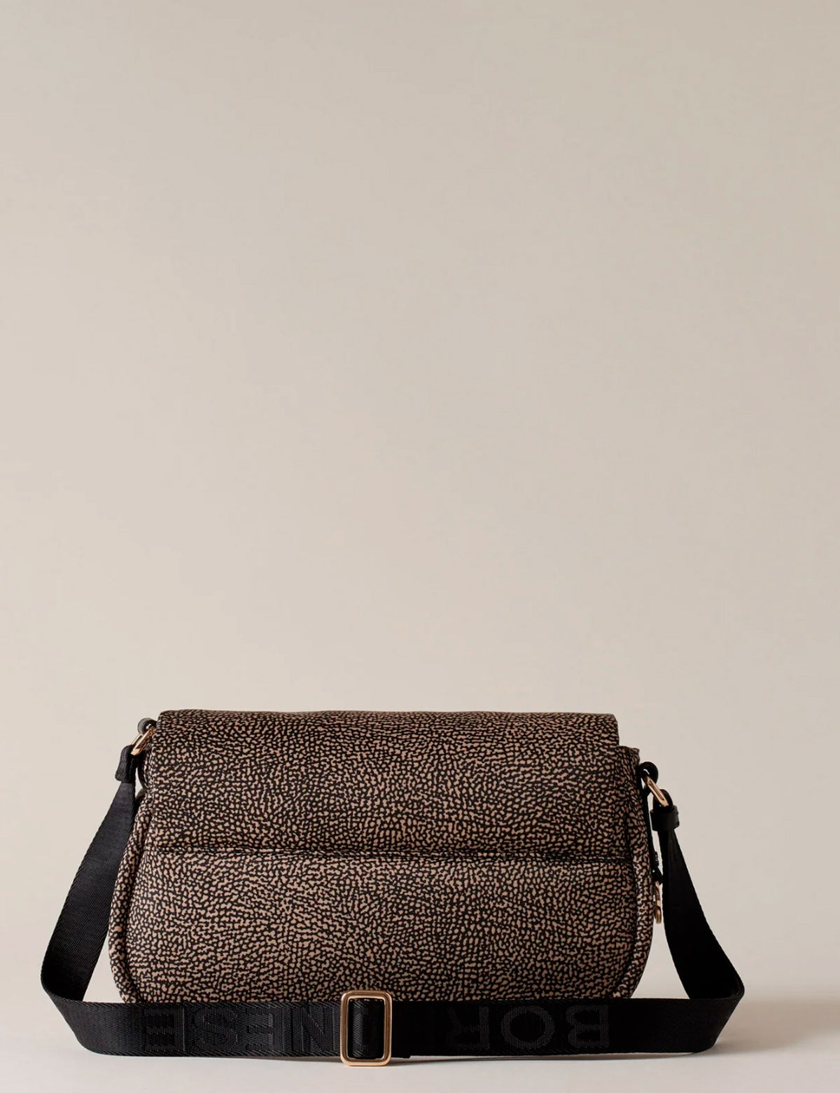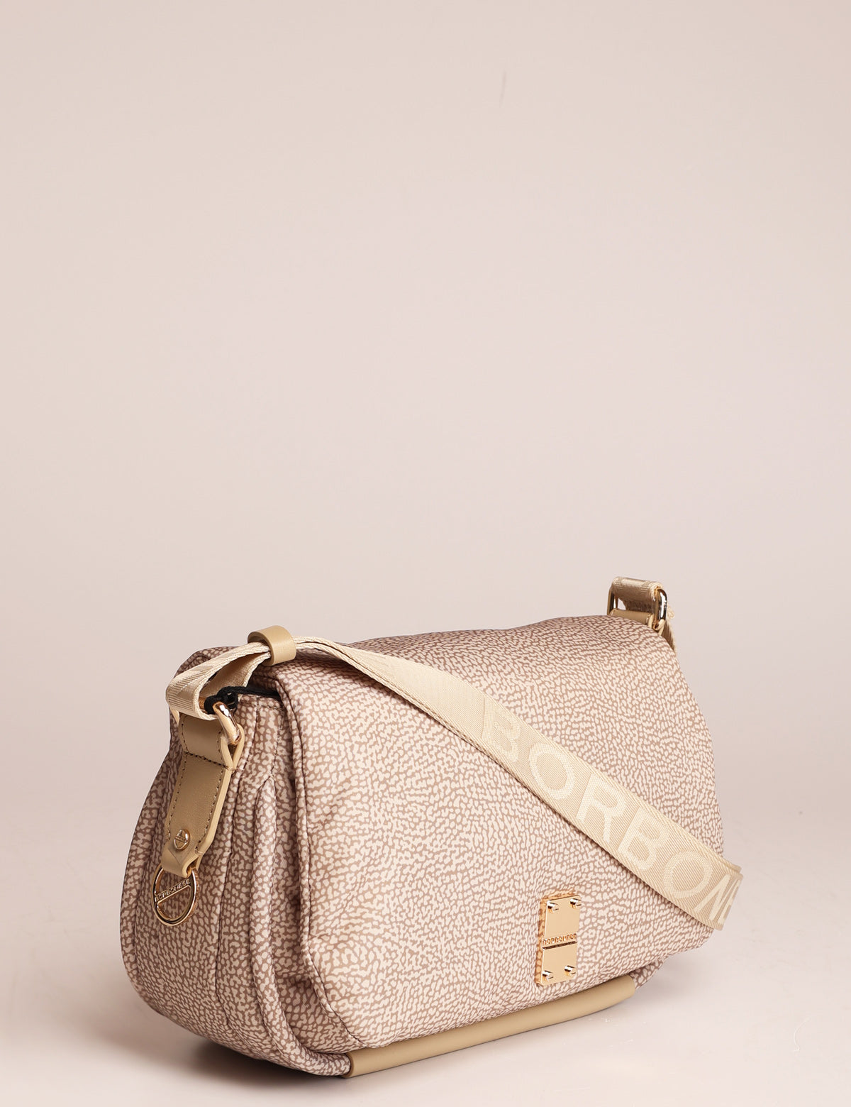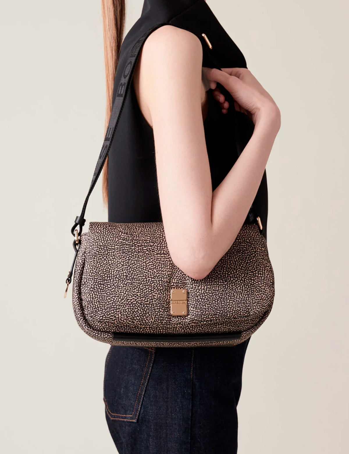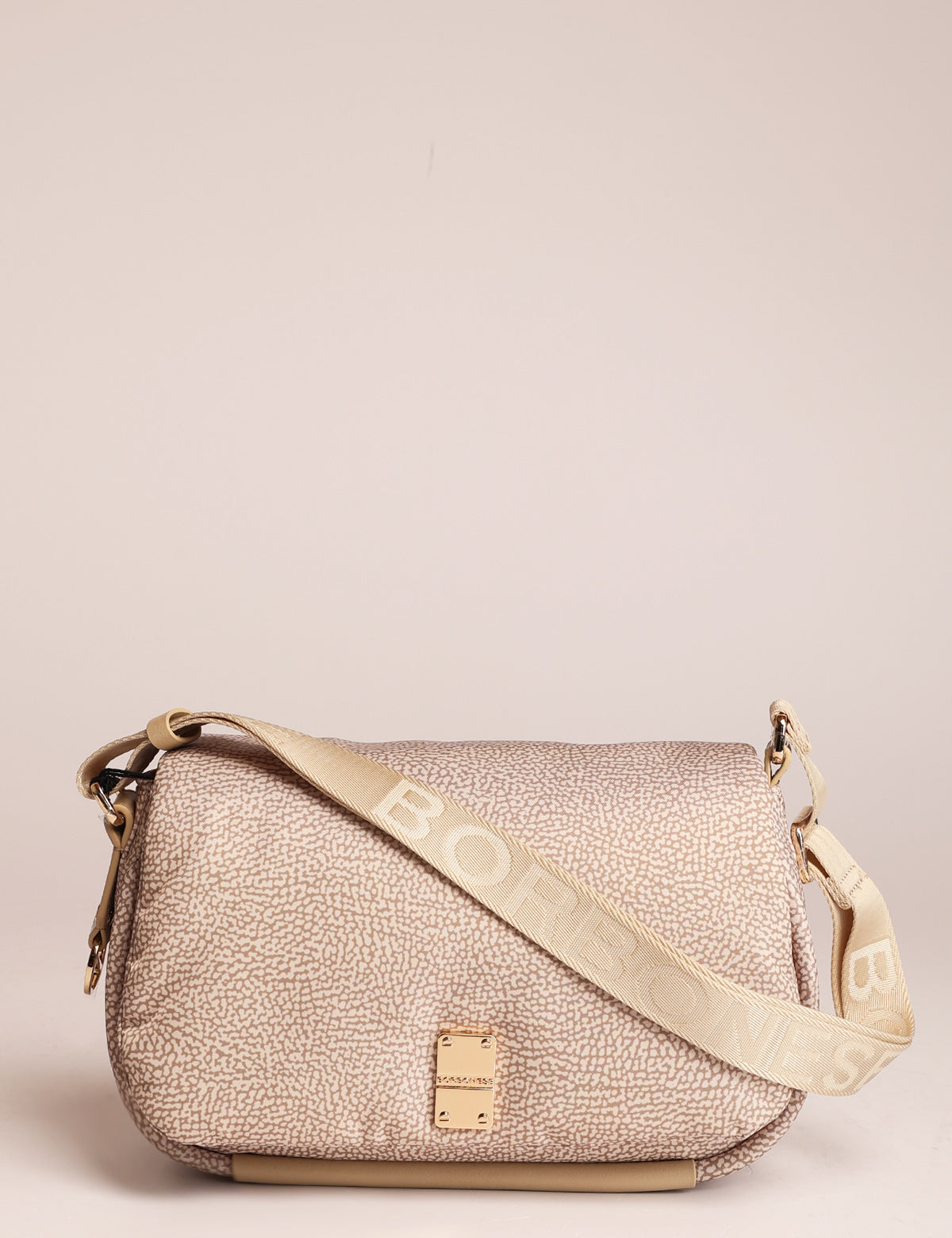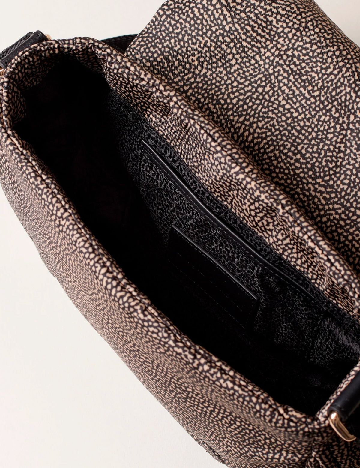 Borbonese women's shoulder bag with front flap made of recycled fabric with OP print