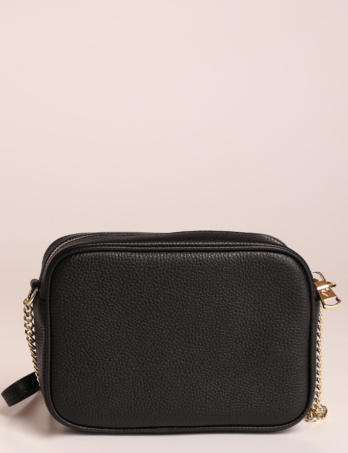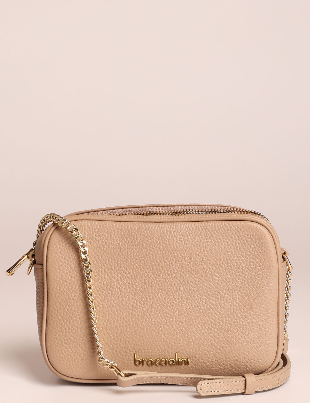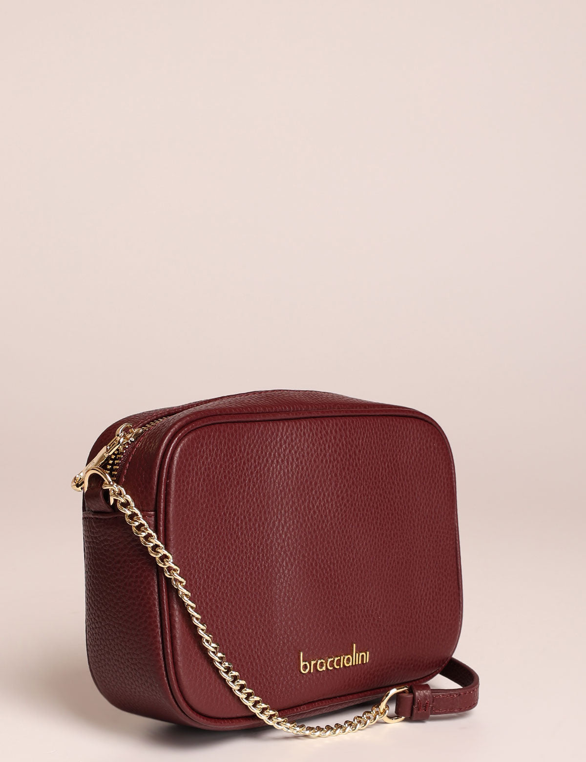 Borsa da donna Braccialini modello camera bag con tracolla dettaglio catena, borsa in pelle con dettagli color oro