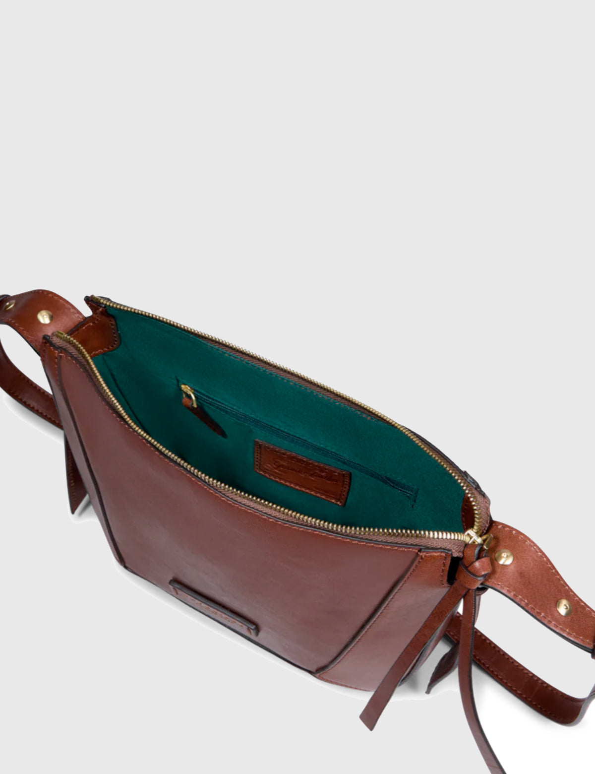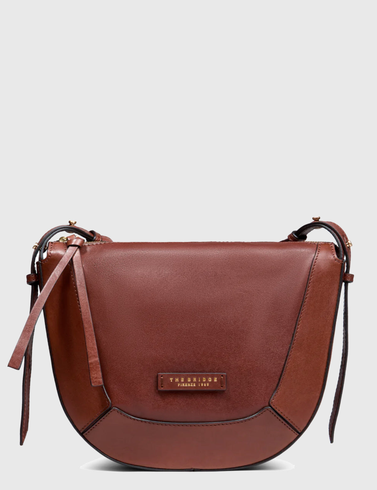 The Bridge women's shoulder bag with a particular structured crescent design with brass details