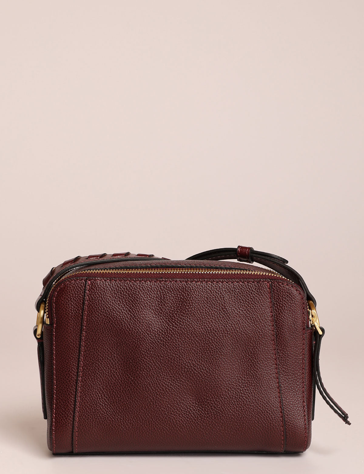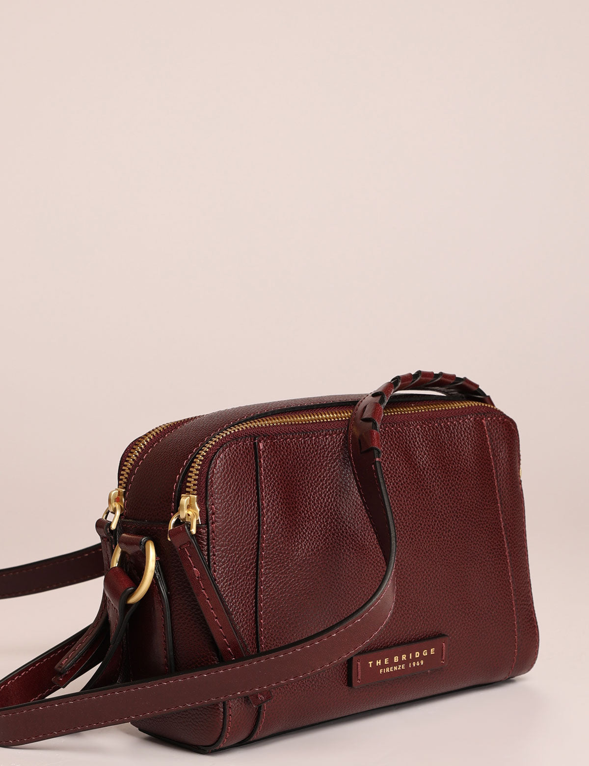 The Bridge women's shoulder bag, camera bag model, with double zip closure, made of hammered leather with interwoven details.
