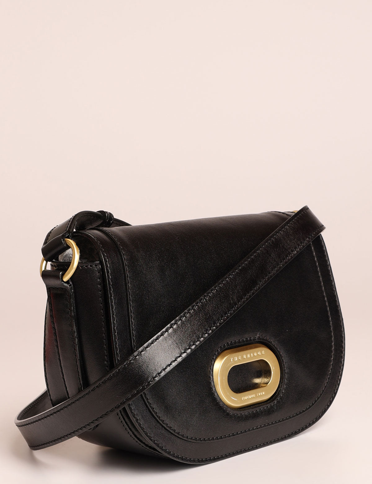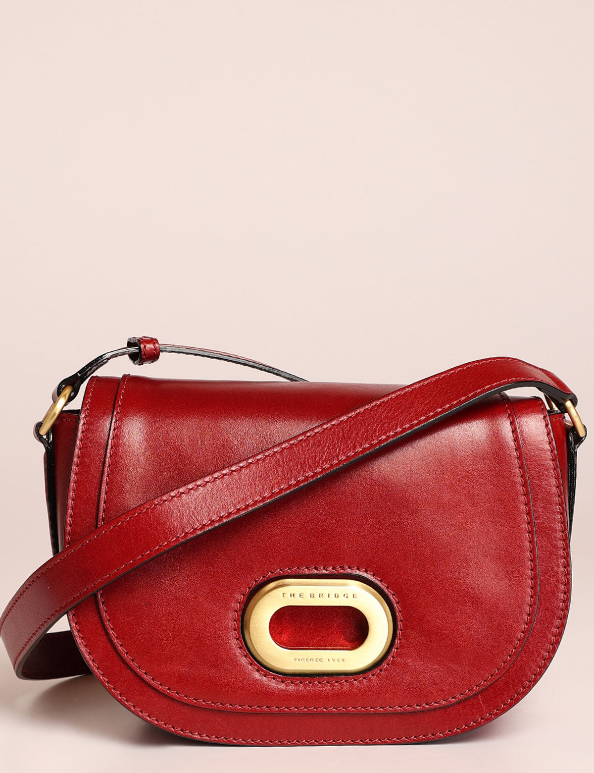 The Bridge women's leather shoulder bag with front flap and brass metal detail