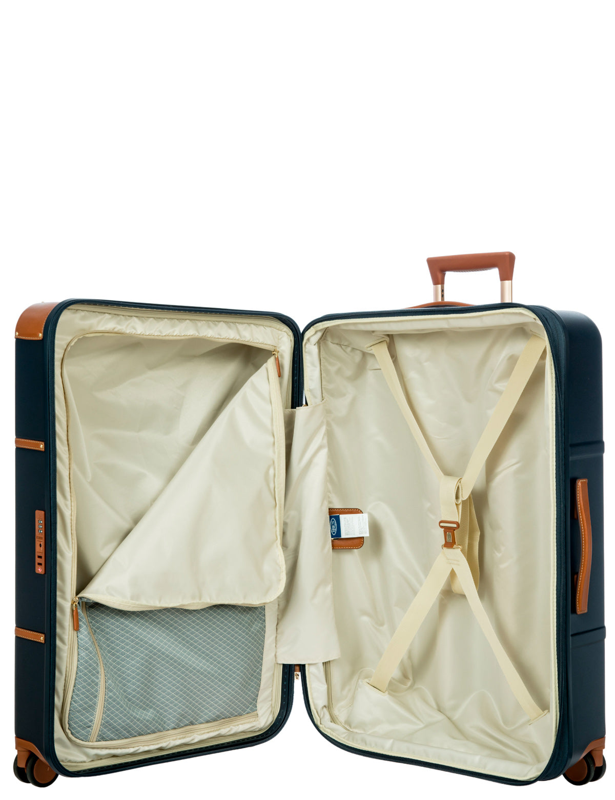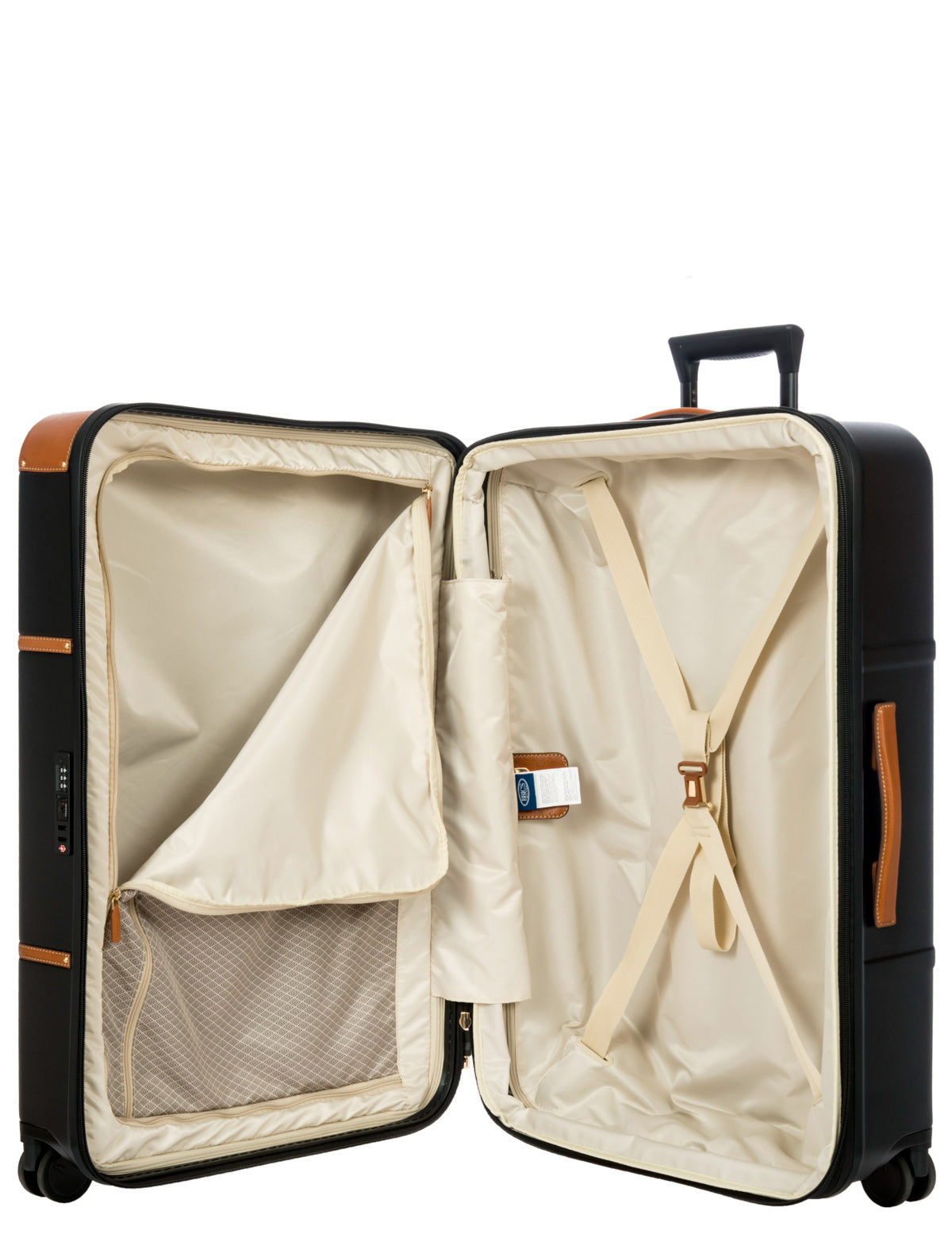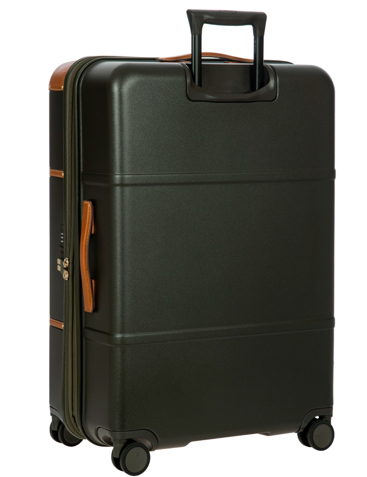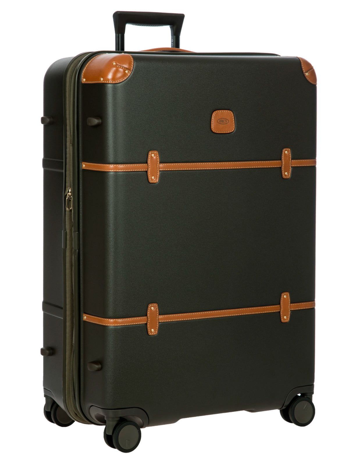 Bric's suitcase large model 76 cm with zip expandability. Made of recycled polycarbonate with leather details