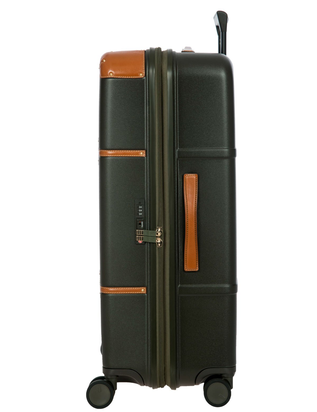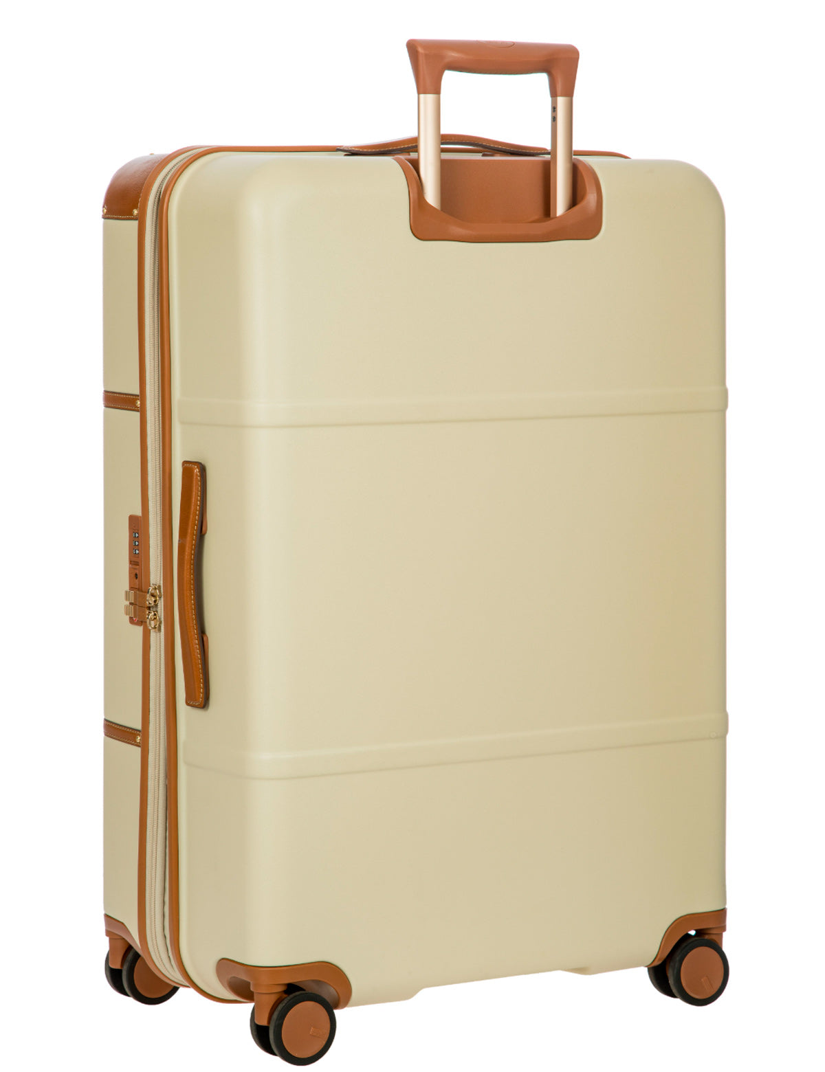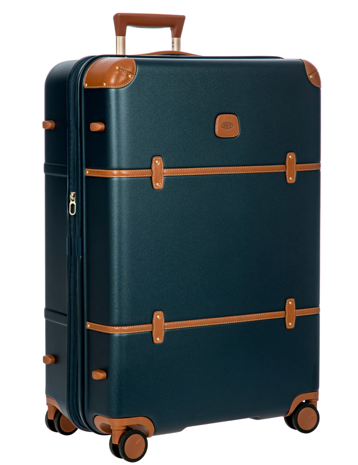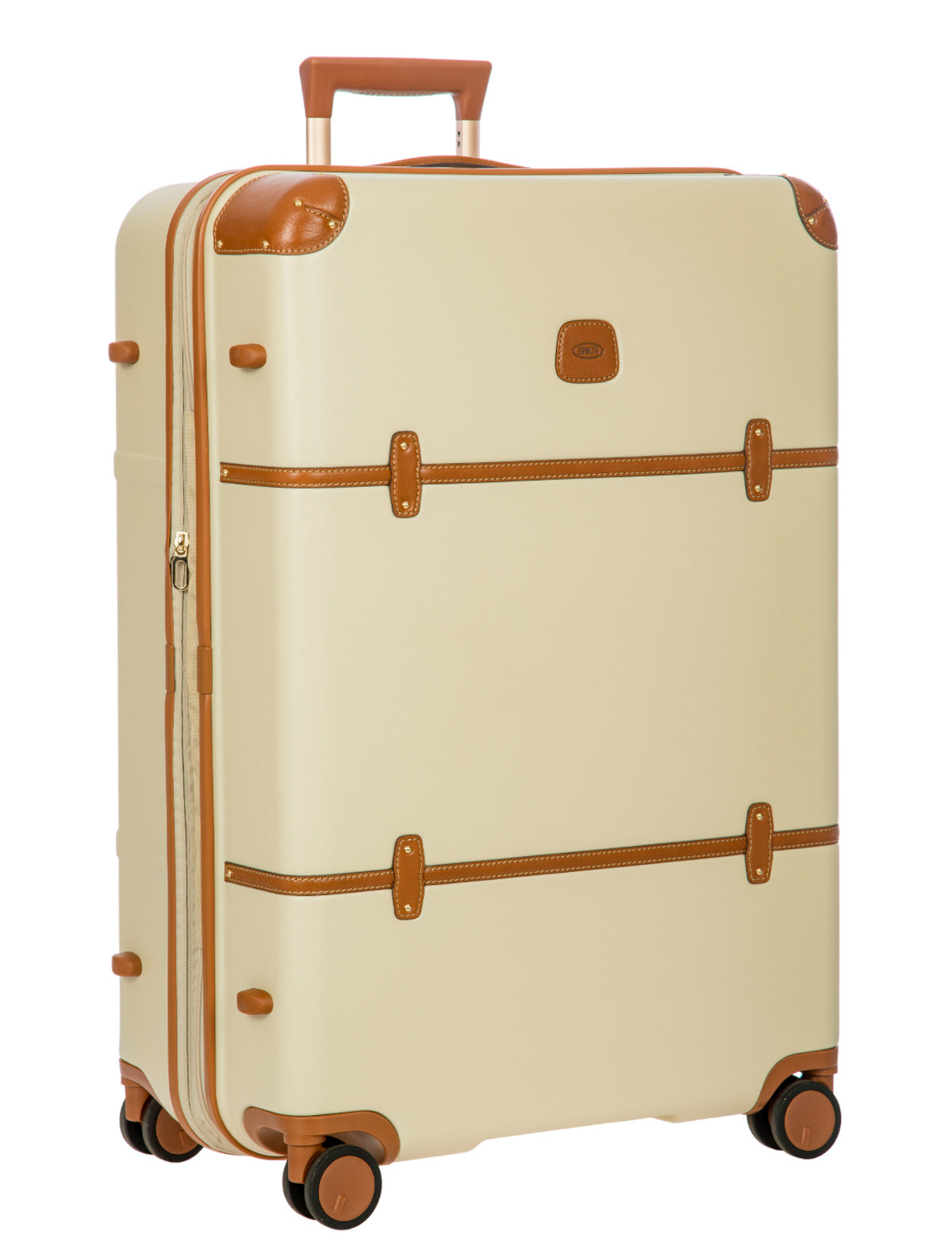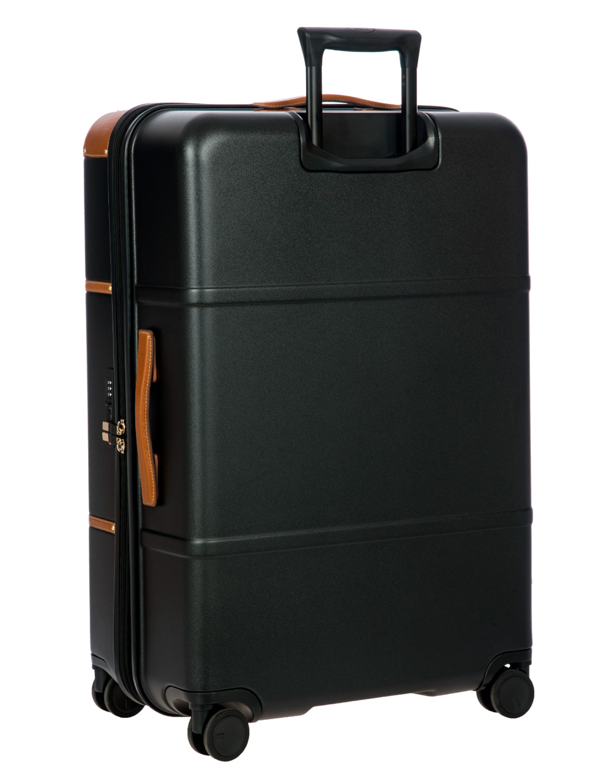 Bric's suitcase large model 76 cm with zip expandability. Made of recycled polycarbonate with leather details