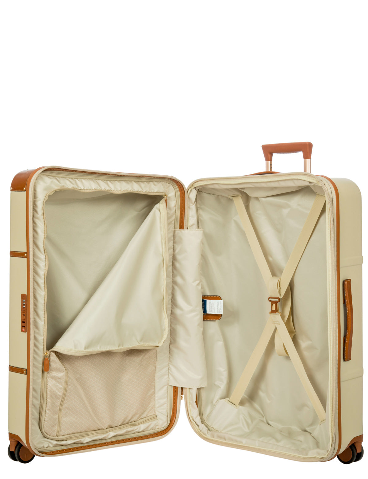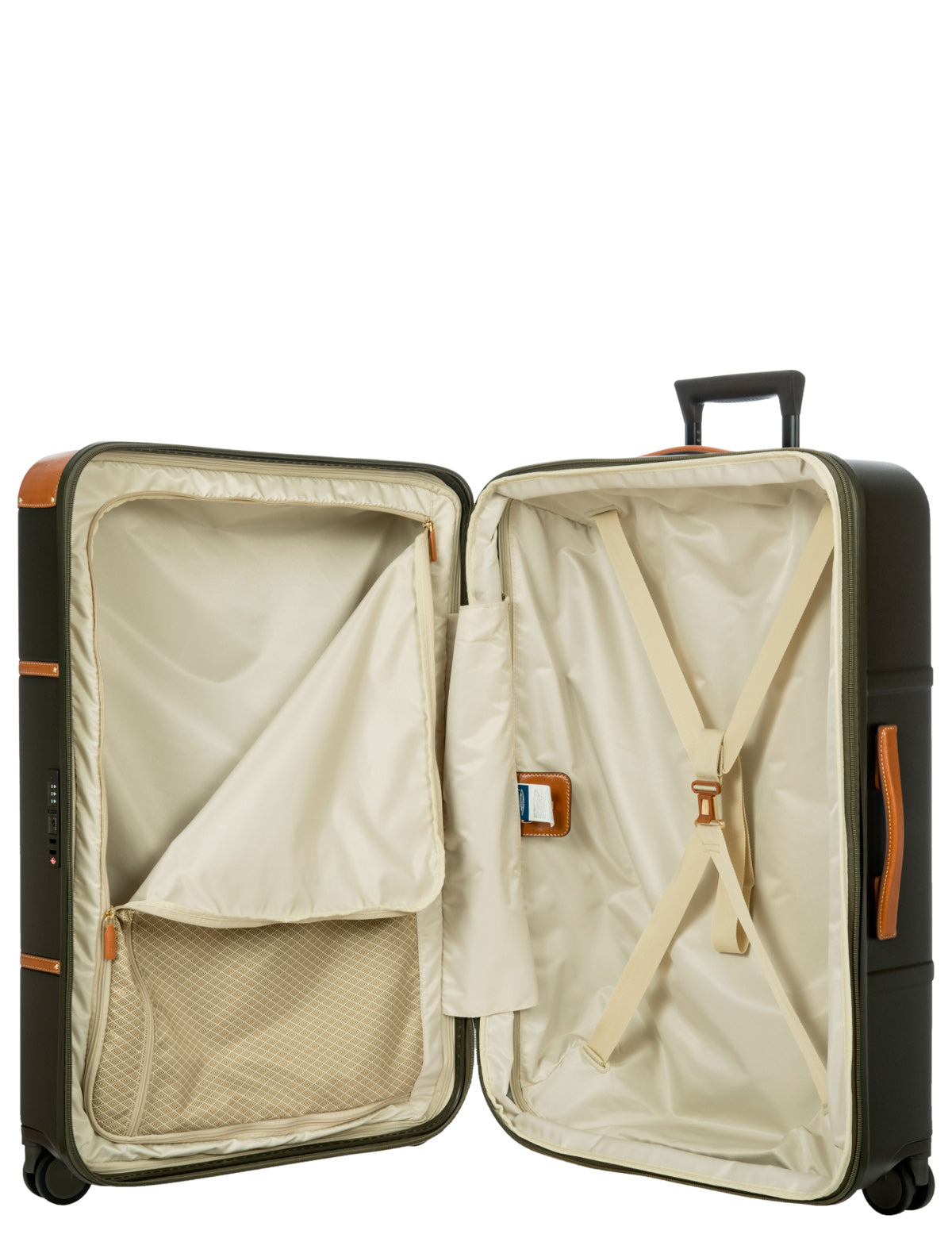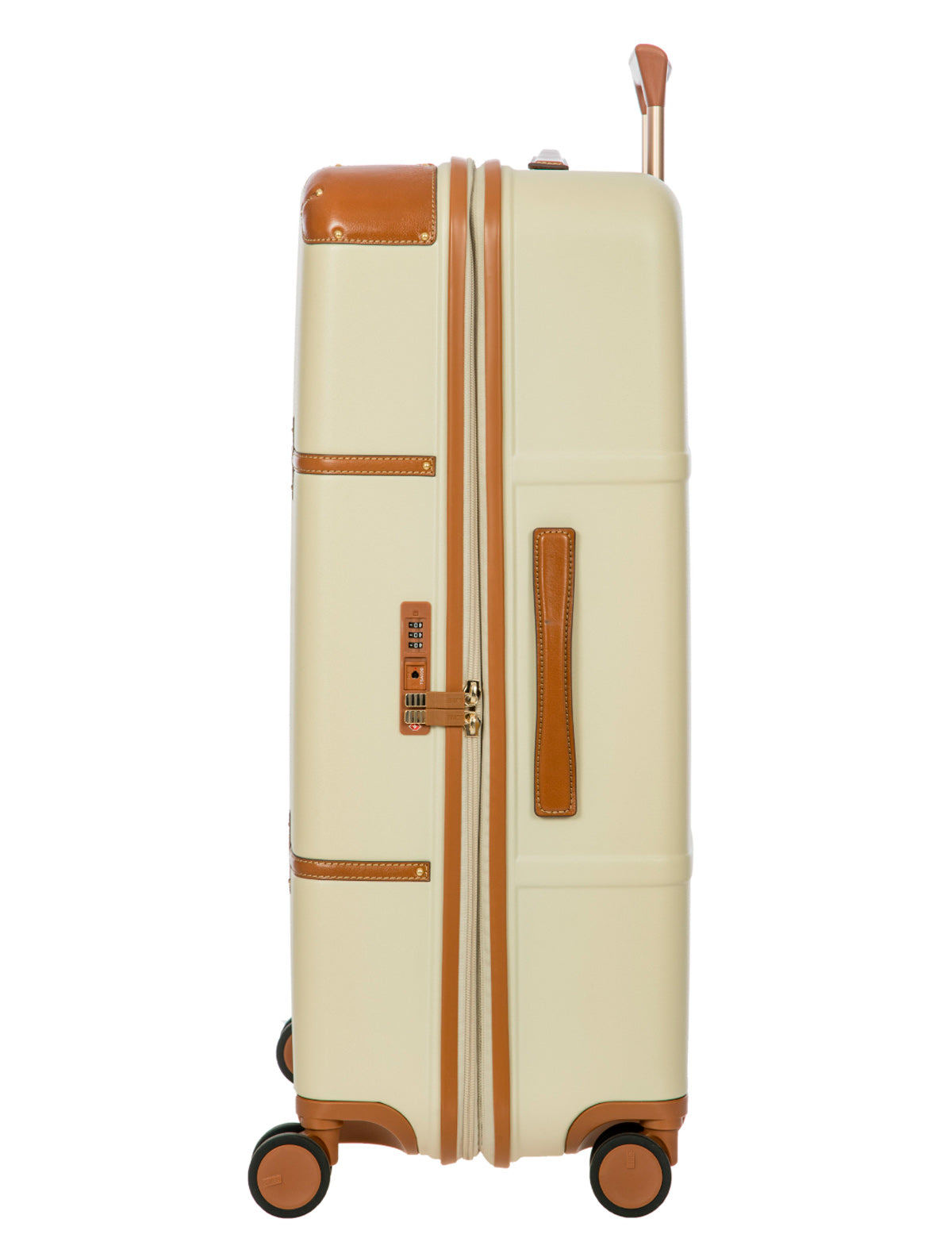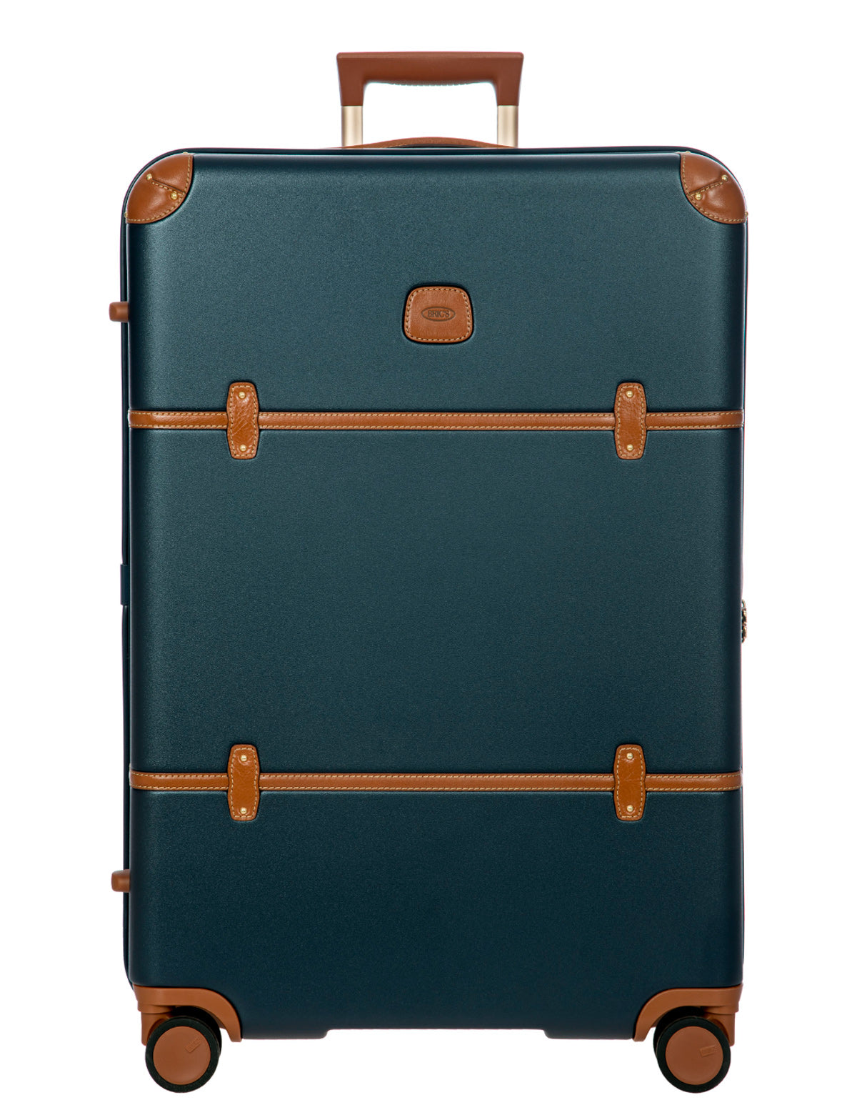 Bric's suitcase large model 76 cm with zip expandability. Made of recycled polycarbonate with leather details