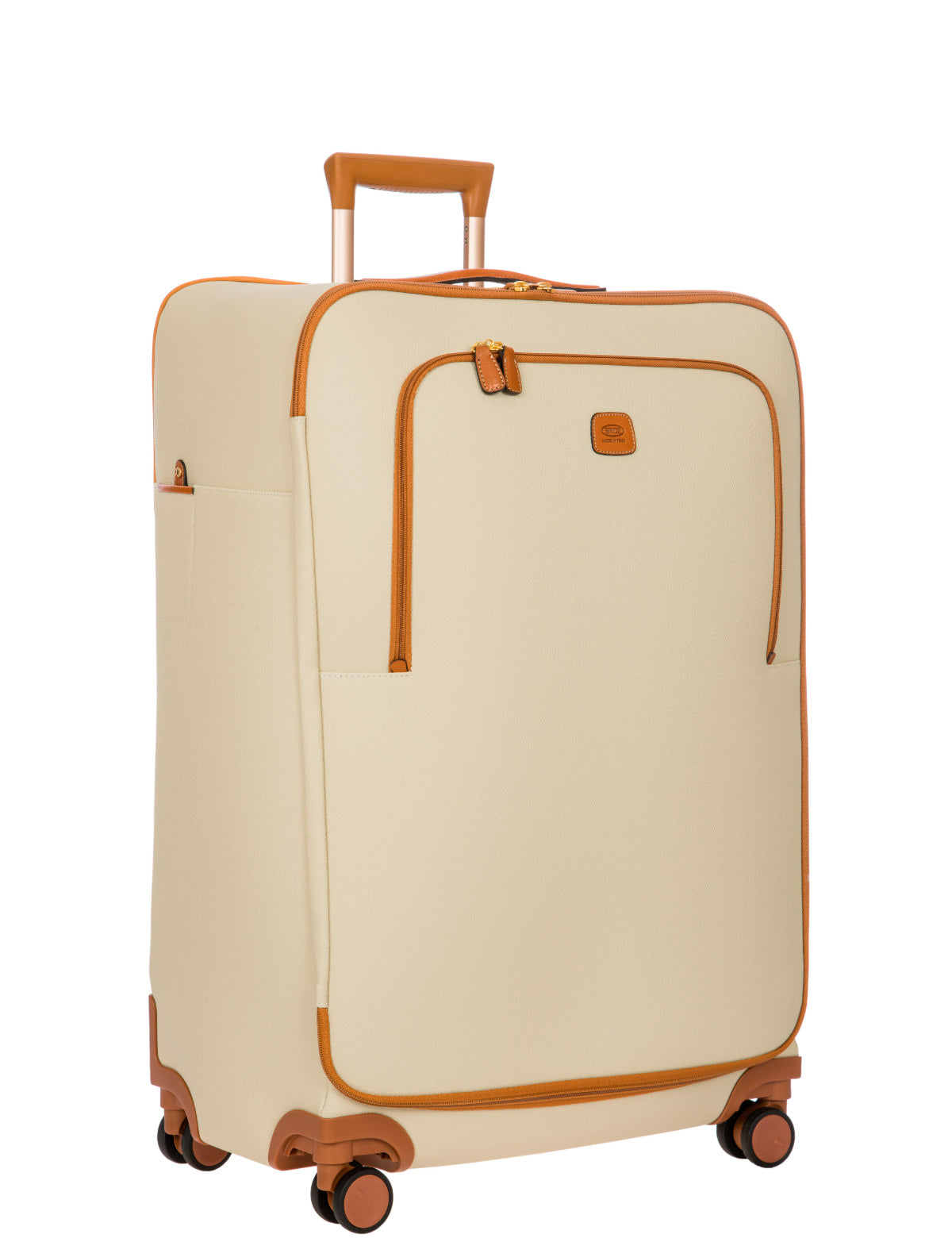 Bric's hold luggage made of embossed PVC with leather details, equipped with a practical front pocket