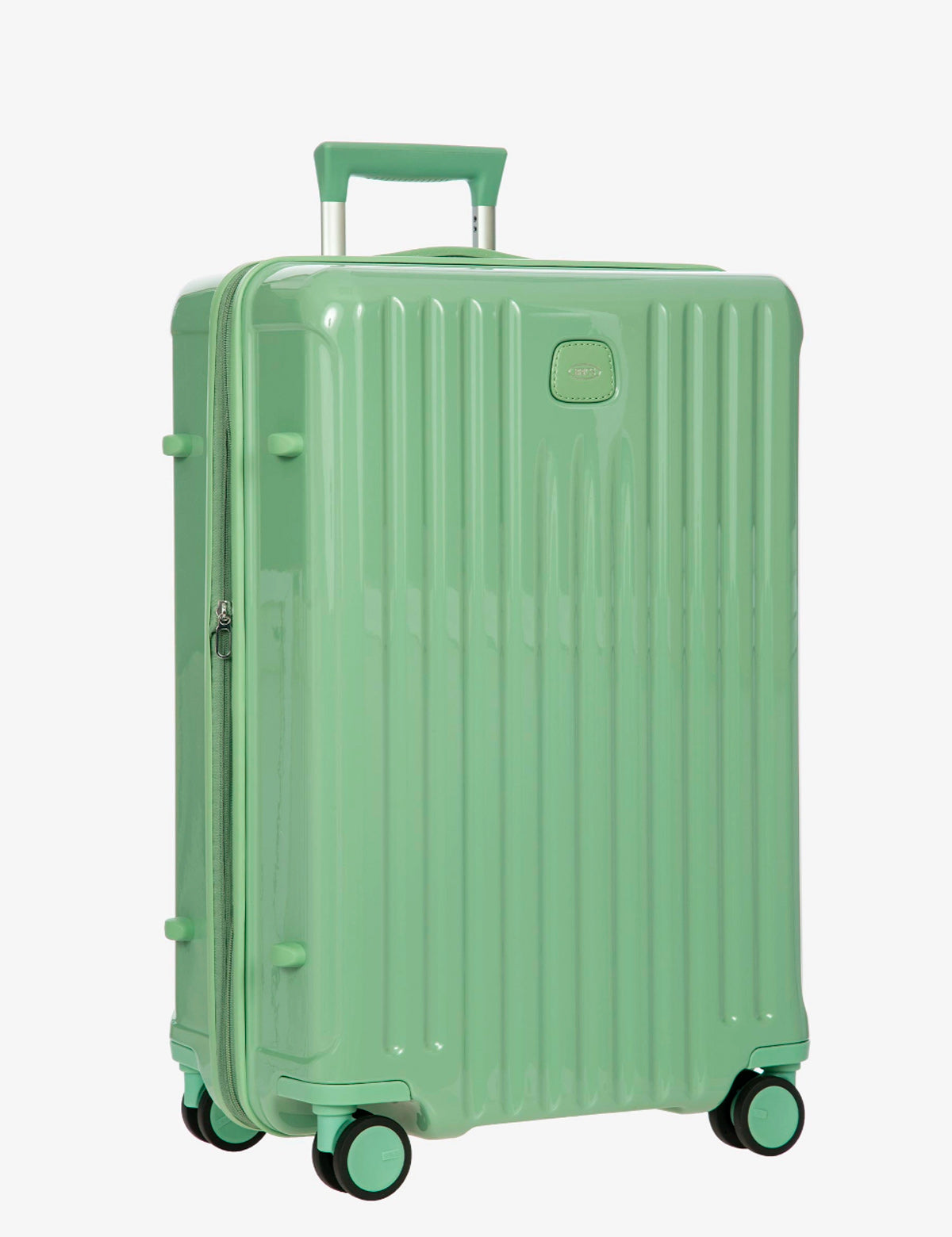 Lightweight, resistant and colourful, Bric's suitcases from the Positano line add colour to your holidays with models made from recycled polycarbonate and tone-on-tone leather details