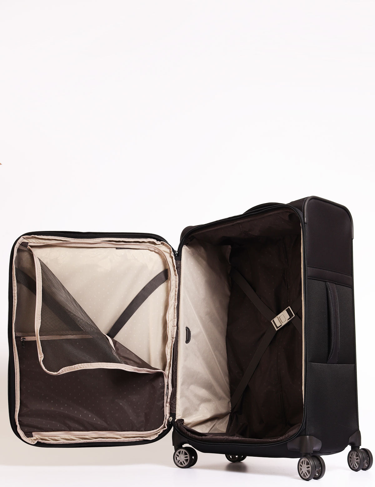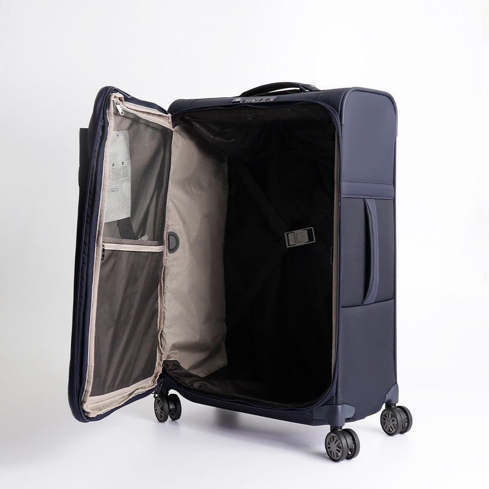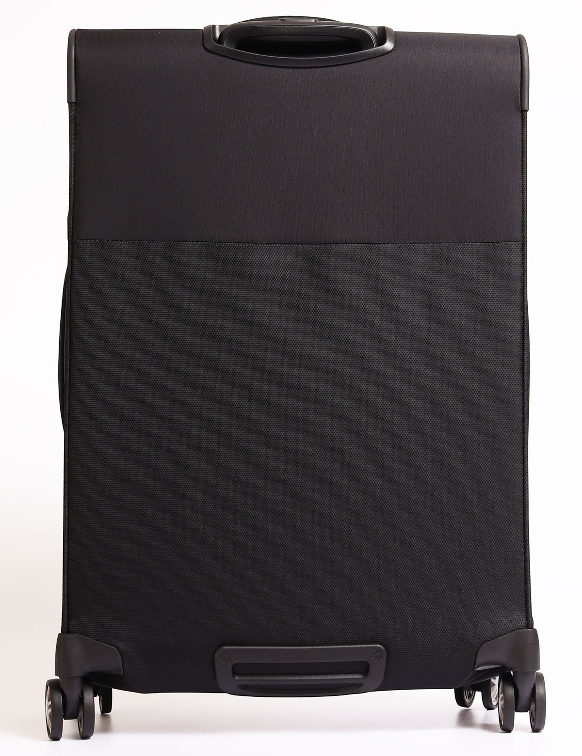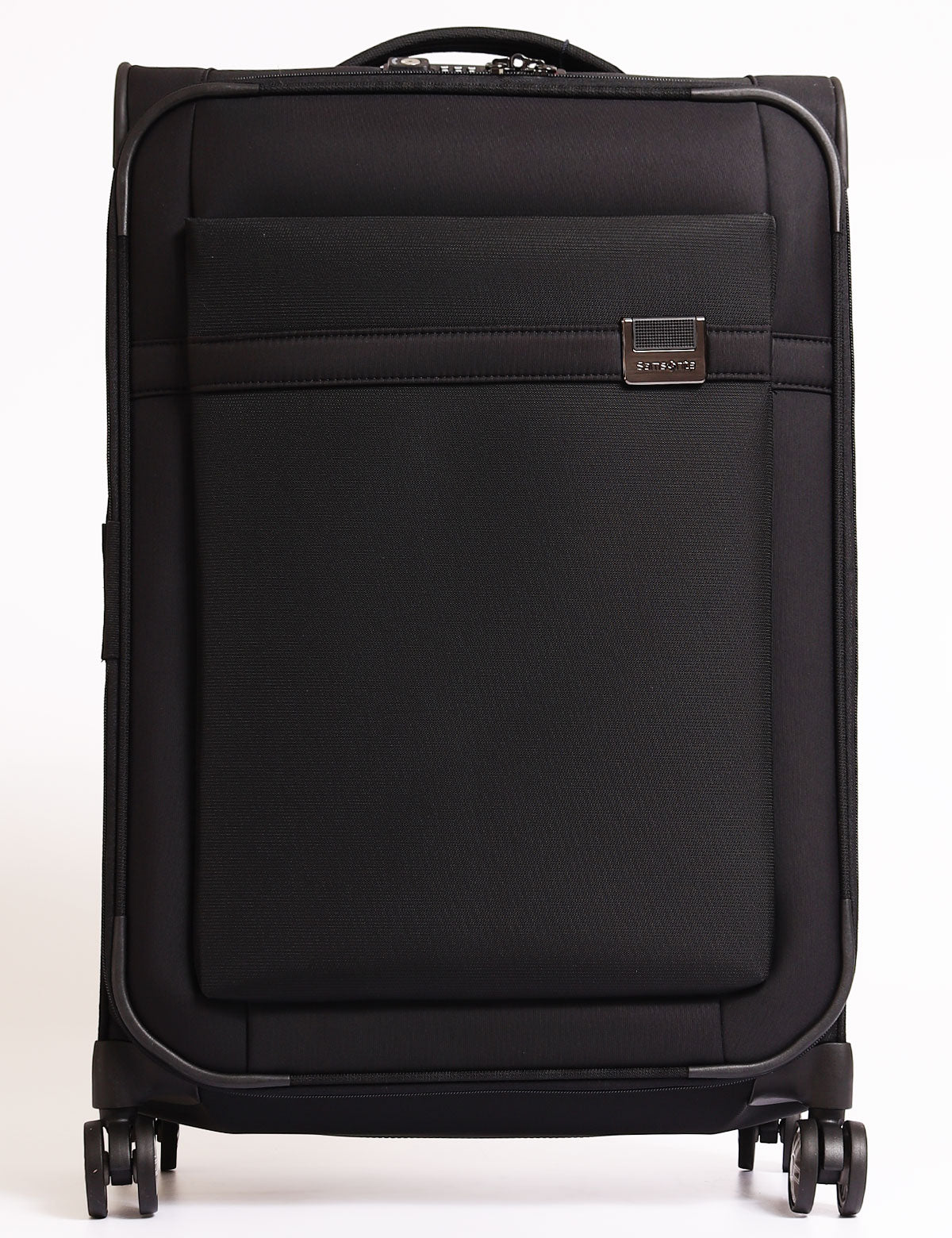 Samsonite soft medium trolley made of Nylon with front expandability. Model equipped with front pocket and 4 smooth wheels